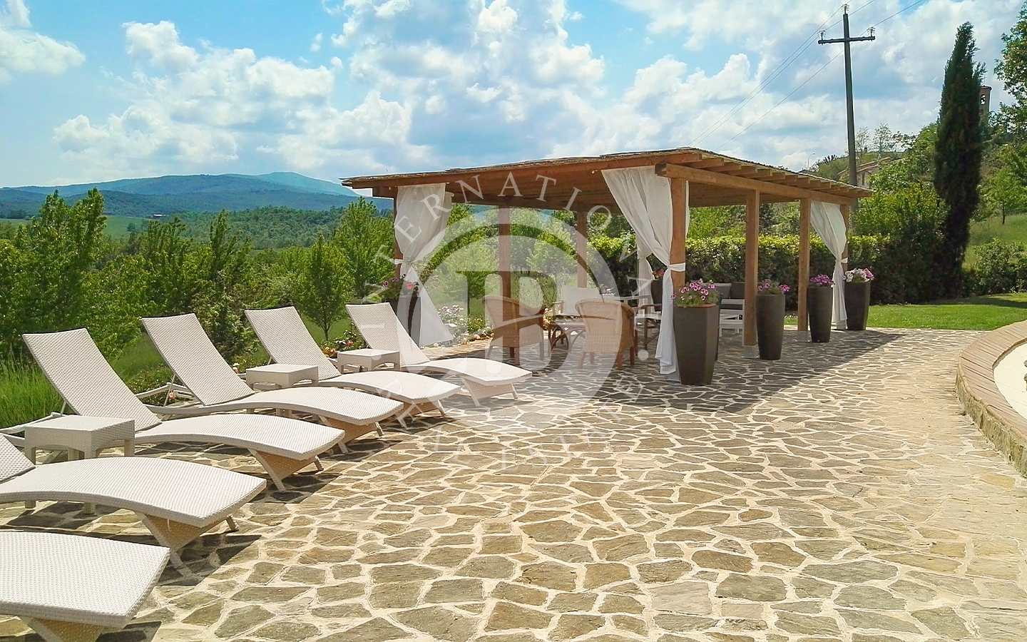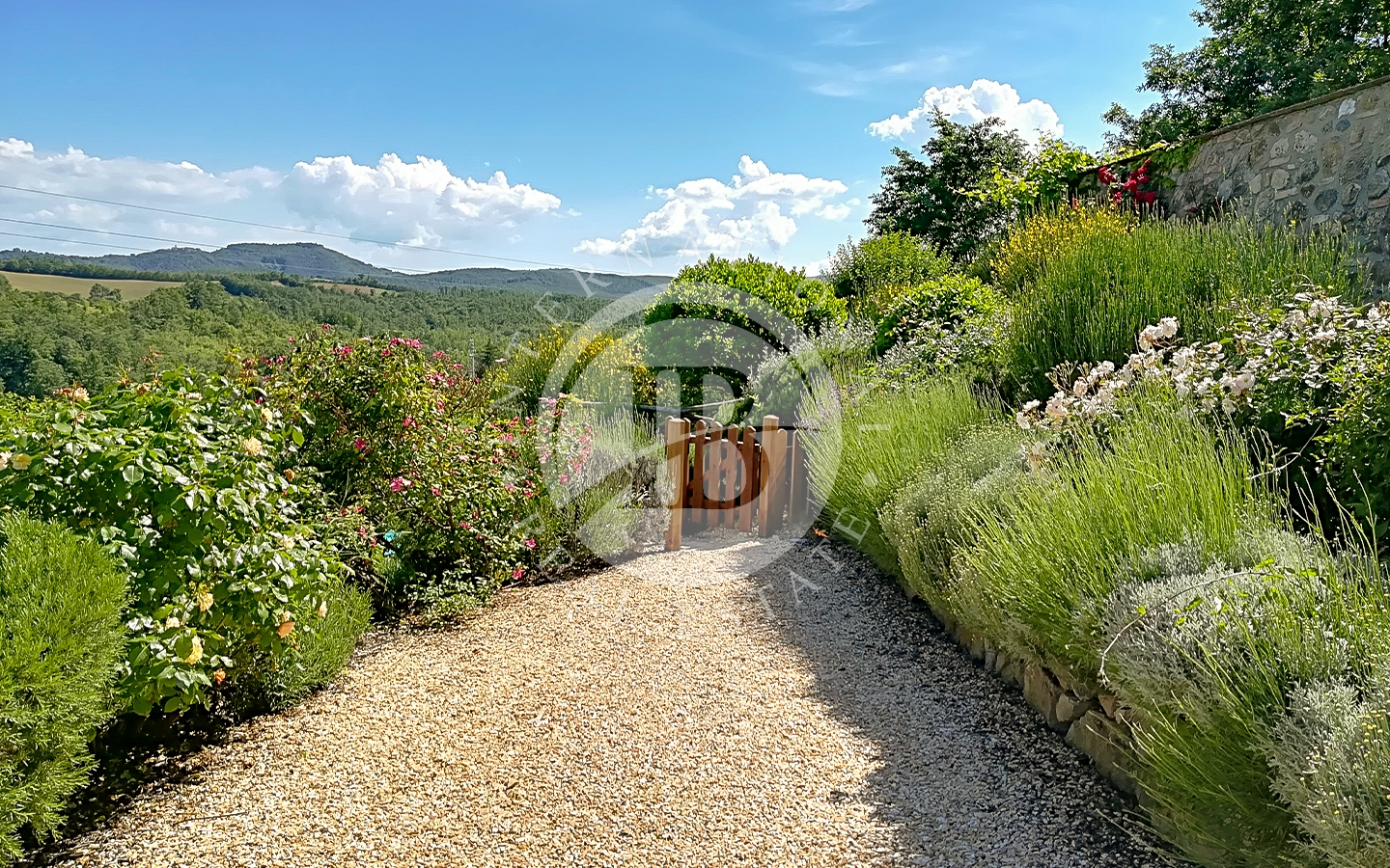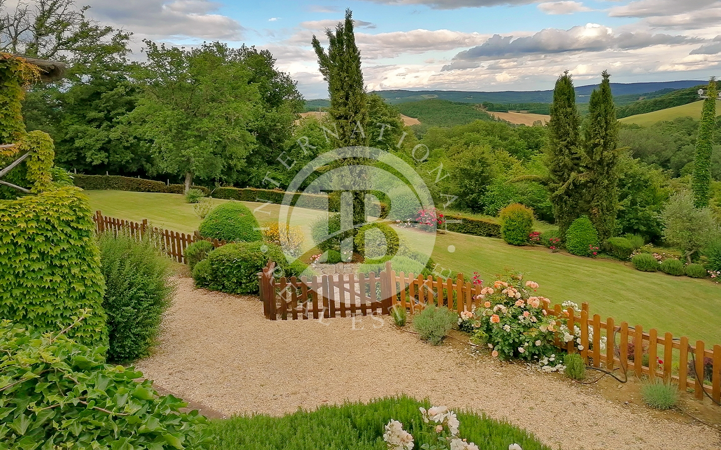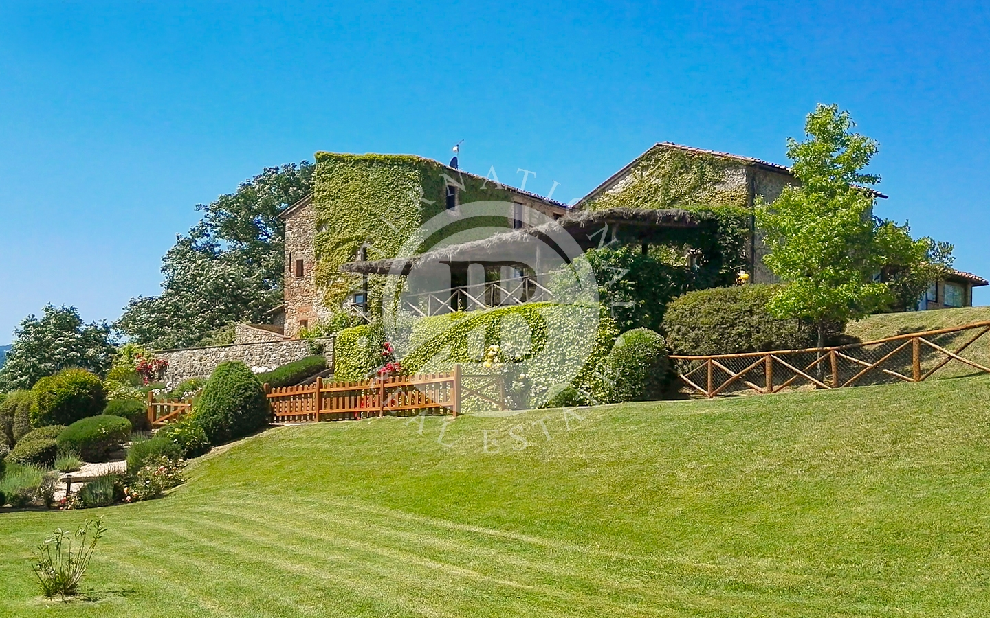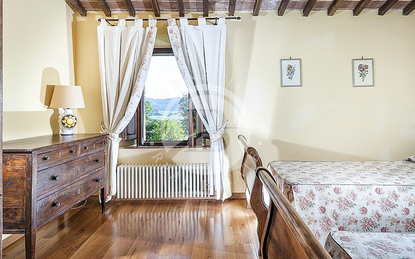 Accanto al corpo principale, la dependance di circa 290 mq rappresenta un’abitazione autonoma e accogliente, con soggiorno con camino, cucina, due camere matrimoniali con bagno privato e spazi esterni esclusivi. Gli interni, caratterizzati da travi in legno a vista, pavimenti in cotto e pietra naturale, sono stati ristrutturati con estrema cura, mantenendo intatto il fascino rurale toscano e arricchiti da arredi di antiquariato locale.