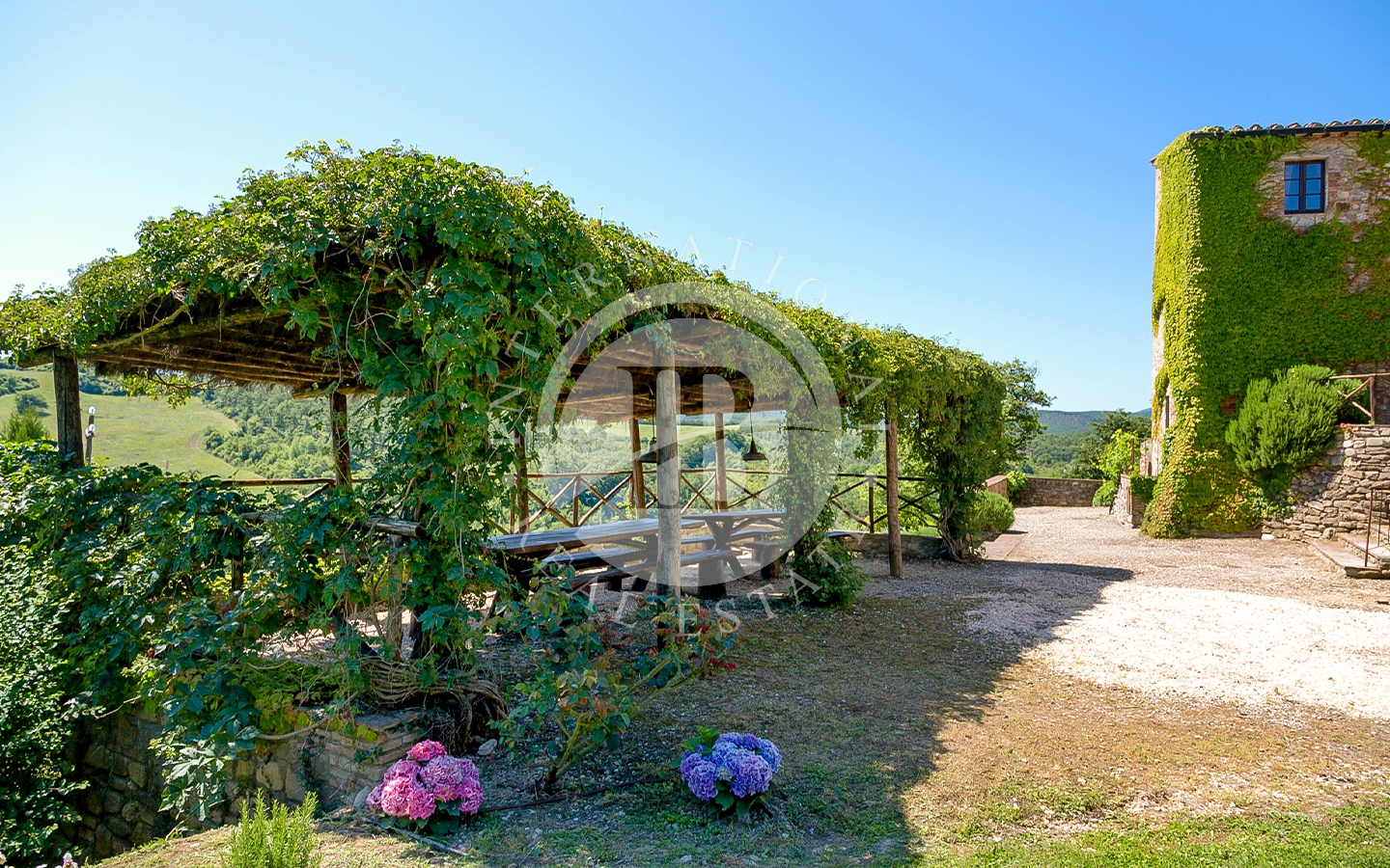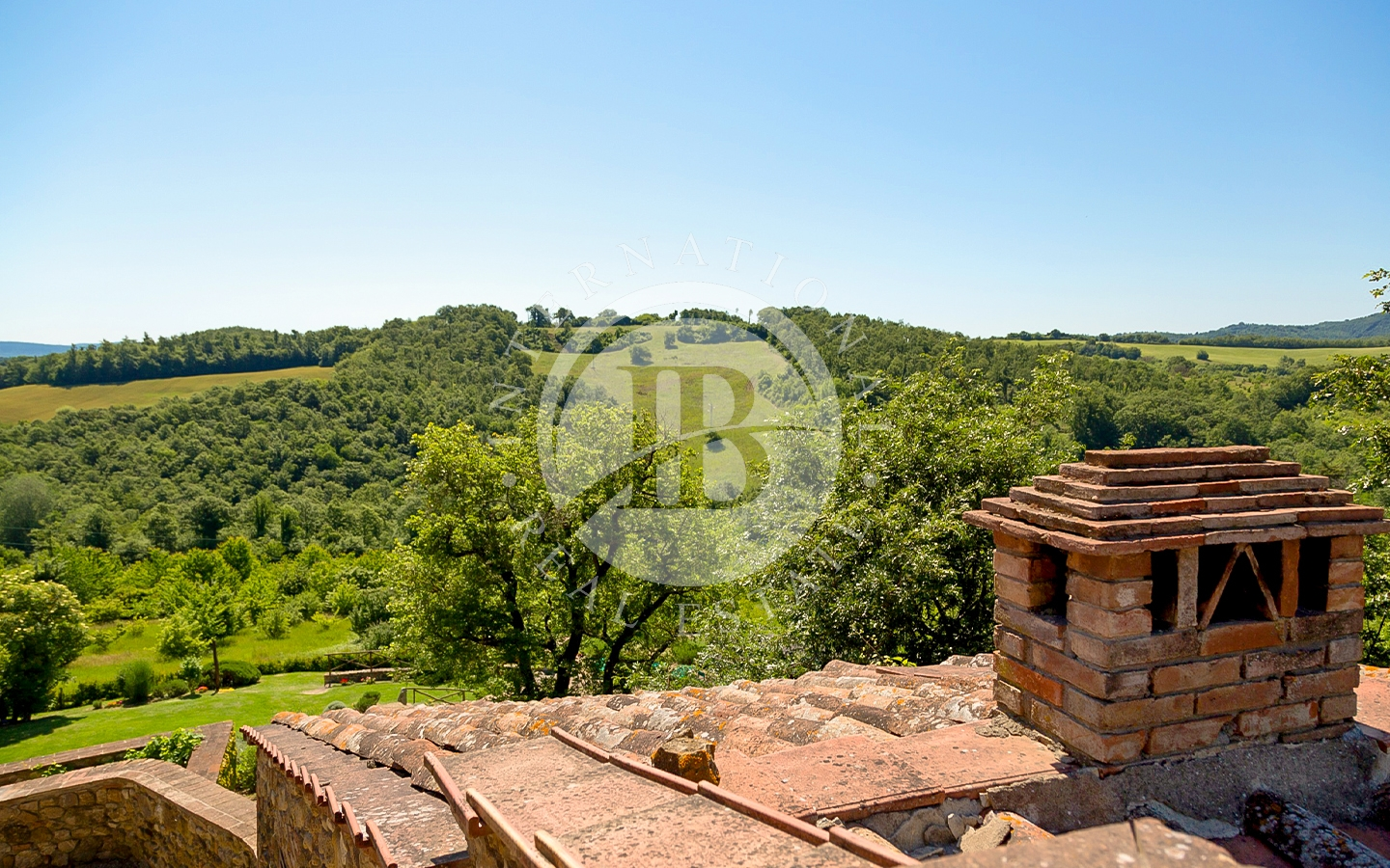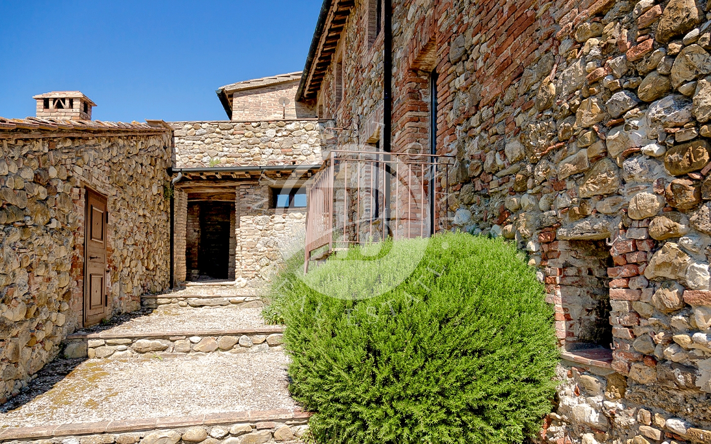 Nel cuore della Toscana, a pochi minuti da un affascinante borgo medievale perfettamente conservato, sorge questa splendida proprietà situata nel comune di Chiusdino (SI). Un contesto unico che regala viste panoramiche spettacolari sulle vallate circostanti e la possibilità di vivere immersi nella quiete e nell’autenticità del paesaggio toscano, senza rinunciare alla vicinanza ai servizi principali. Il casale padronale, di circa 630 mq, si sviluppa su tre livelli e unisce eleganza e tradizione: ampi salotti con camino, sala da pranzo…