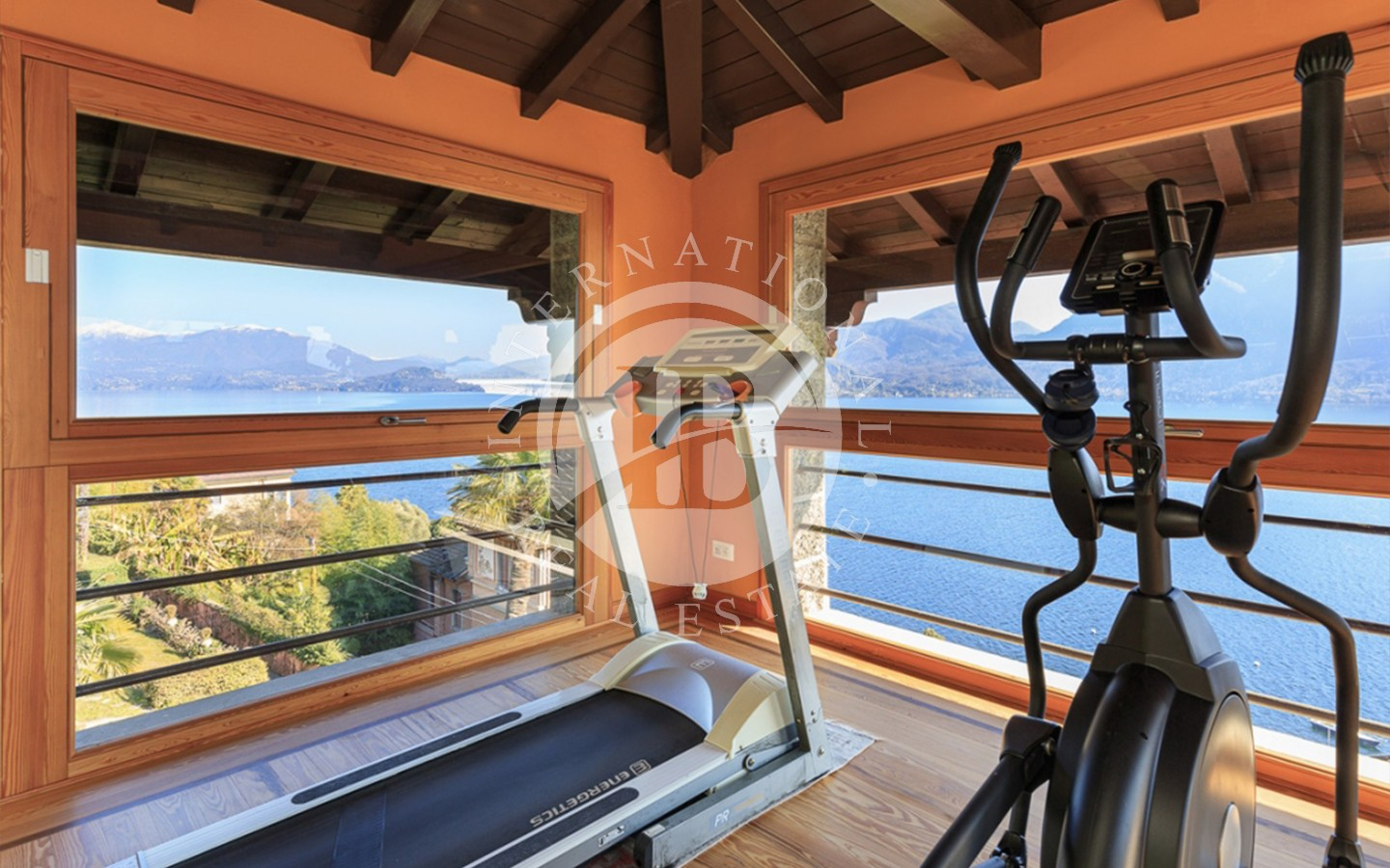 Boligen er på tre plan, pluss et sjarmerende panoramatårn med utsikt over innsjøen, som i dag brukes som treningsområde, og har et samlet areal på ca. 453 kvadratmeter.