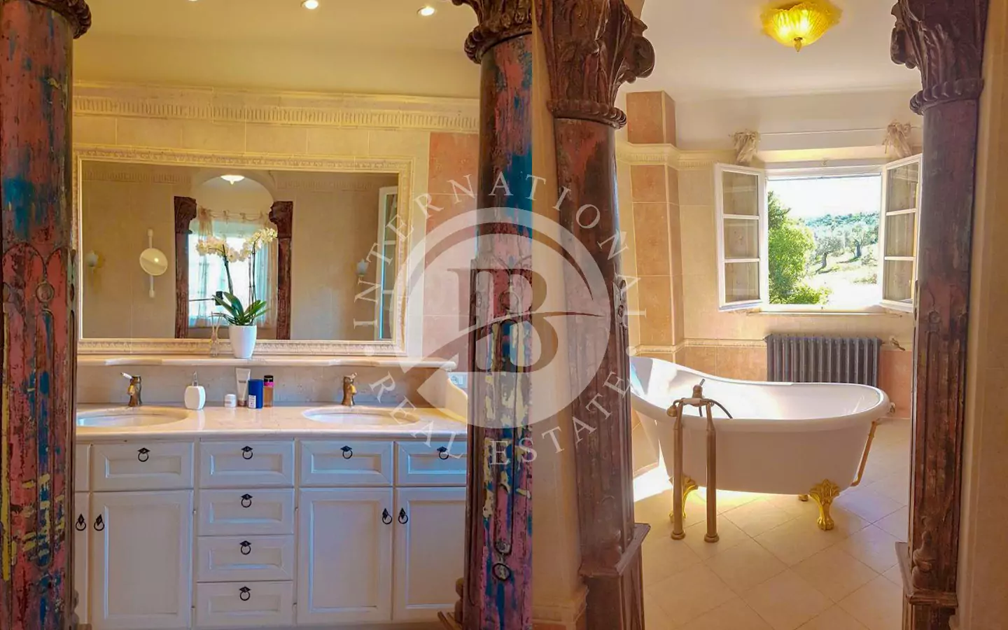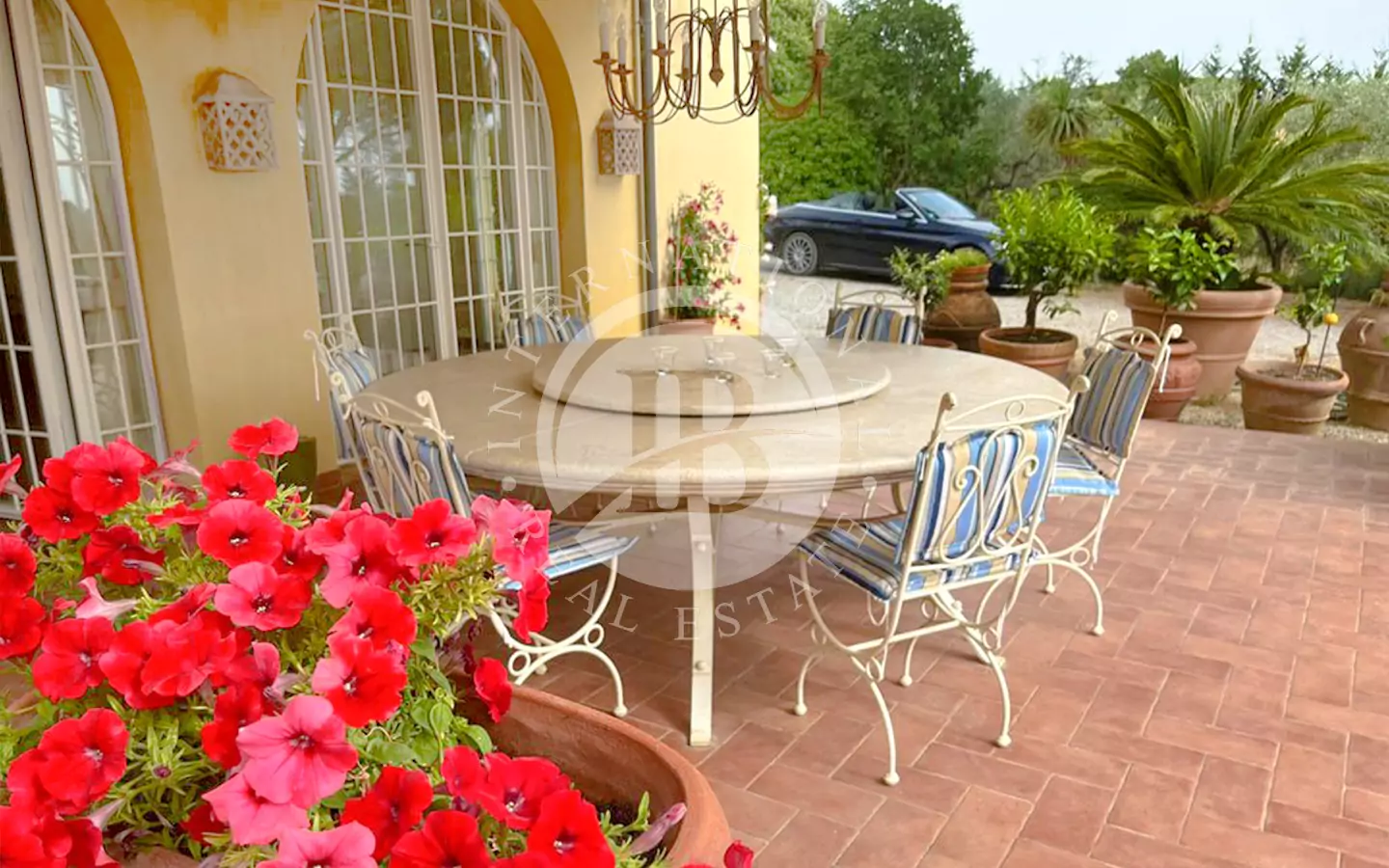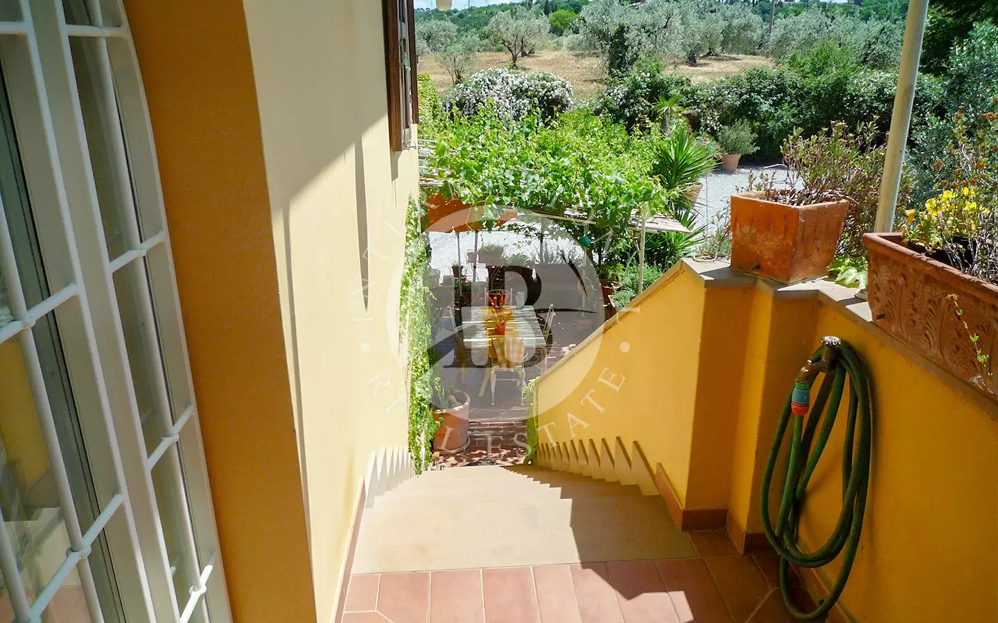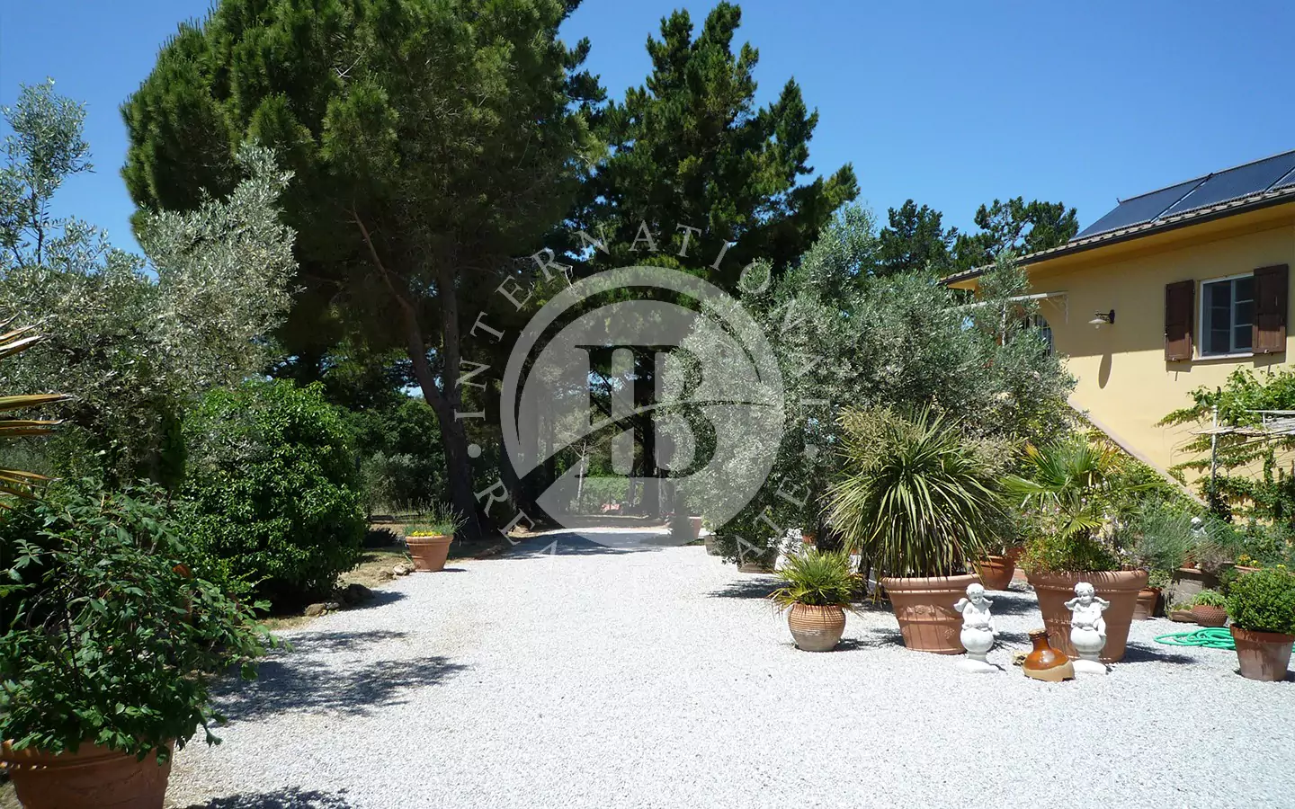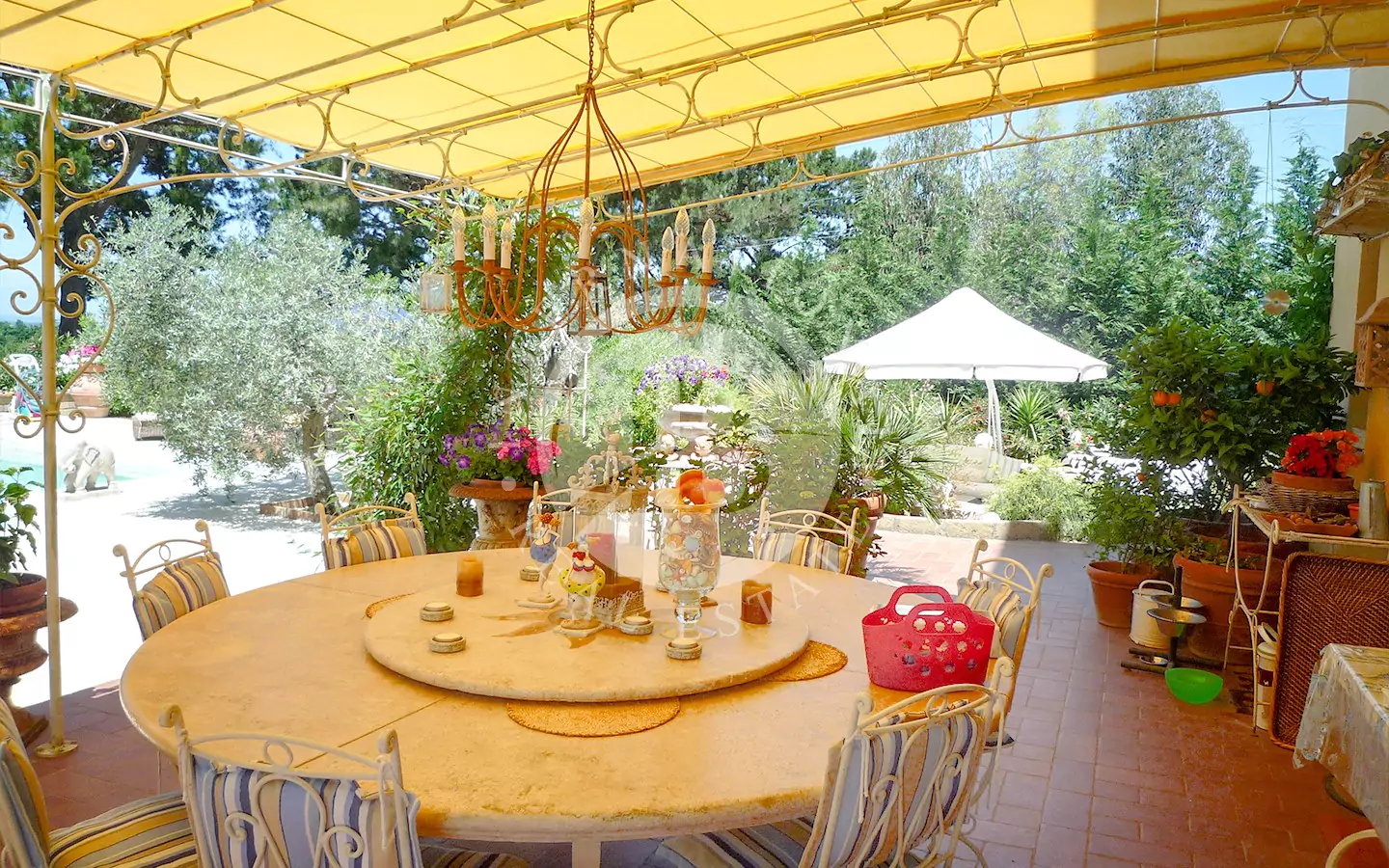 Il parco che circonda la villa è interamente recintato, in parte piantumato con ulivi, e offre massima privacy e tranquillità, pur restando in posizione comoda e facilmente accessibile.