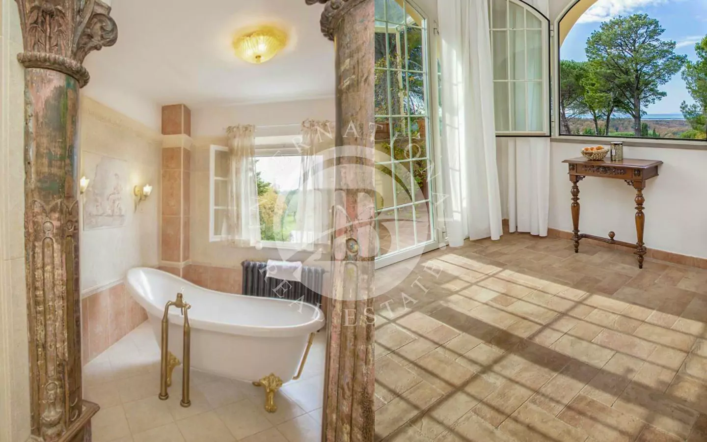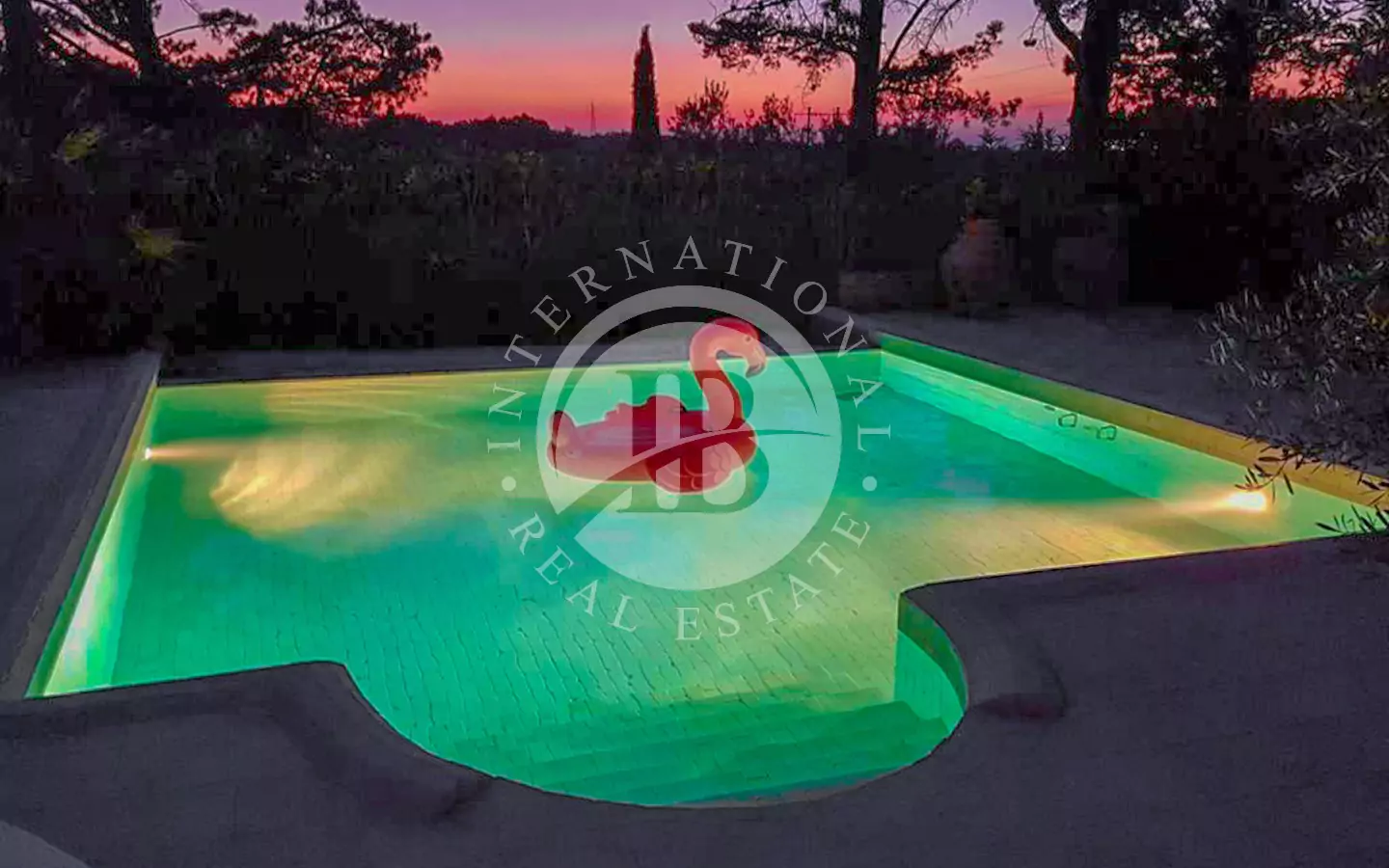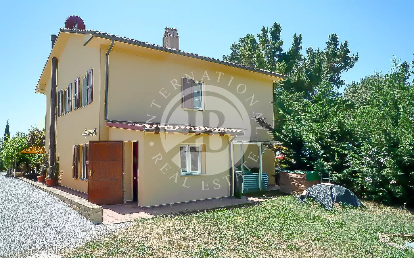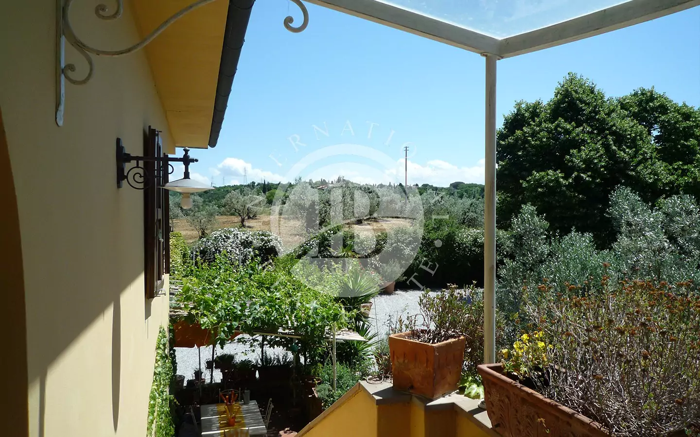 Immersa nel verde di un parco di circa 1 ettaro, in una splendida posizione panoramica tra le colline toscane, proponiamo in vendita una casa colonica con piscina a sfioro e vista mare, ristrutturata con finiture di pregio e materiali di alta qualità. La villa principale, di circa 220 mq, si sviluppa su due livelli. Al piano terra troviamo un ampio salone con camino e accesso diretto al porticato affacciato sulla piscina, una sala da pranzo, una cucina abitabile, due camere matrimoniali, un bagno e un locale tecnico. Il primo piano, r…