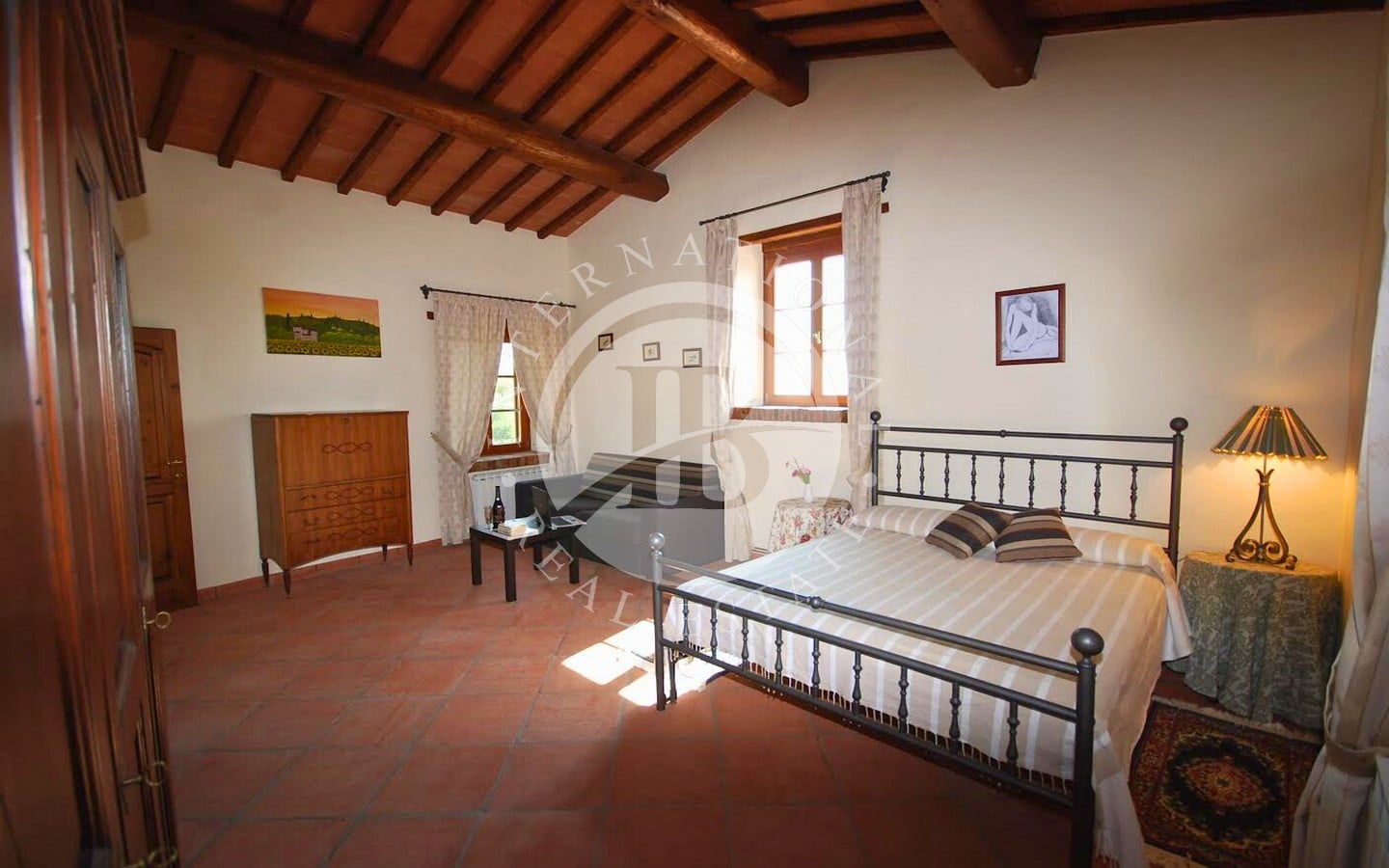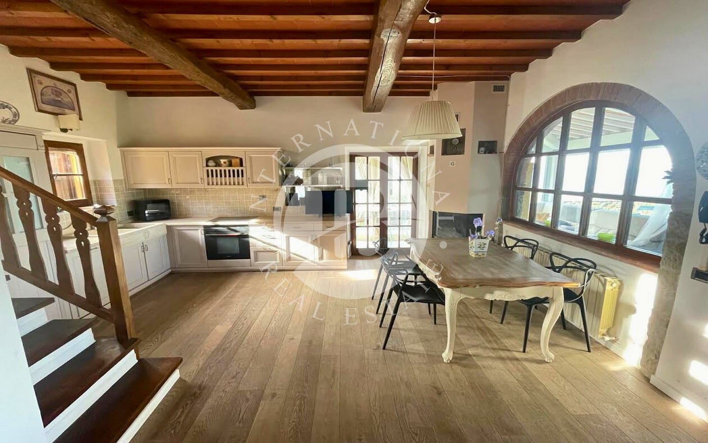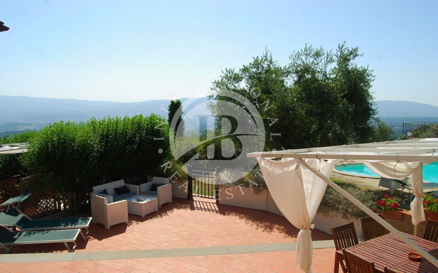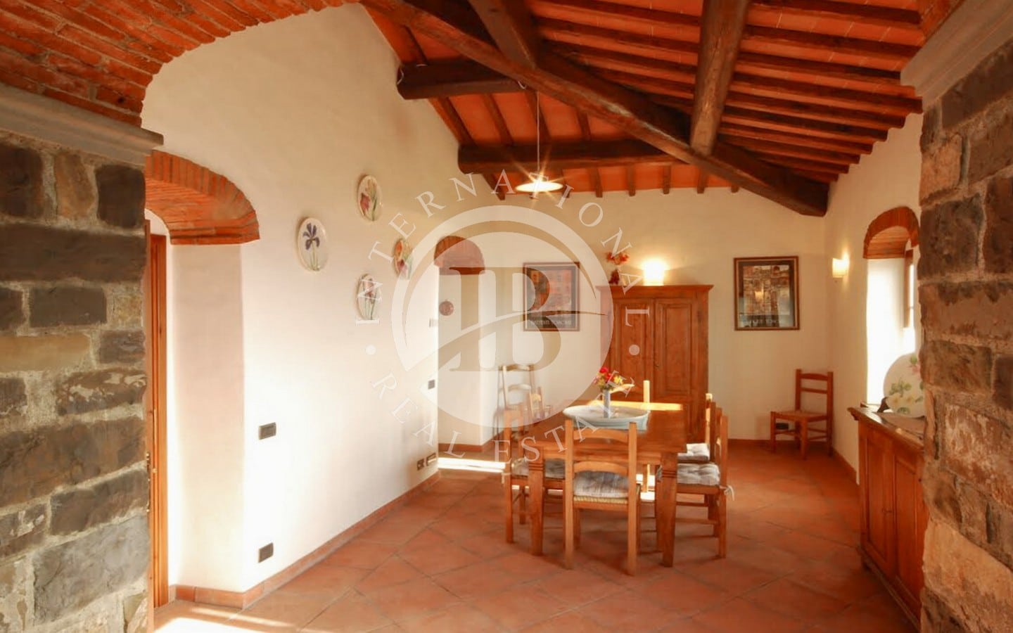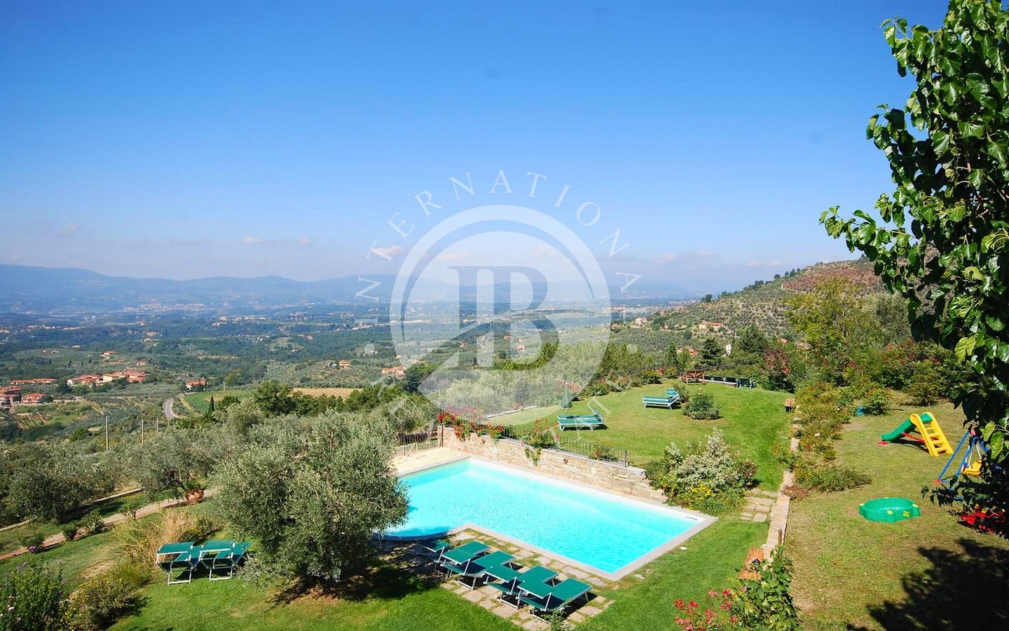 I 6 appartamenti offrono un totale di 9 camere da letto e 8 bagni, ciascuno con una splendida vista panoramica. Gli ospiti possono usufruire di un meraviglioso parco con uliveti e vigneti, perfetto per rilassarsi all'aperto. La piscina di 12x6 metri è completamente attrezzata con lettini, ombrelloni, poltrone e tavolini, e si affaccia su un ampio solarium di circa 1000 mq con vista sulla magnifica valle dell'Arno. La proprietà comprende anche mezzo ettaro di terreno con circa 90 alberi di ulivo, alberi da frutto, boschi e vigneti.