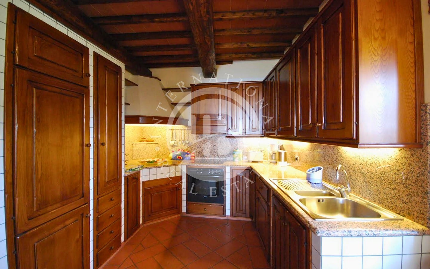 La proprietà è inoltre dotata di pannelli solari e un impianto fotovoltaico da 5 kW, oltre a un sistema di irrigazione automatico e un sistema di illuminazione temporizzata per tutto il podere.