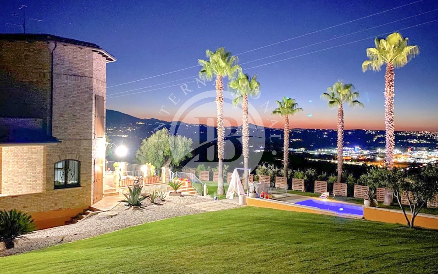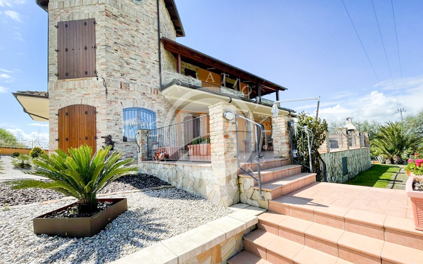 In posizione unica e dominante, al confine tra Abruzzo e Marche, è in vendita una splendida villa immersa nel verde, circondata da un rigoglioso giardino recintato di circa 3.500 mq con piscina, olivi secolari e palme. La proprietà si trova in un contesto di rara bellezza e tranquillità, con una vista mozzafiato che abbraccia il mare Adriatico, i Monti della Laga, il Gran Sasso, i Monti Sibillini e le valli del Tronto e dell’Aterno. La dimora, arredata con gusto e materiali di pregio, si sviluppa su tre livelli collegati da una comoda…