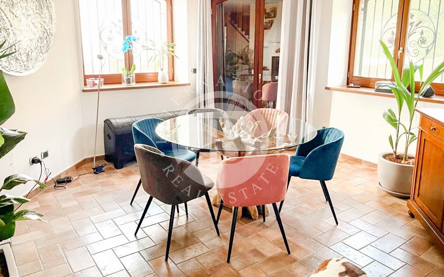 Il piano seminterrato, accessibile sia dall’interno che dall’esterno, è stato finemente rifinito come un secondo appartamento indipendente, composto da un ampio salone con camino e forno, predisposizione per angolo cottura, due camere, un bagno, lavanderia e ripostiglio. A completamento della zona tecnica, vi sono locali interrati a servizio della splendida piscina panoramica.
