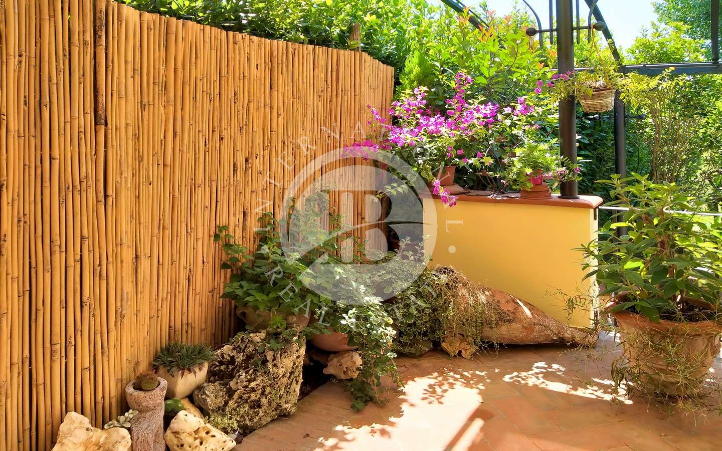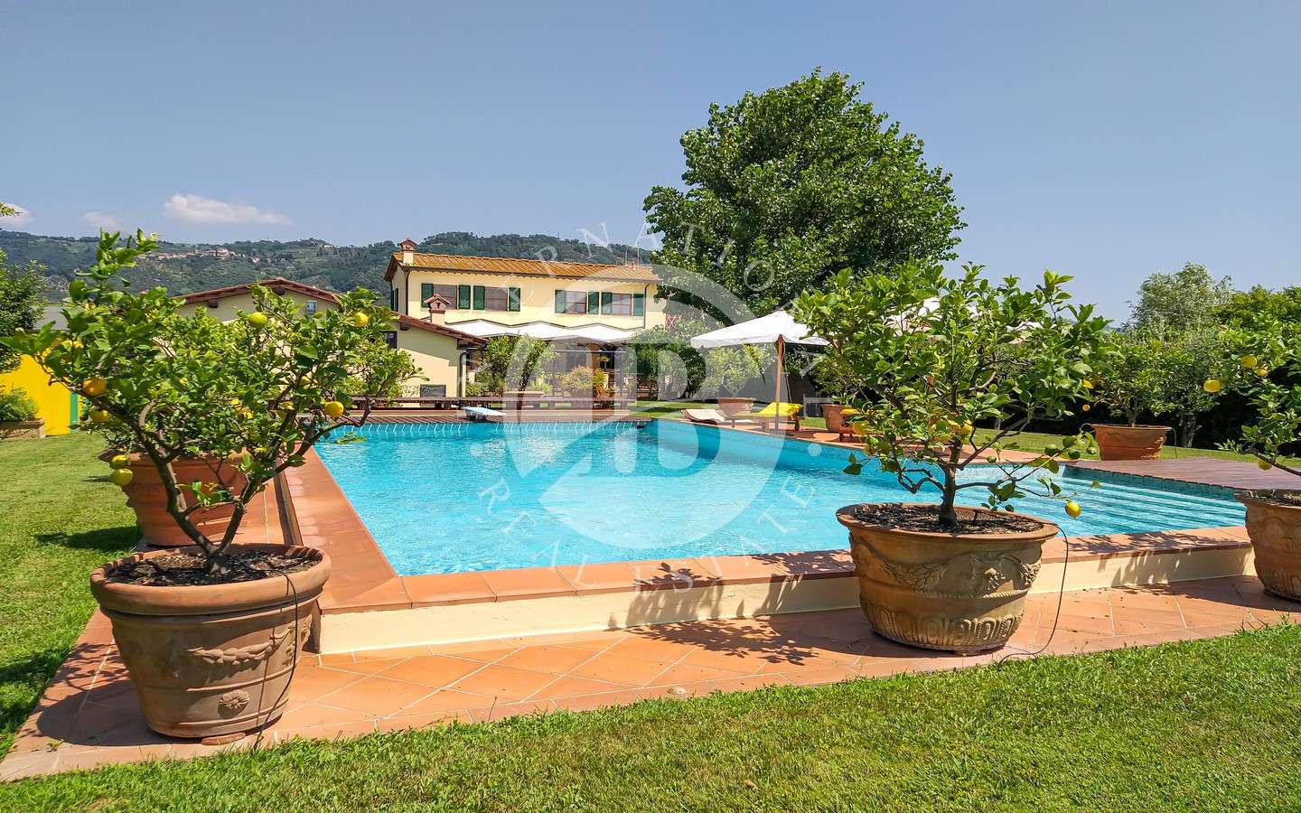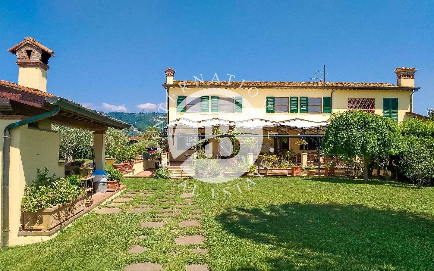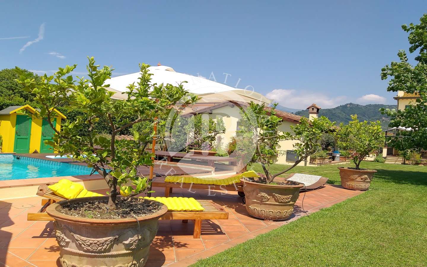 Davanti alla proprietà, un grande portico per splendide cene e pranzi all'aperto affacciato su giardino con piscina e una dependance che ospita una camera da letto con bagno e possibilità di creare una cucina.