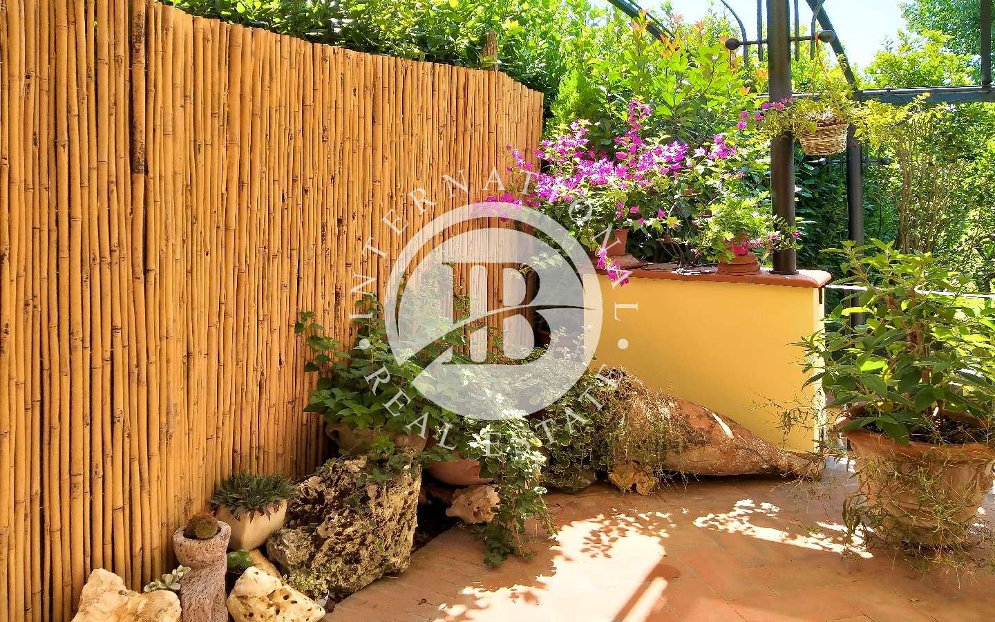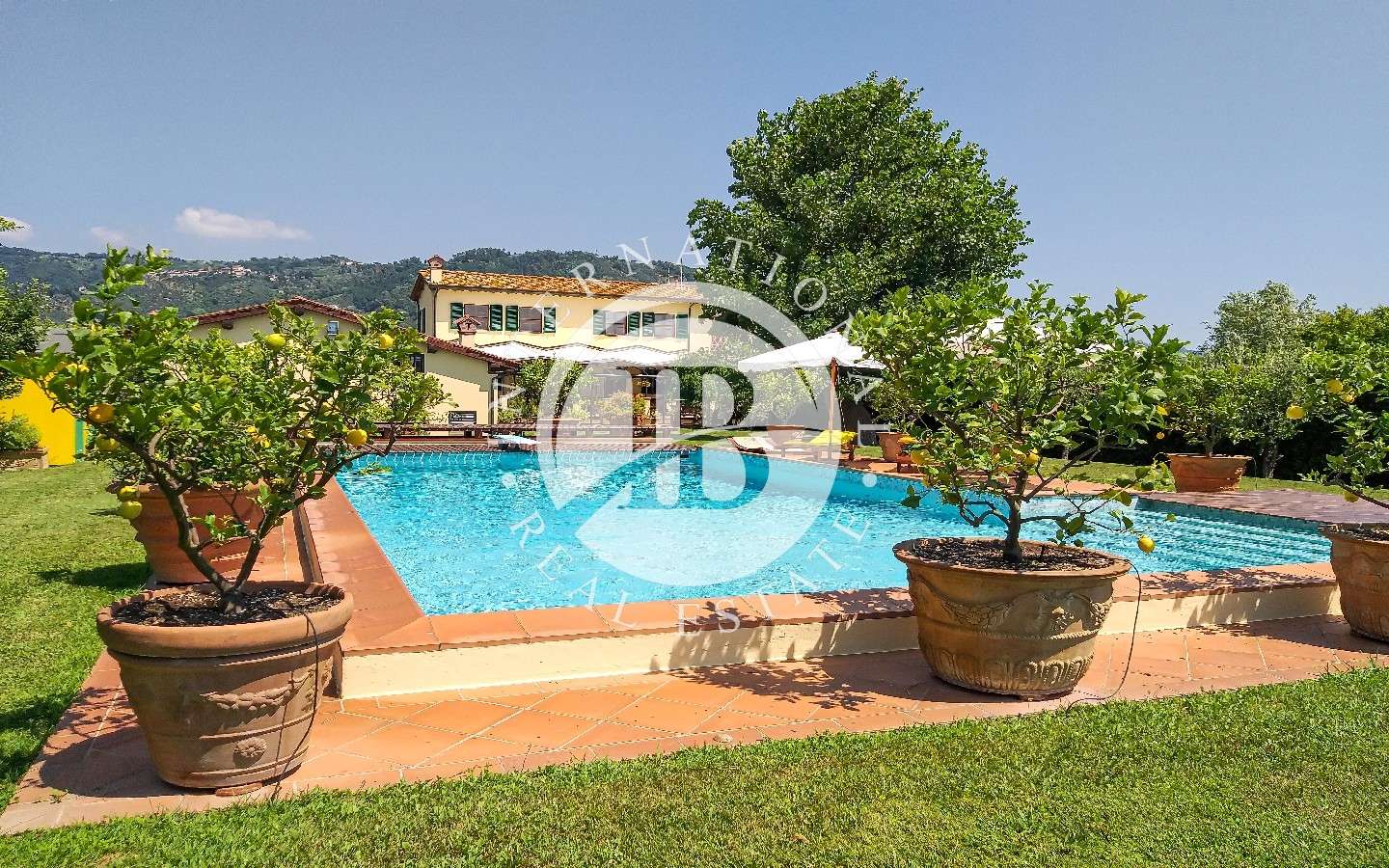 La cucina è direttamente collegata con l’esterno su portico di circa 70 mq dove godere delle belle giornate all’aperto, affacciata sul giardino di 2.300 mq con piscina e dependance.