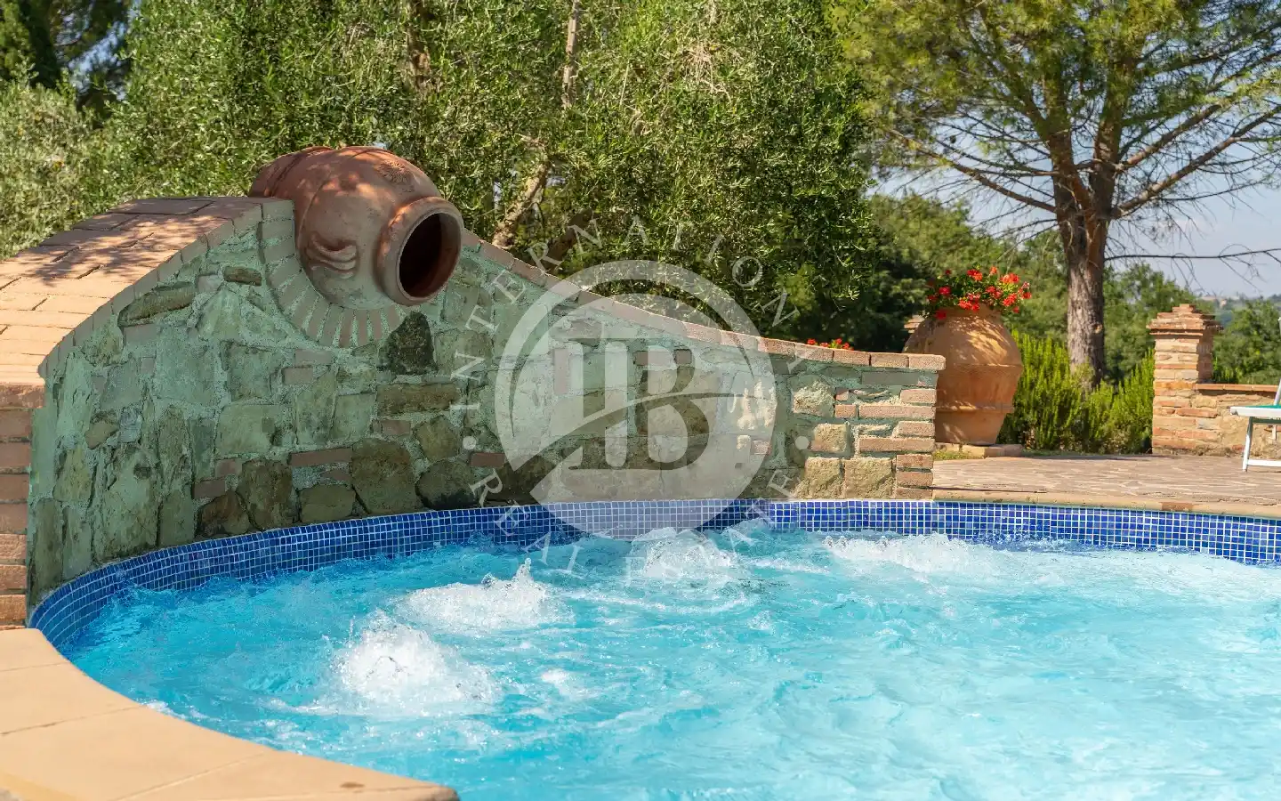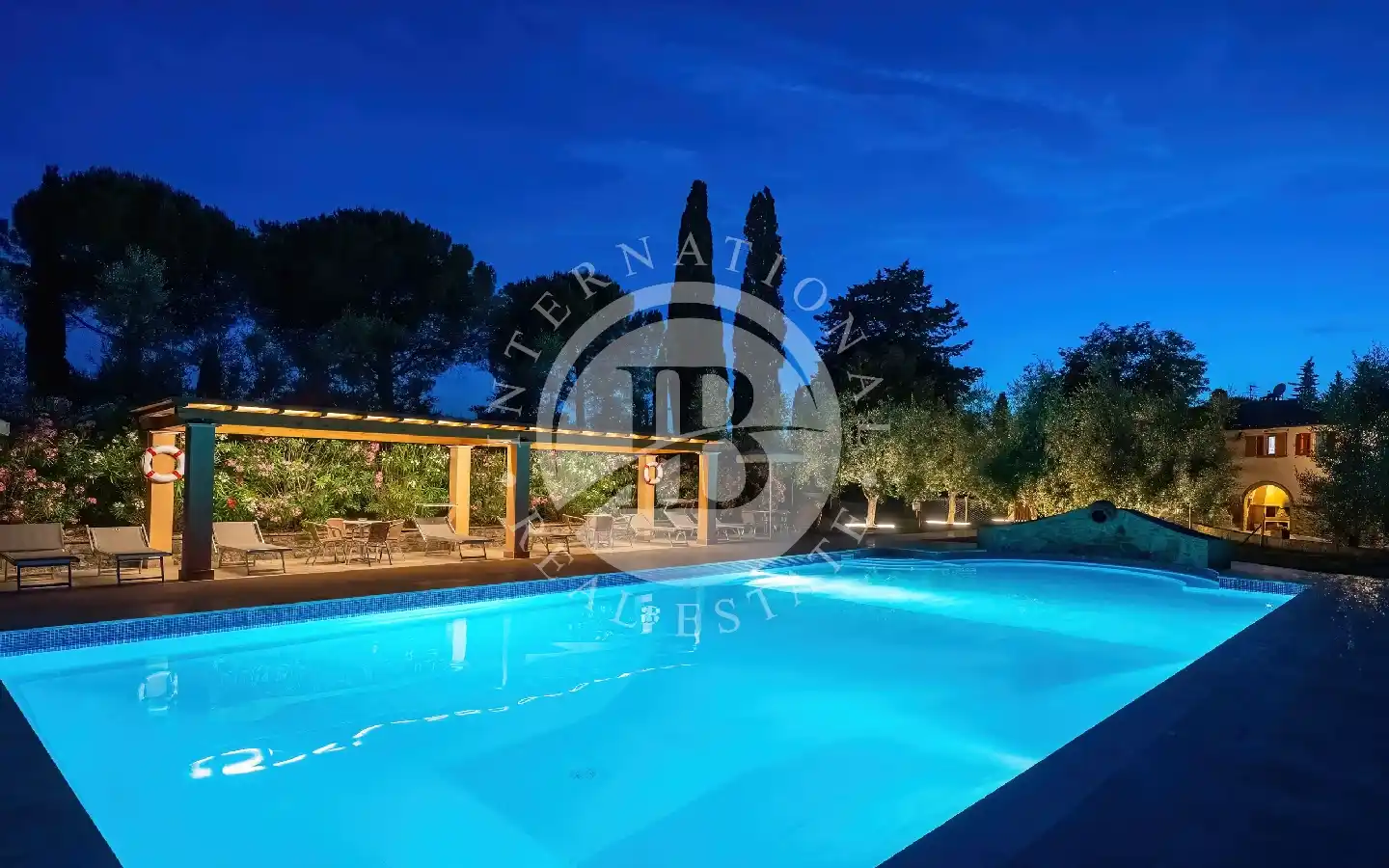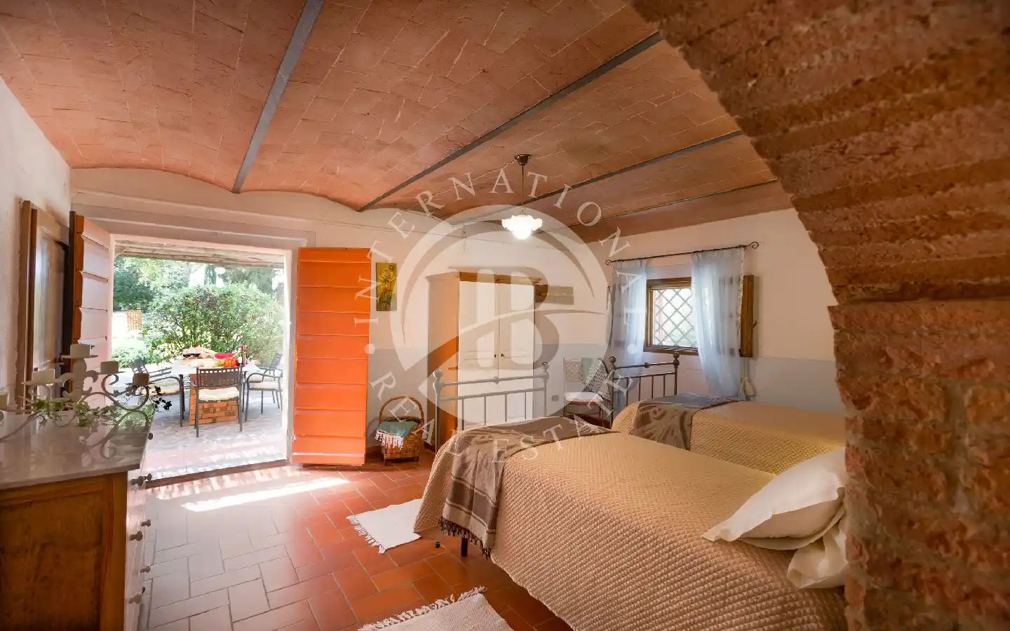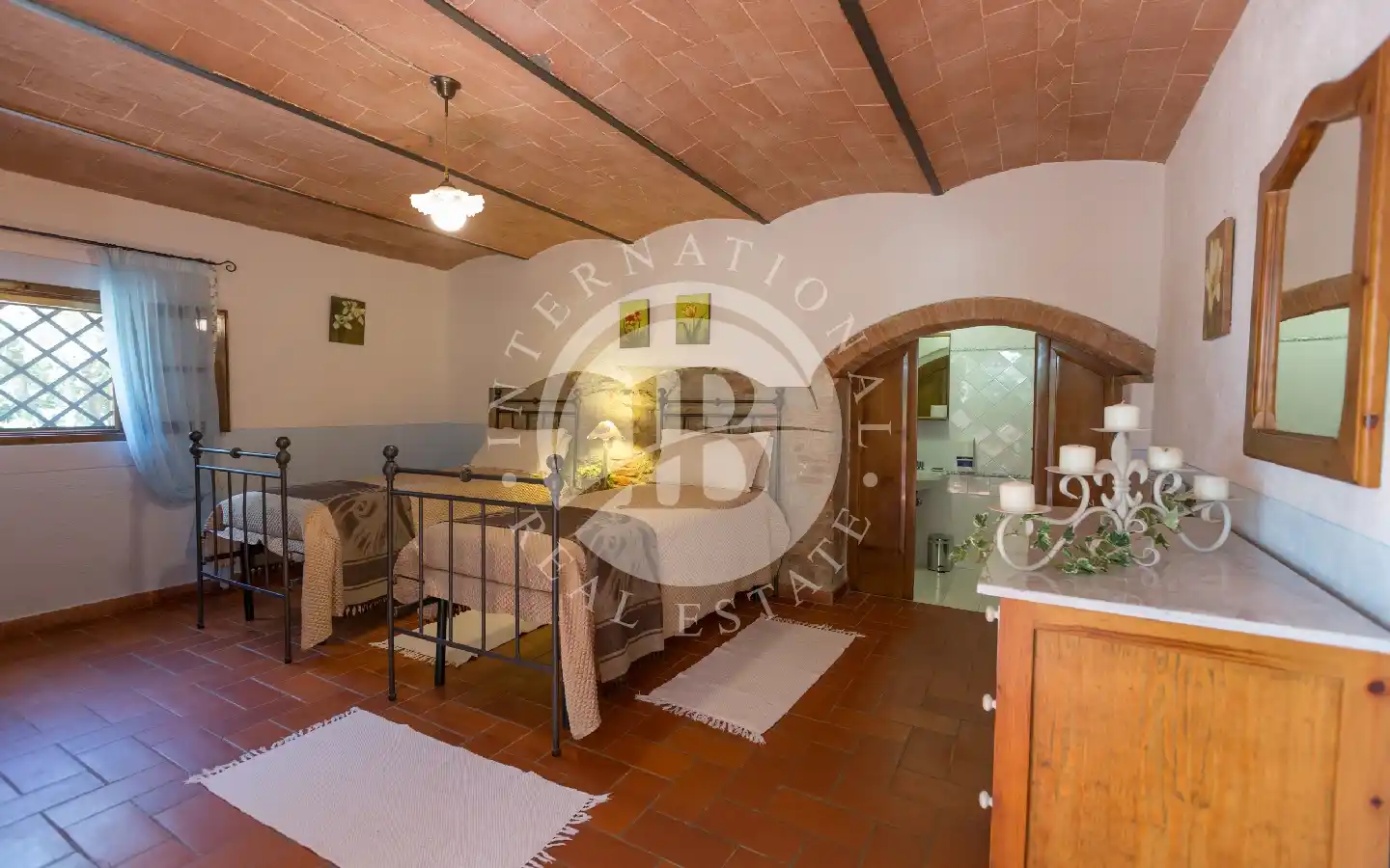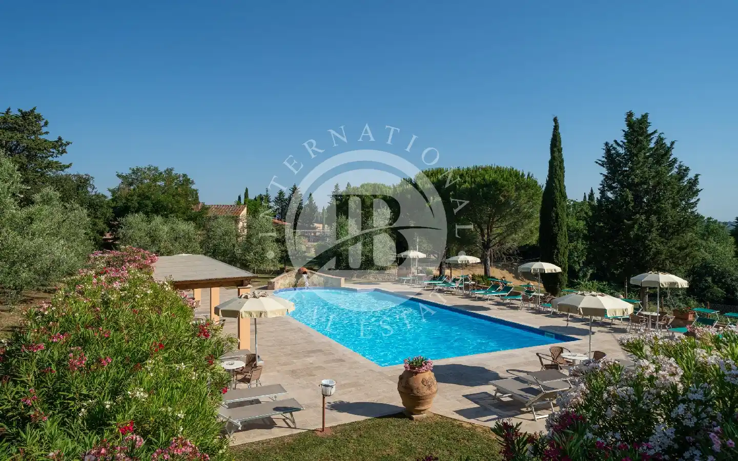 li di 80 mq ciascuno. Questi ultimi, ideali per famiglie numerose e gruppi di amici desiderosi di condividere spazi in totale privacy, offrono un'atmosfera accogliente e autentica. Il complesso immobiliare è immerso in un giardino di 6.500 mq, arricchito da oleandri e ulivi, dove emerge in posizione panoramica una magnifica piscina di notevoli dimensioni (20 x 8), dotata di un ampio solarium attrezzato e una zona relax con idromassaggio. Ogni appartamento gode di un gazebo con barbecue riservato, mentre il parcheggio per le auto è coperto. L'edificio principale rappresenta un tipico casale toscano risalente al 1800, caratterizzato da elementi originali come il pavimento in cotto, le travi in legno e il camino a legna, che conferiscono un'atmosfera confortevole e autentica all'ambiente. Il complesso è dotato di impianto di riscaldamento e condizionamento, e dispone di pannelli fotovoltaici da 10 Kw, garantendo una gestione moderna ed efficiente dell'energia.