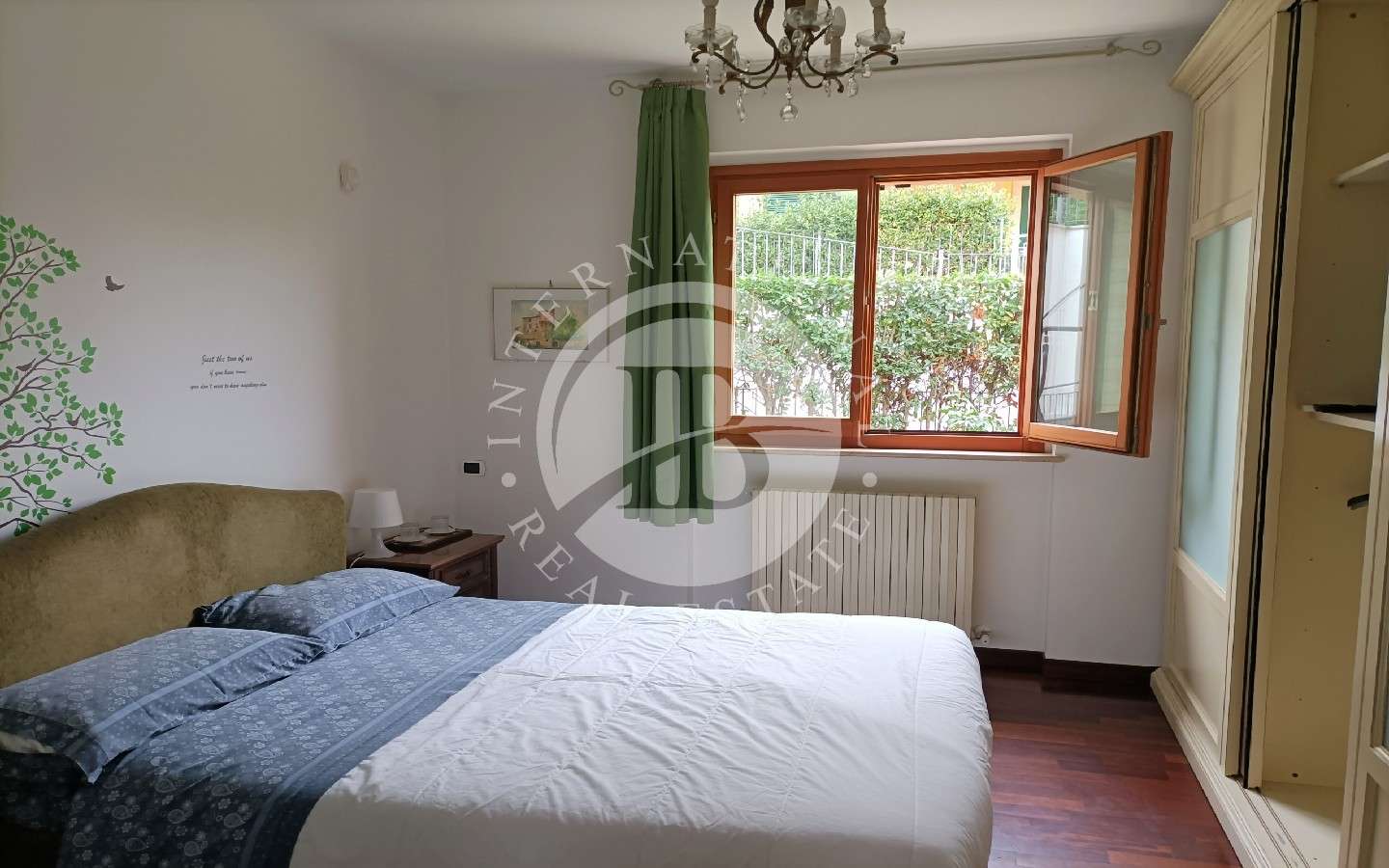 avanderia e un utile ripostiglio. La cura delle finiture è evidente in ogni dettaglio, con pavimenti in parquet, travertino resinato in cucina e porte scorrevoli che aggiungono un tocco di raffinatezza.