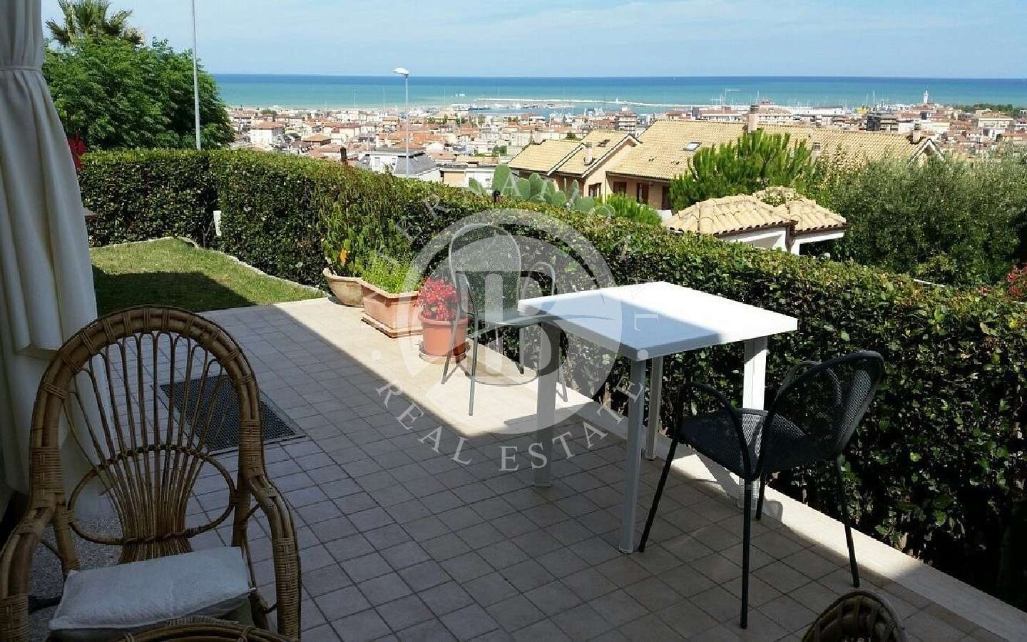 Nel cuore di una zona residenziale panoramica, questa proprietà indipendente a San Benedetto del Tronto offre una straordinaria vista mare. Situata al piano rialzato di un esclusivo condominio a soli tre appartamenti, ciascuno con ingresso indipendente. Con una superficie di circa 230 mq, la residenza dispone di un ingresso spazioso che conduce a un ampio soggiorno caratterizzato da un camino, cucina abitabile, tre camere matrimoniali, una quarta stanza adatta a camera o studio, e tre bagni finestrati. Completa la proprietà una zona l…