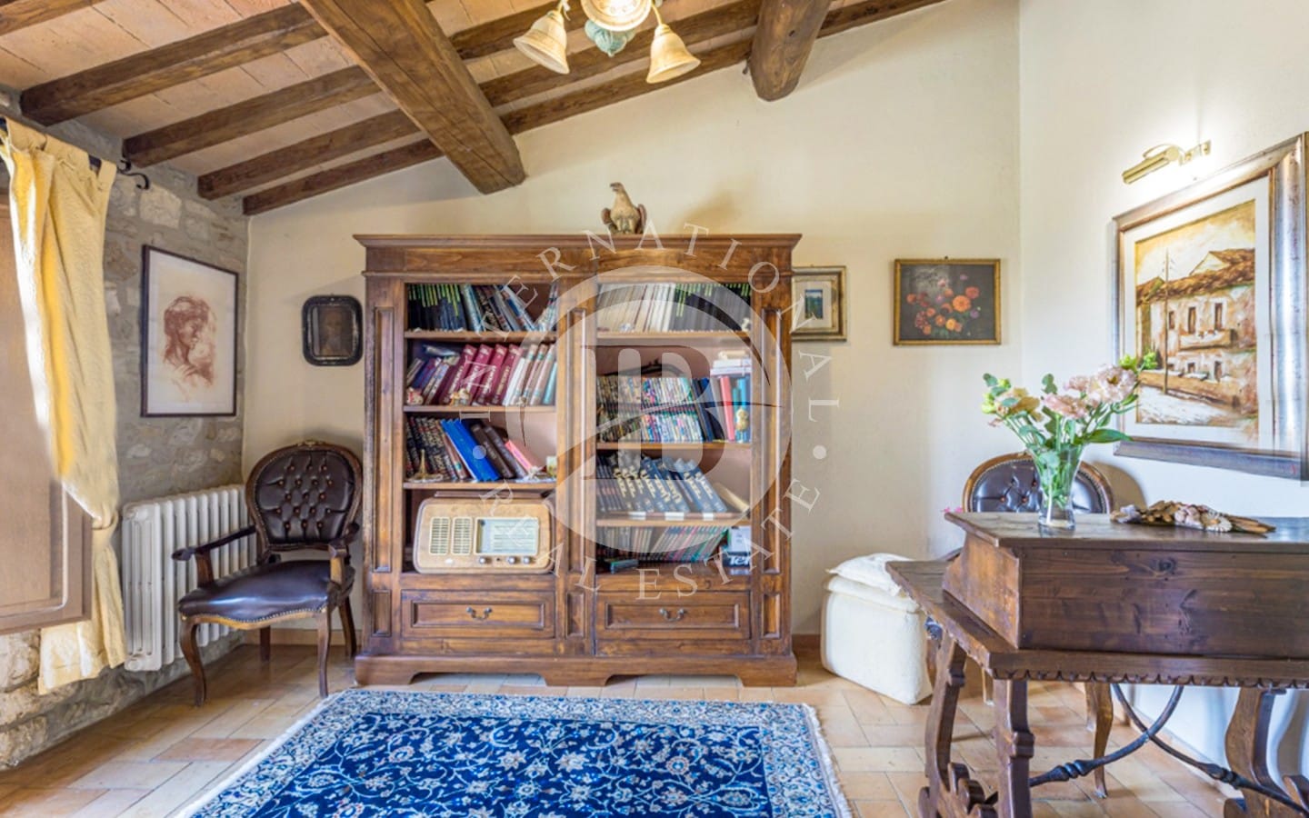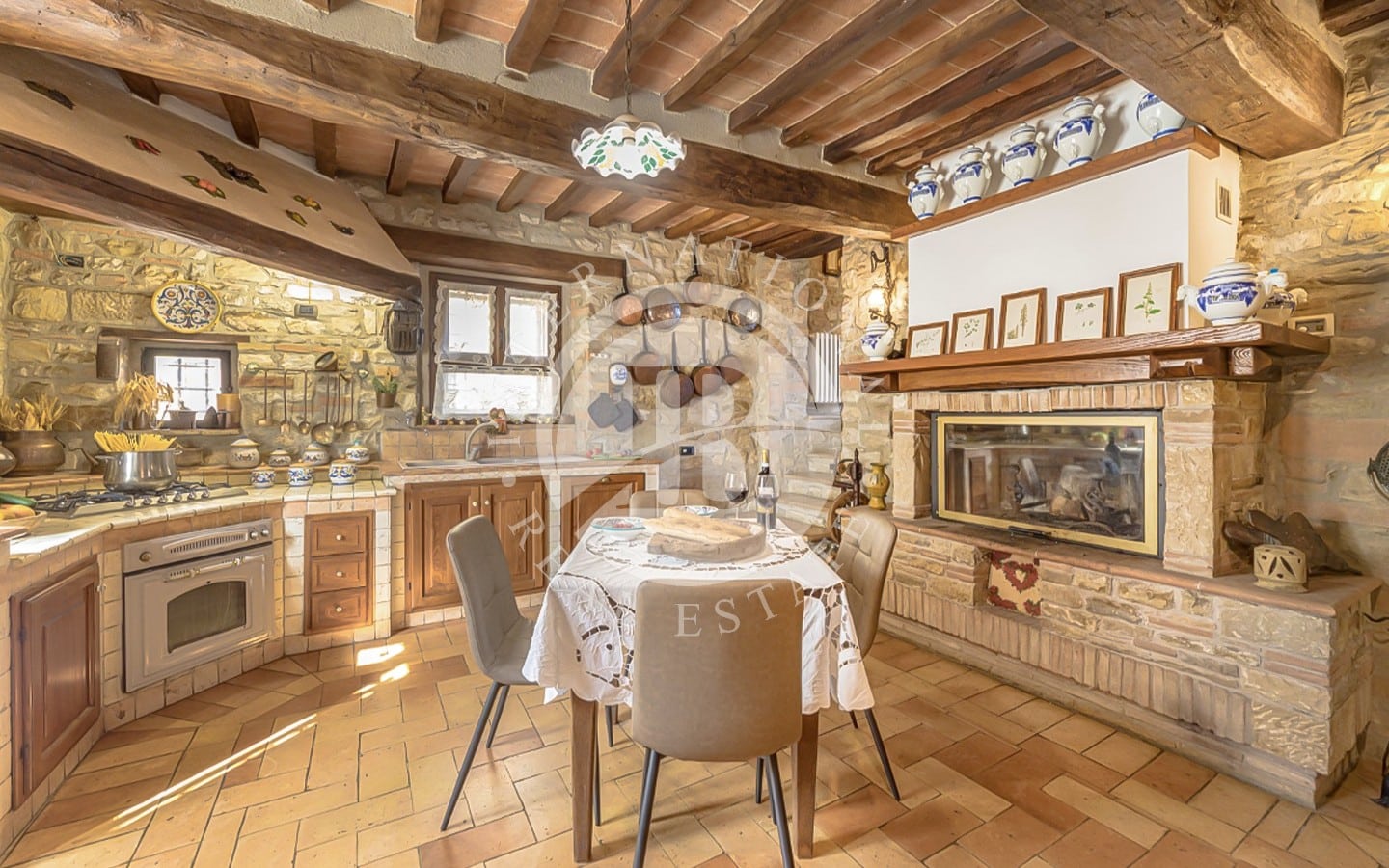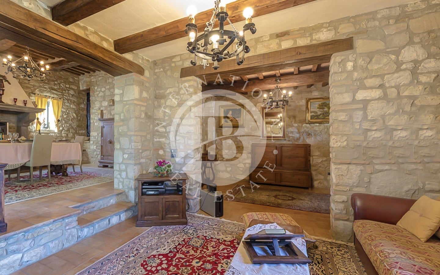 Główny dom został całkowicie odnowiony przy użyciu typowych umbryjskich materiałów, w tym starych podłóg z terakoty, drewnianych belek i dachówek z terakoty. Dom jest dwupoziomowy: na parterze znajduje się kuchnia, jadalnia, gabinet, salon i łazienka. Na pierwszym piętrze znajdują się trzy sypialnie, trzy łazienki, duży salon z antresolą i panoramiczny balkon.