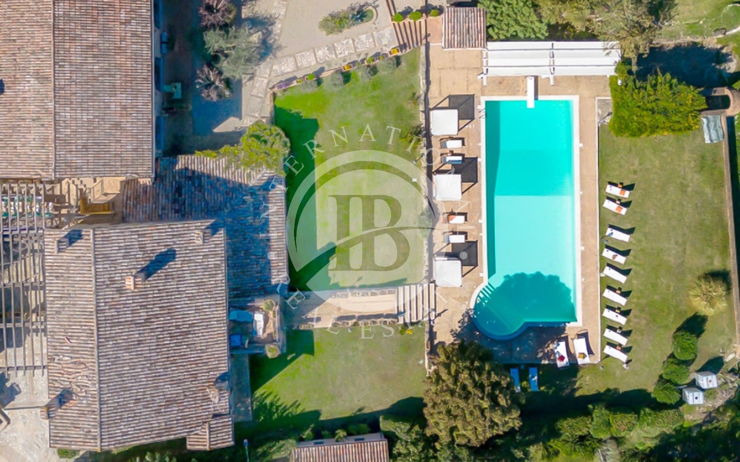 Okoliczny teren obejmuje około 18 000 metrów kwadratowych i mieści duży panoramiczny basen o wymiarach 19 x 9 metrów, wyposażony w deskę do nurkowania, rzymskie schody i głębokość od 1,50 do 3,00 metrów.