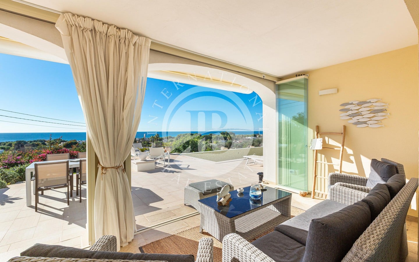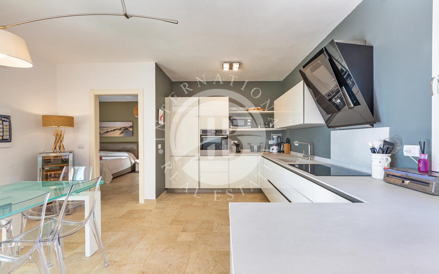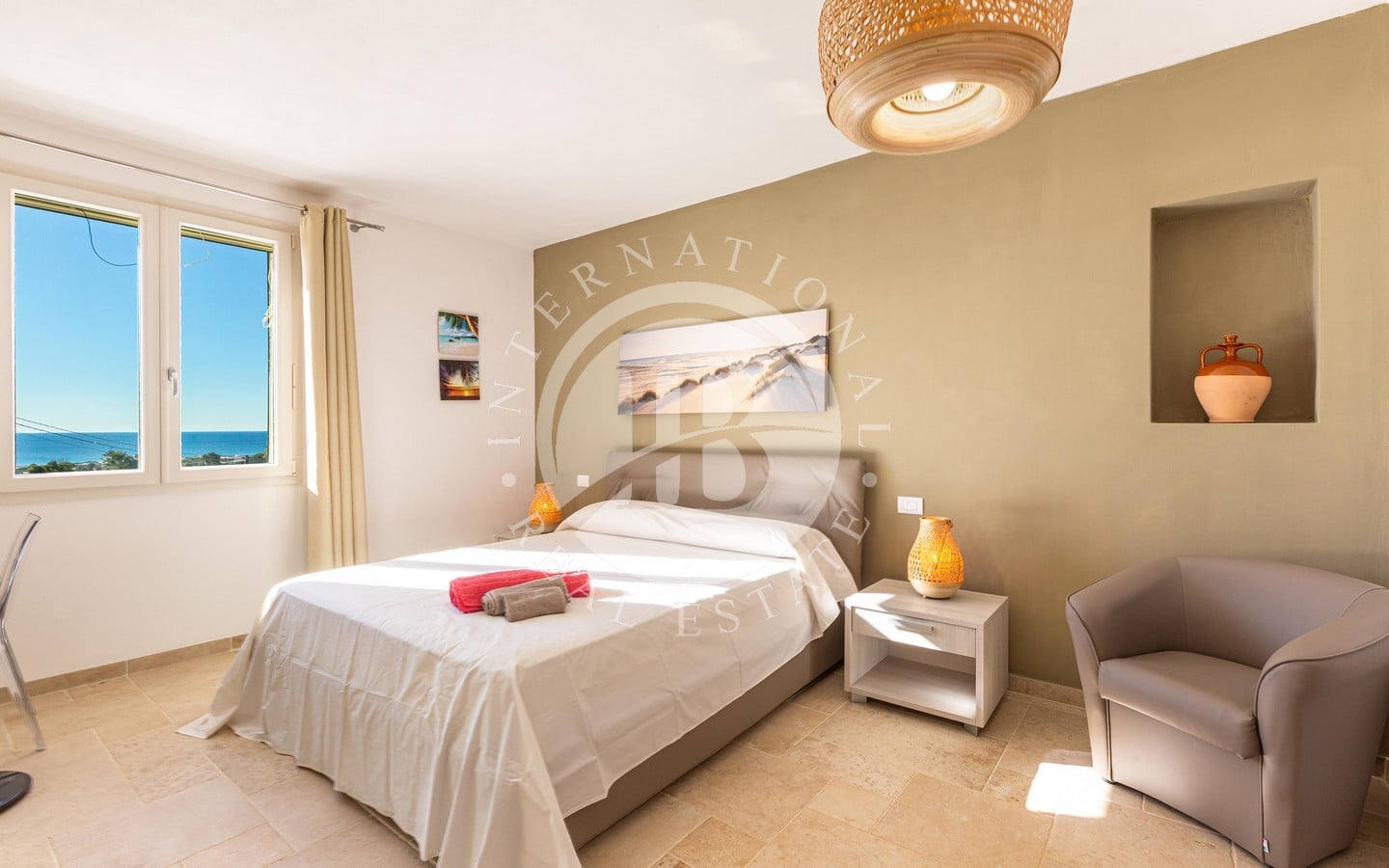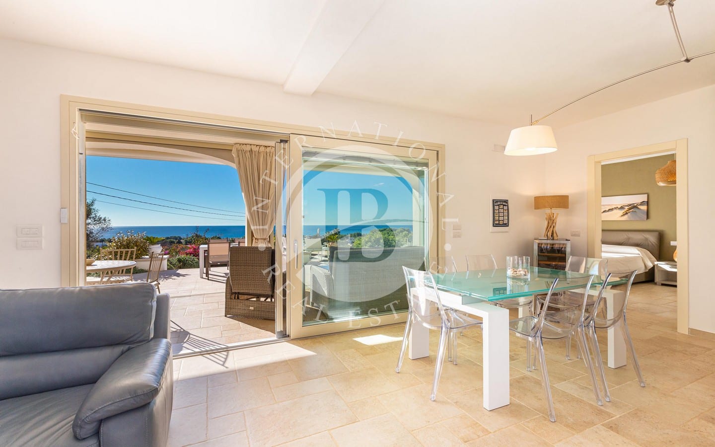 luminoso living open space e una cucina moderna, arricchiti da ampie porte finestre scorrevoli che consentono di godere appieno della spettacolare vista sul mare. Gli interni, arredati con gusto, comprendono una confortevole zona notte composta da due camere da letto matrimoniali servite da un bagno, oltre a una spaziosa master bedroom con una vista privilegiata sul mare e un elegante bagno ensuite.