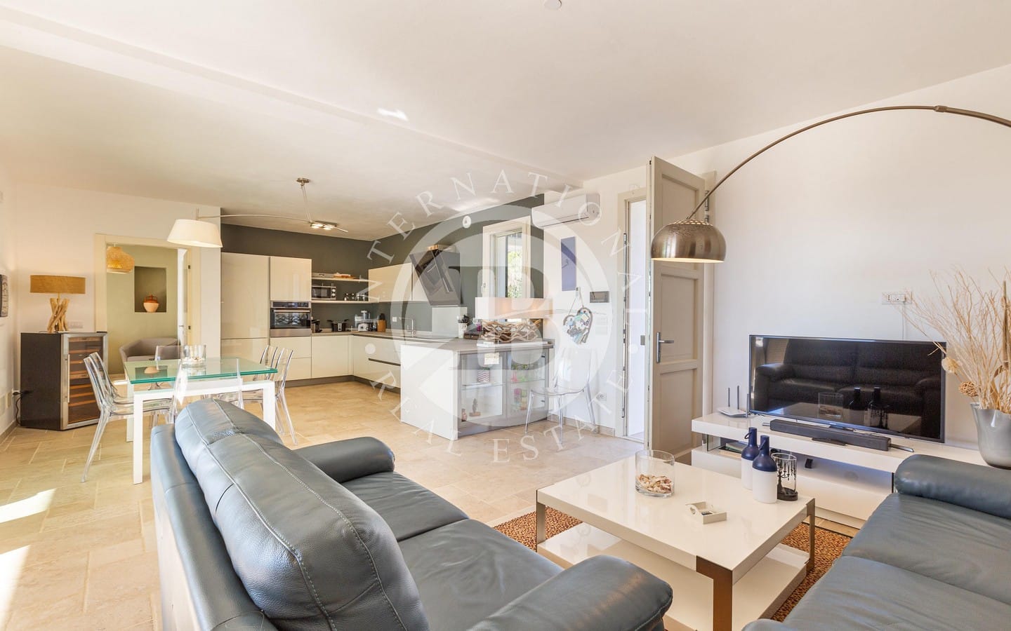 Questa elegante villa di 100 mq, situata a Pescoluse, nel cuore del Salento, rappresenta un perfetto connubio di design moderno, comfort e una vista mozzafiato sulle incantevoli spiagge della zona. Immersa nella tranquillità di una collina panoramica, la proprietà si distingue per l’armonia tra gli spazi interni ed esterni, progettati con cura per offrire un’esperienza abitativa unica e raffinata. La villa si sviluppa su un unico piano e accoglie gli ospiti con un luminoso living open space e una cucina moderna, arricchiti da ampie po…