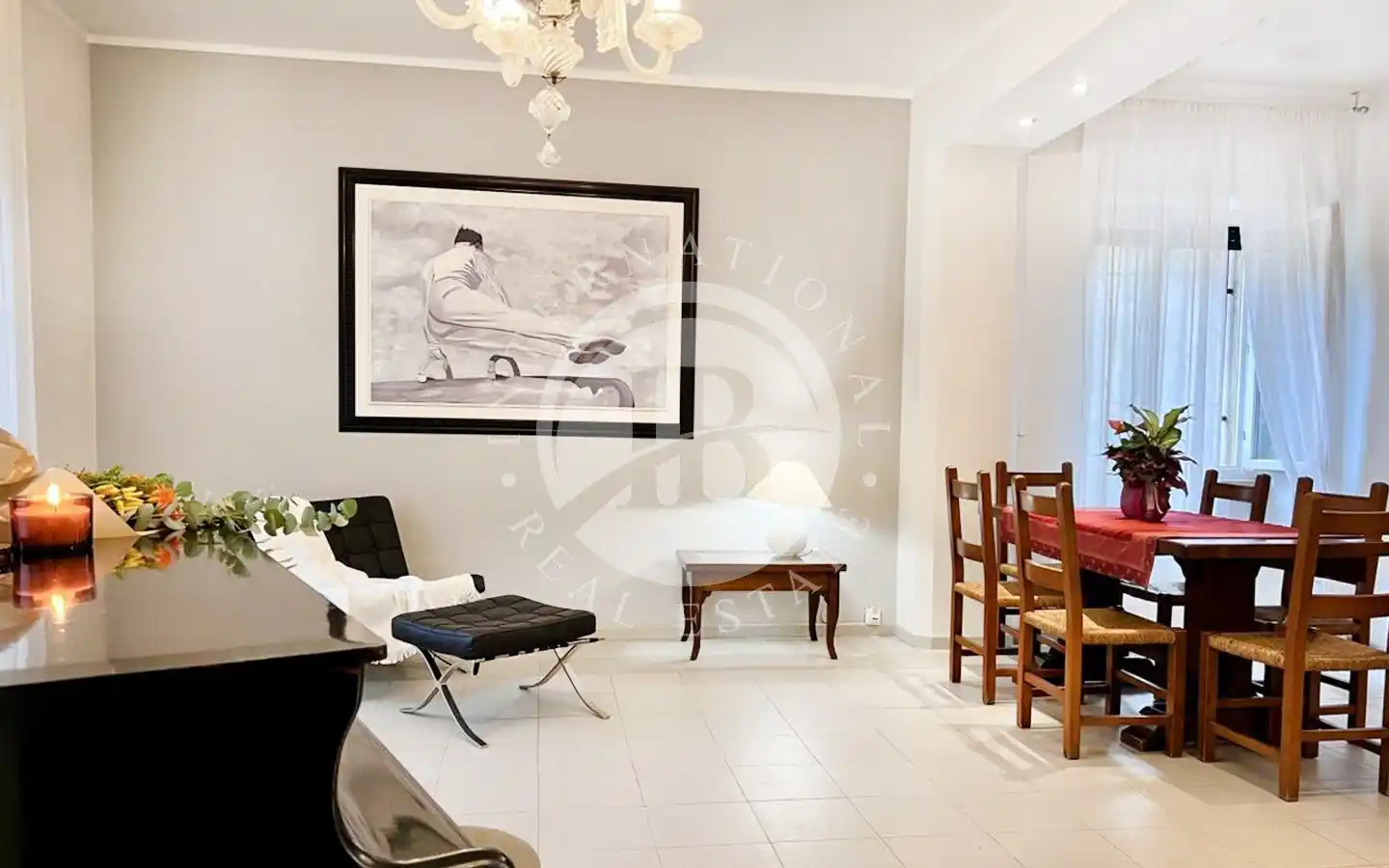 Il soggiorno, ampio e accogliente, rappresenta il cuore della casa, uno spazio ideale per trascorrere momenti di relax o accogliere amici e famiglia. La cucina, separata e organizzata con cura, offre praticità senza rinunciare al gusto estetico. La zona notte comprende due camere di notevoli dimensioni e una terza stanza versatile, perfetta come studio o camera aggiuntiva. I due bagni, uno dotato di doccia e l’altro di vasca, assicurano massima comodità nella vita quotidiana.