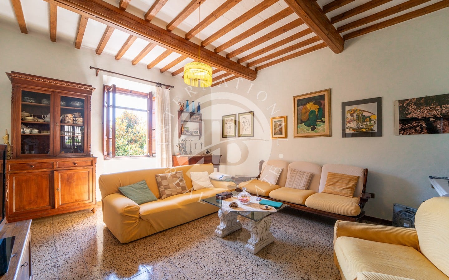 L'edificio è composto da 8 camere disposte sui tre appartamenti, che si sviluppano su più livelli, formando la spina dorsale della proprietà. Particolarmente suggestivo è il balcone all'ultimo piano, che regala una vista panoramica sulla splendida campagna circostante. La proprietà è in ottimo stato e offre ampi margini di trasformazione, permettendo di modificarne la destinazione d'uso per soddisfare le proprie esigenze. Inizialmente concepita come un'unica residenza per tre nuclei familiari, la casa potrebbe diventare una guest house o essere suddivisa per affitti a lungo termine, a seconda delle necessità.