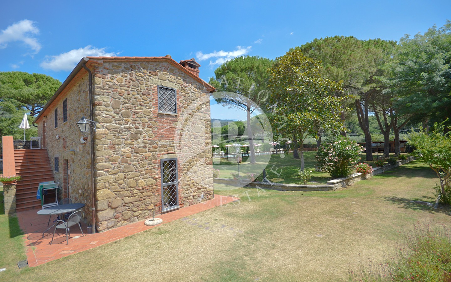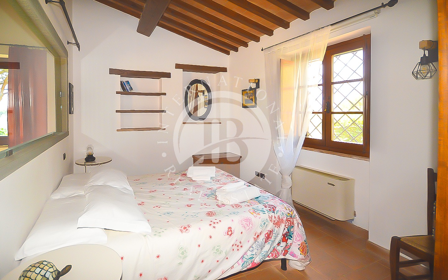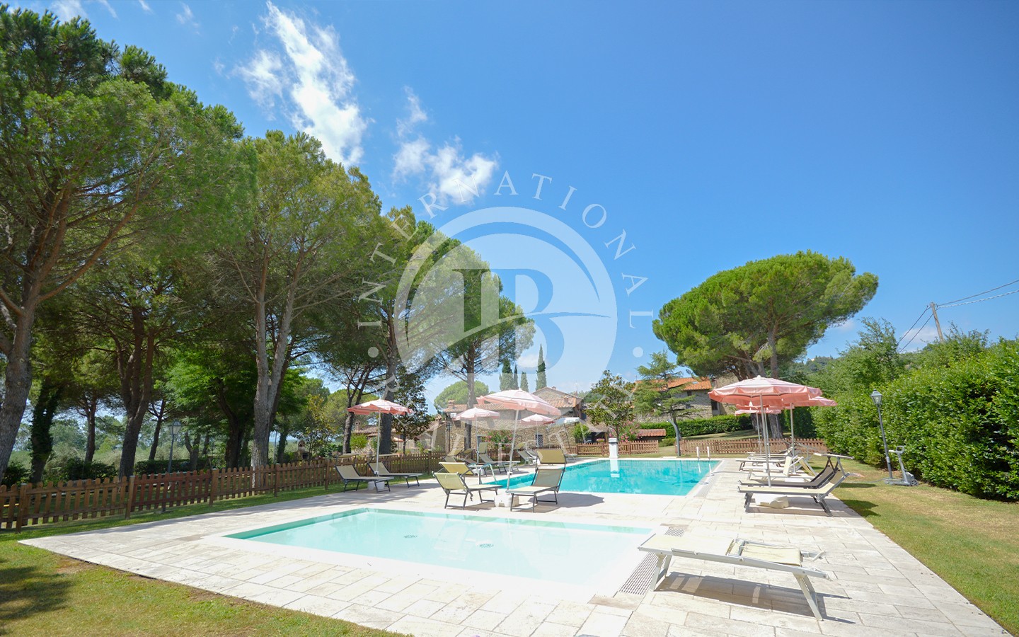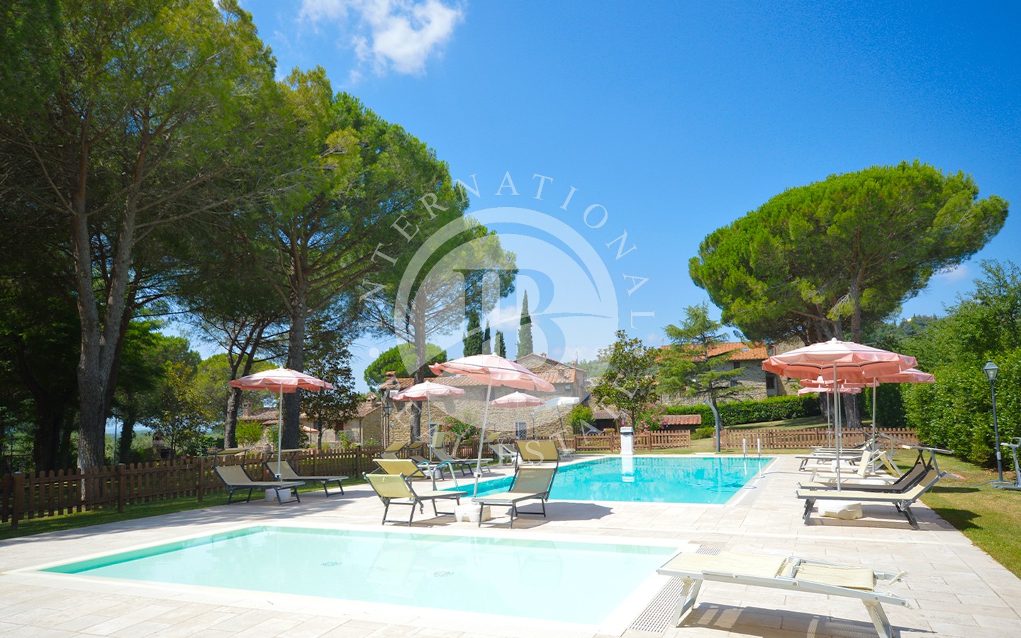 Questa affascinante proprietà risalente al 1868 è composta da 3 casali restaurati, suddivisi in 9 appartamenti. Rinnovata negli anni '90, la proprietà è stata utilizzata come struttura ricettiva ed è circondata da un parco di 4.000 mq recintato con 2 piscine. Situata in una delle valli più verdi dell’Umbria, al confine con la Toscana, a pochi passi dal Lago Trasimeno, la proprietà è immersa in un paesaggio di colline ondulate, boschi, uliveti, vigneti e campi coltivati. Il casale principale si sviluppa su 3 livelli per un totale di 26…