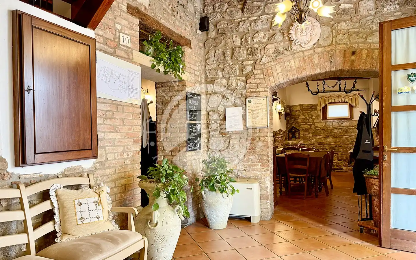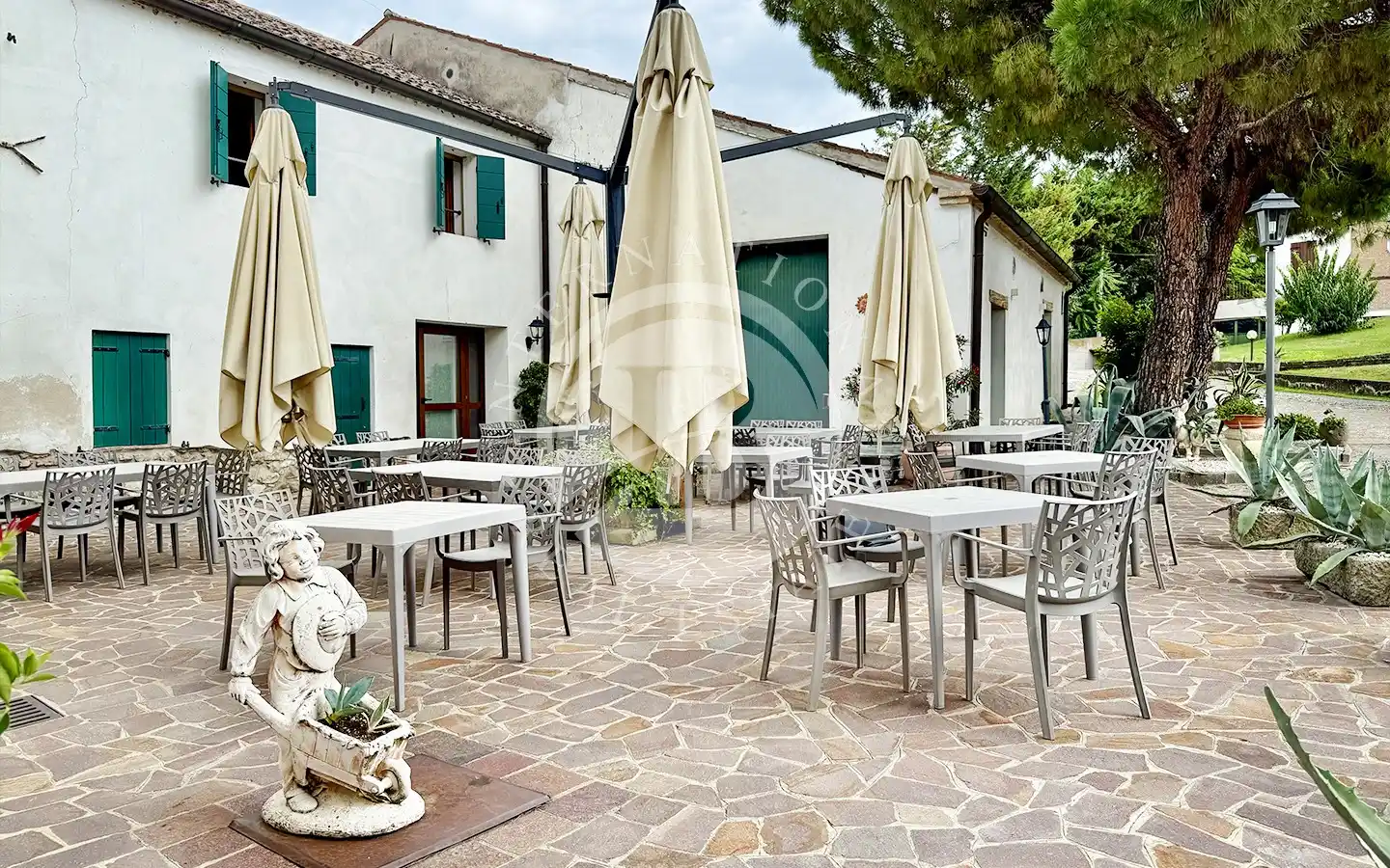 strutturale e manutentivo. La proprietà copre oltre 1.300 mq e comprende l’agriturismo con sale ristorante, cucina professionale e otto camere con bagno privato, la villa padronale di circa 200 mq con giardino, magazzini, garage, parcheggio per circa 20 auto e ampie aree verdi.