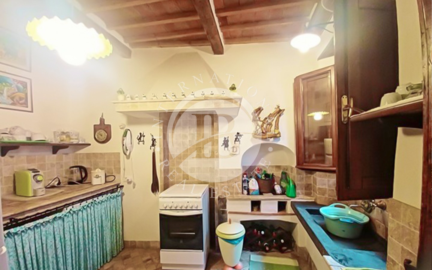 Al piano terra rialzato troviamo una splendida terrazza abitabile, un ampio soggiorno con camino, zona pranzo, cucina e un ulteriore ingresso dalla corte. Il primo piano ospita due camere da letto, una delle quali con soffitto affrescato, e un bagno con vasca idromassaggio. Salendo ancora, il secondo piano dispone di altre due camere, un bagno e un accesso al sottotetto tramite scala in legno.