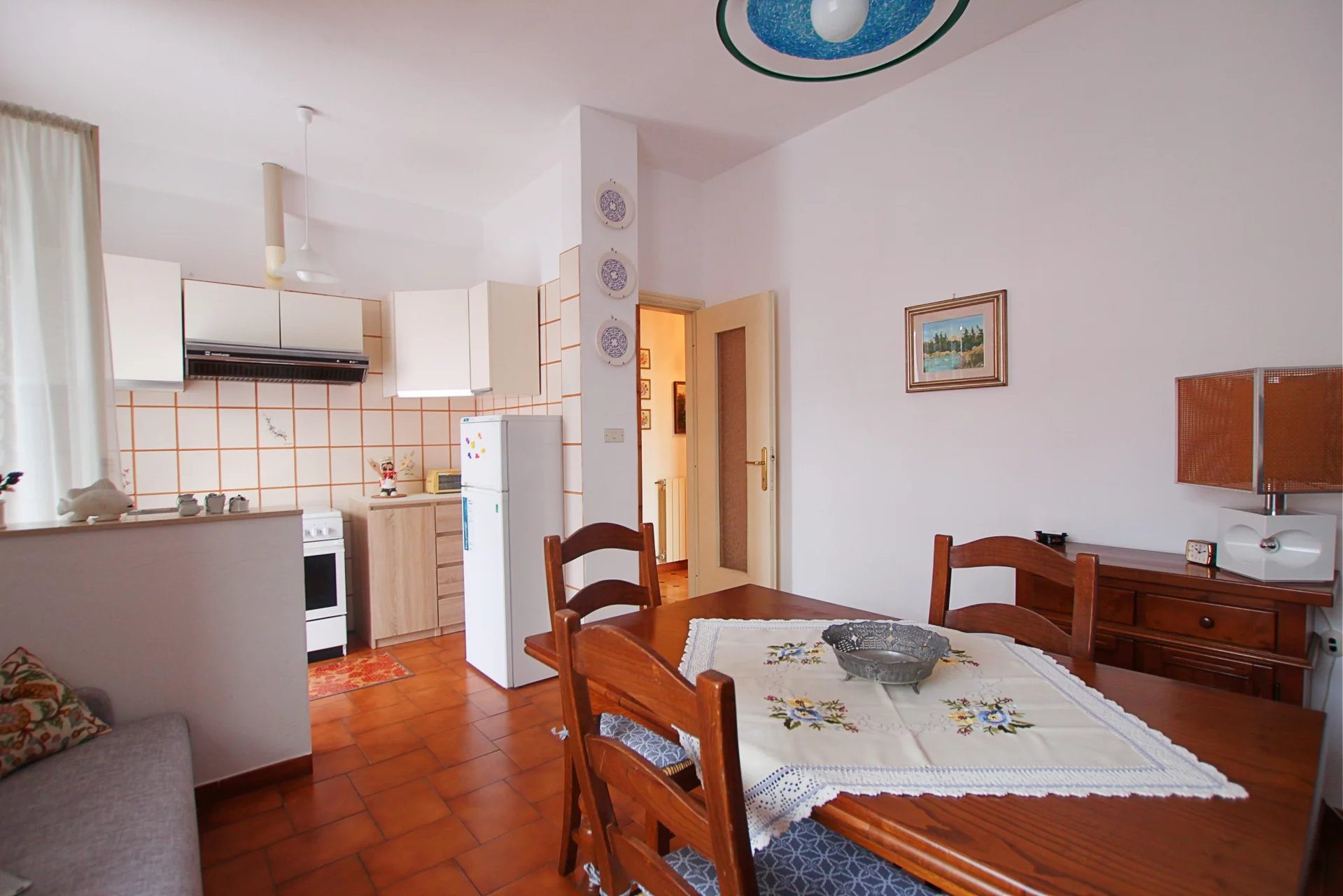 L’appartamento si trova al primo piano dello stabile, con ingresso su ampio soggiorno. Proseguendo si trovano una camera da letto matrimoniale con balcone e una sala da pranzo con angolo cottura dal quale si accede alla terrazza.Tramite un corridoio si raggiungono poi altre due camere da letto e un bellissimo bagno con vasca e doppia finestra.