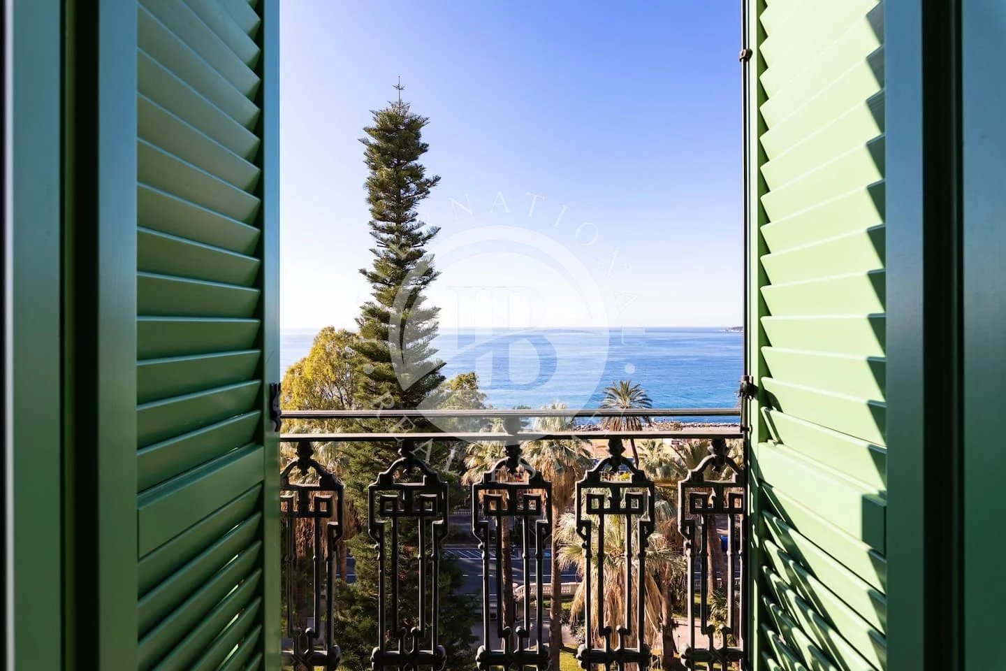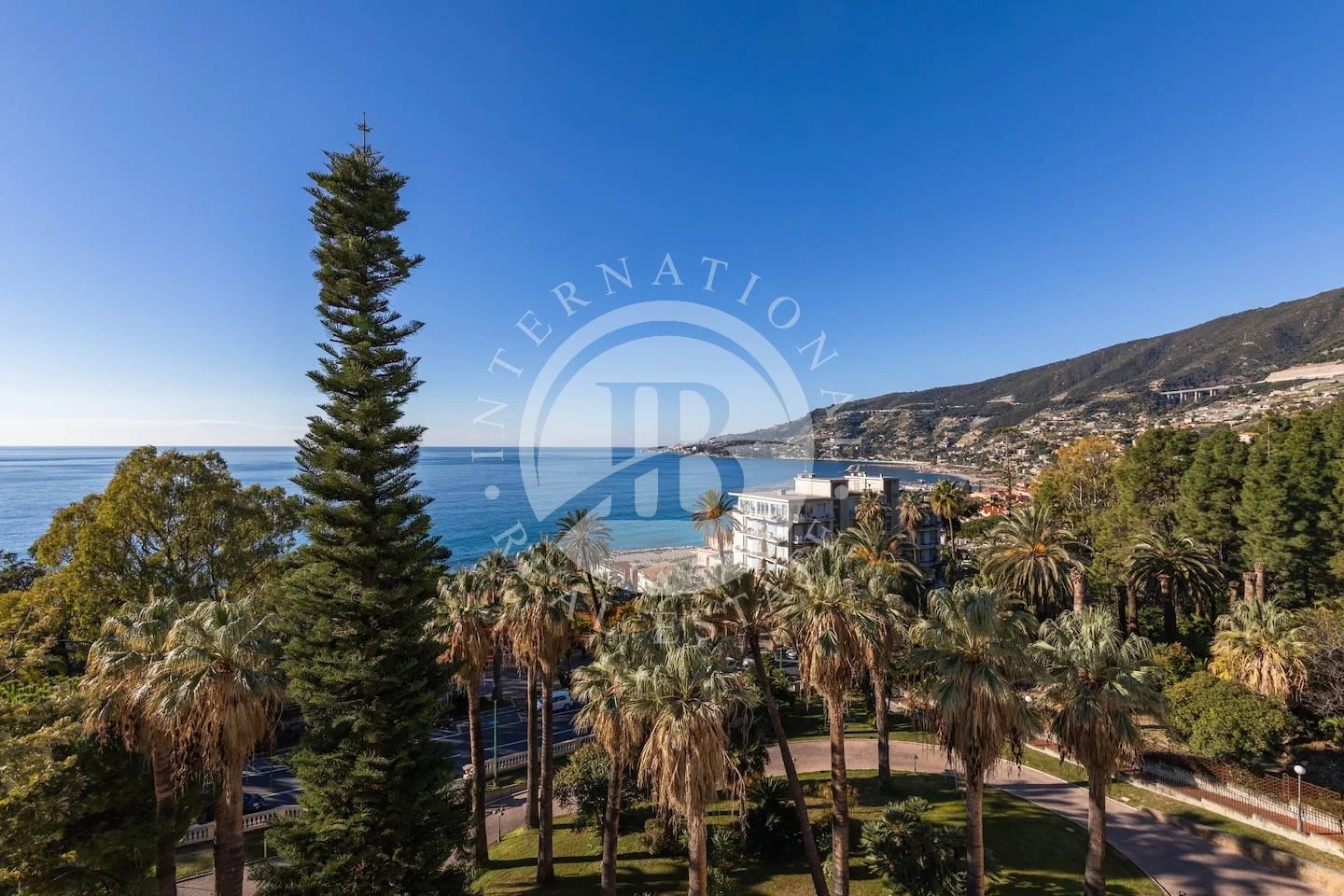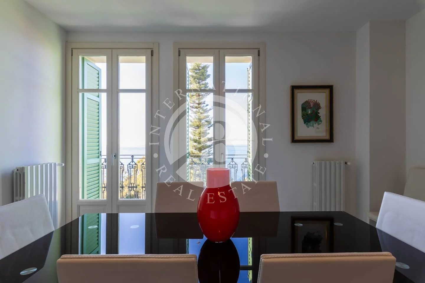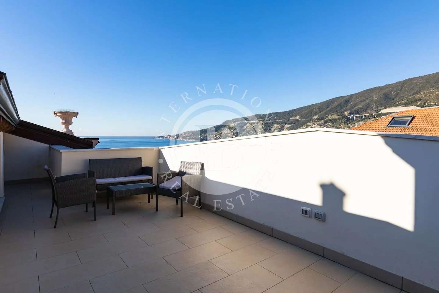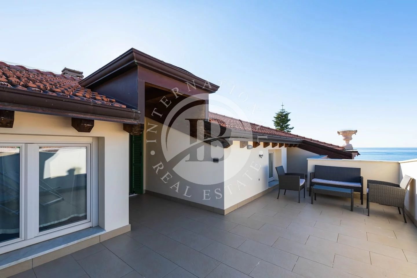 Nel centro di Ospedaletti, nella prestigiosa Residenza Regina Margherita è in vendita un appartamento posto al quarto ed ultimo piano con terrazza. La proprietà si sviluppa su due piani finemente ristrutturati con materiali di pregio tra i quali il parquet in assito birmano, ceramiche di Valencia e marmi bianchi di Carrara. Al primo piano ampio soggiorno vista mare, cucina e un bagno. Al secondo piano tre camere, due bagni di cui uno en suite e terrazzo vivibile con una splendida vista mare. La residenza è circondata da un magnifico p…