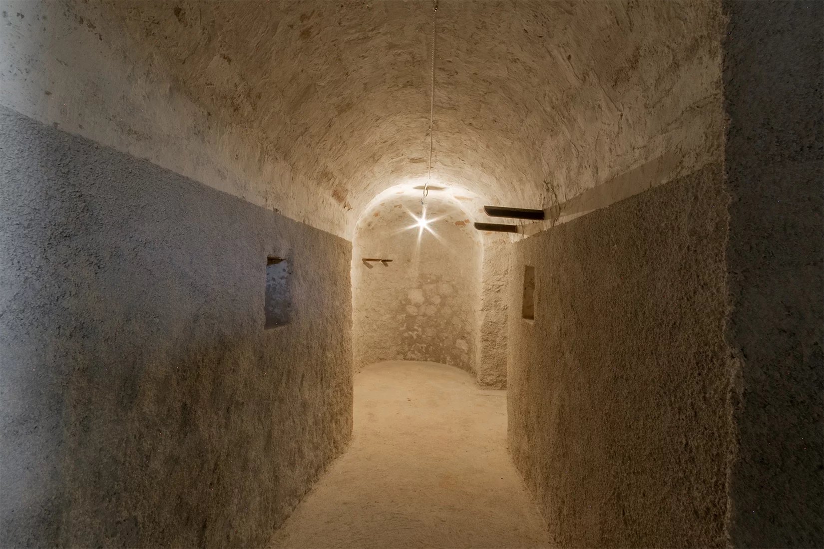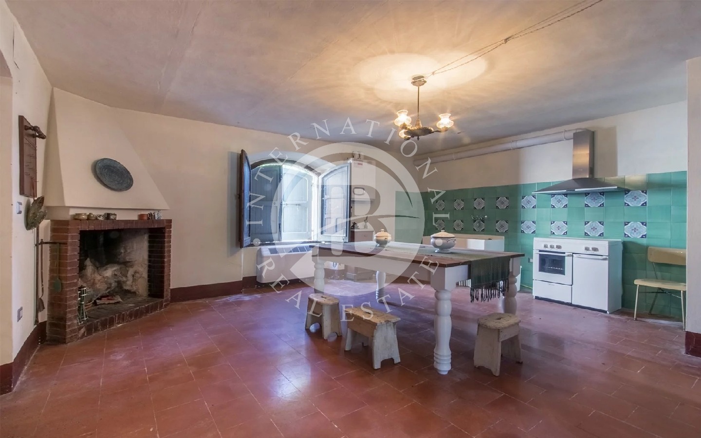 L' accesso carrabile dal viale che, attraversa il parco condominiale, suggestivo e secolare, conduce agli ingressi, l' Appartamento d'Epoca disposto tra piano terra e piano ammezzato ha una superficie di circa 400 mq, oltre ad un piano seminterrato, una grotta di circa 130 mq ed un garage al piano terra di 65 mq. La scala in pietra antica, conduce all'ingresso privato, entrandovi veniamo accolti da un grande soggiorno open-space a livelli sfalsati, che portano ad ulteriori altri locali adibiti a sale ricreative, alle cucine, alle camere, oltre a locali servizi.