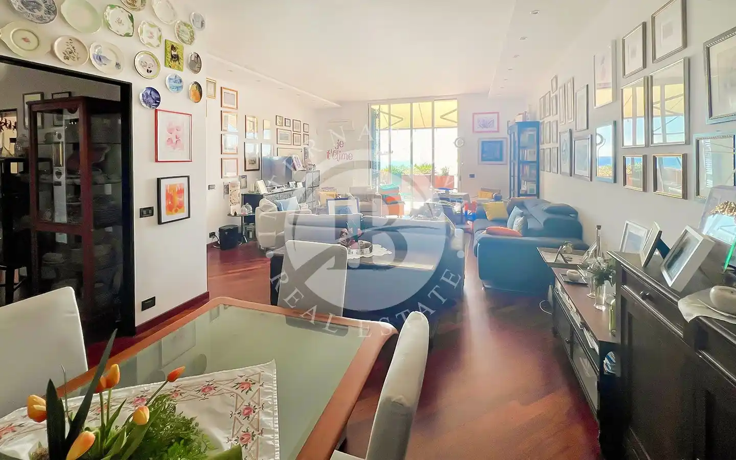 abitazione accoglie con un ingresso ampio e scenografico che introduce a un elegante soggiorno affacciato sul mare, in continuità con la zona pranzo e la cucina abitabile, impreziosita da una pratica veranda ideale come lavanderia. La zona notte comprende tre camere da letto, di cui una dotata di cabina armadio, due bagni finestrati e un comodo ripostiglio.