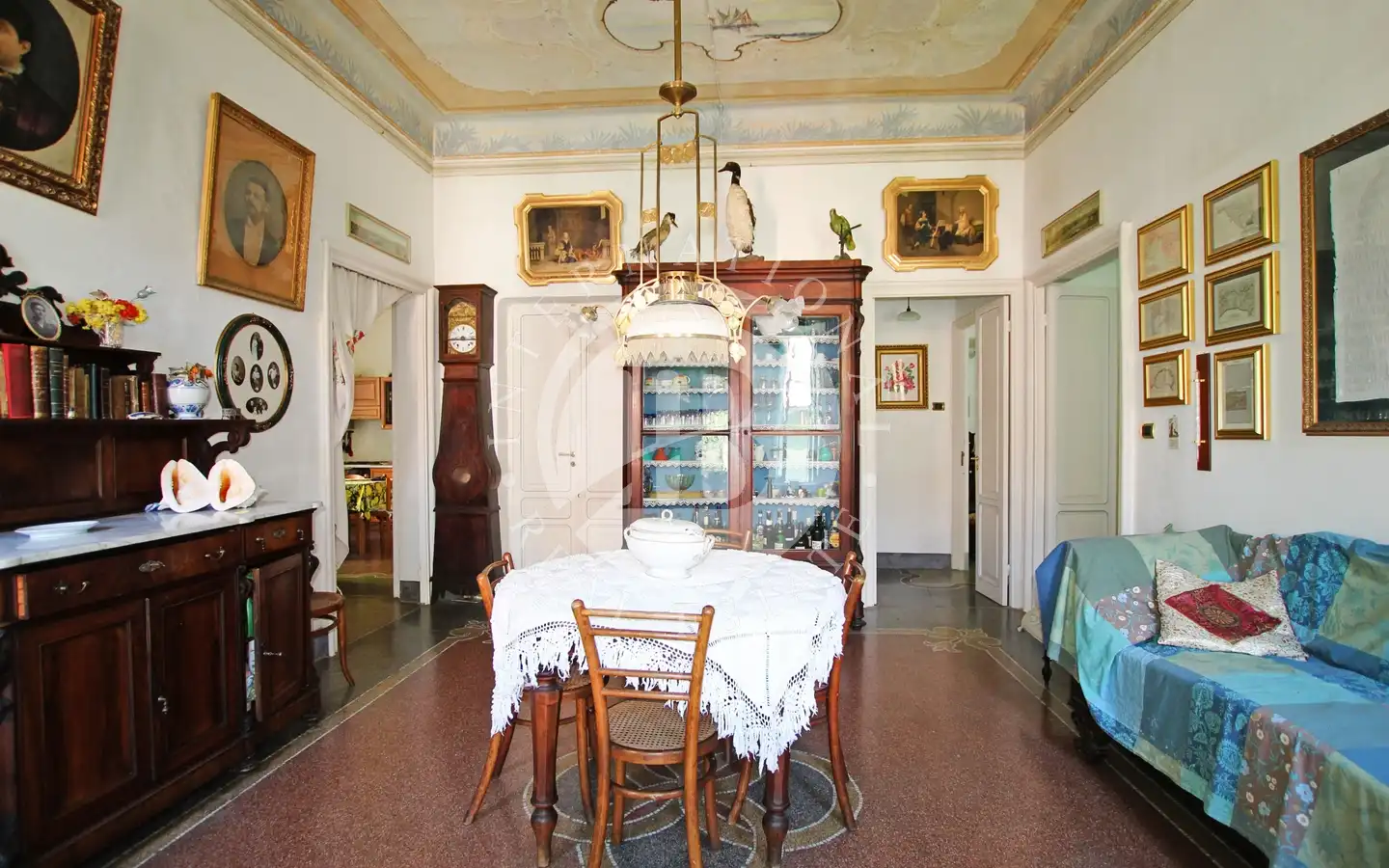 Situato al piano nobile della villa, questa residenza offre un accesso diretto al giardino in comune, avvolto dal fascino dell'intera proprietà. Con una superficie di 130 metri quadrati, l'appartamento dispone di tre camere da letto, due bagni, una cucina e un ingresso che conduce a un ampio soggiorno. Aumentando l'attrattiva di questa proprietà, vi è una cantina di 20 metri quadrati, oltre a una seconda cantina condivisa nel seminterrato. Sebbene non ci sia un sistema di riscaldamento autonomo, esiste la possibilità di installare uni…
