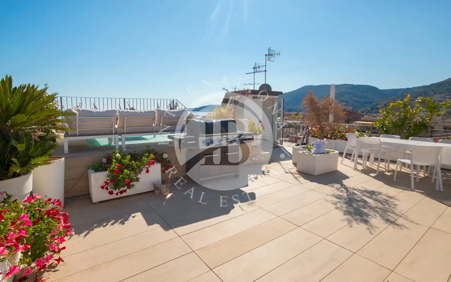 Al piano superiore, una terza camera con disimpegno conduce al terrazzo panoramico, un ambiente esclusivo e riservato, arredato con area pranzo e zona living all’aperto.