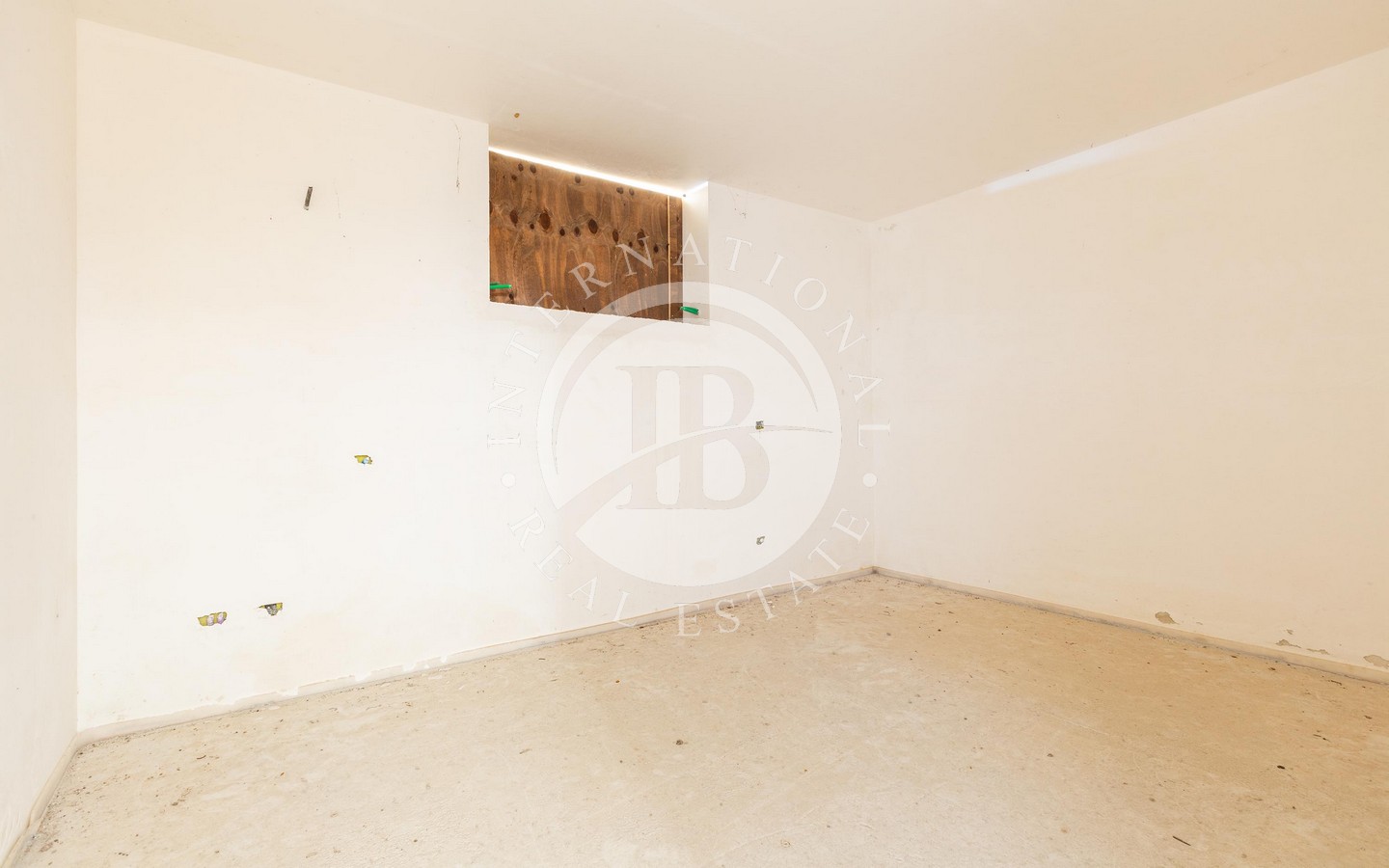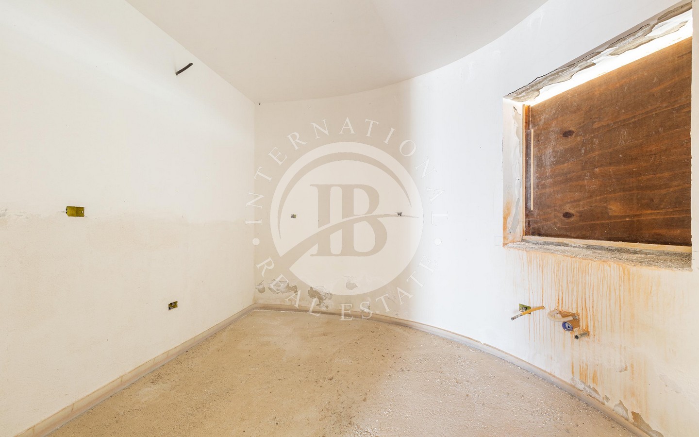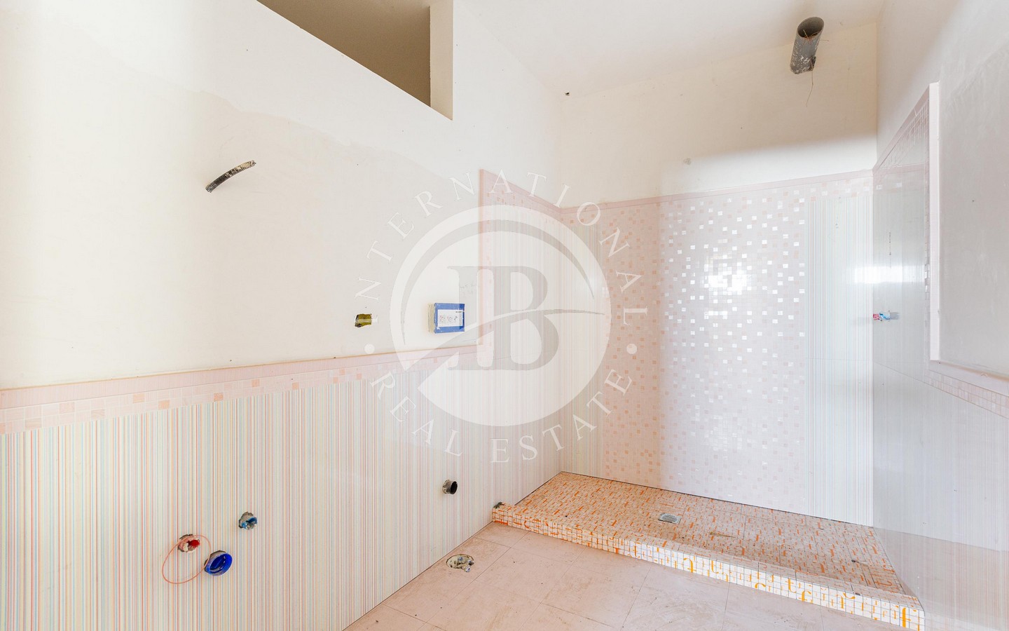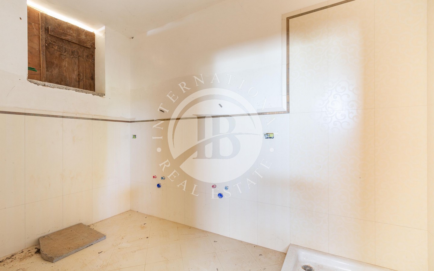 minoso soggiorno, un bagno di servizio, un angolo cucina e uno spazioso living. Le scale interne conducono al piano inferiore, dove si trova la zona notte con una master bedroom dotata di cabina armadio e bagno en suite, una camera doppia, un bagno completo e un'area relax trasformabile in una terza camera da letto. Gli interni, pur essendo in stato rustico avanzato, sono predisposti per un impianto di riscaldamento e raffrescamento a pavimento, garantendo comfort tutto l'anno.