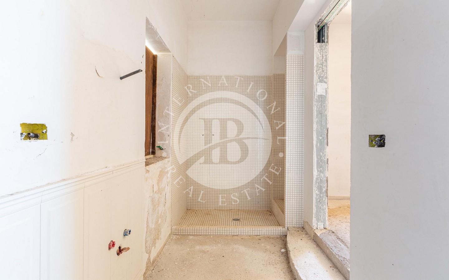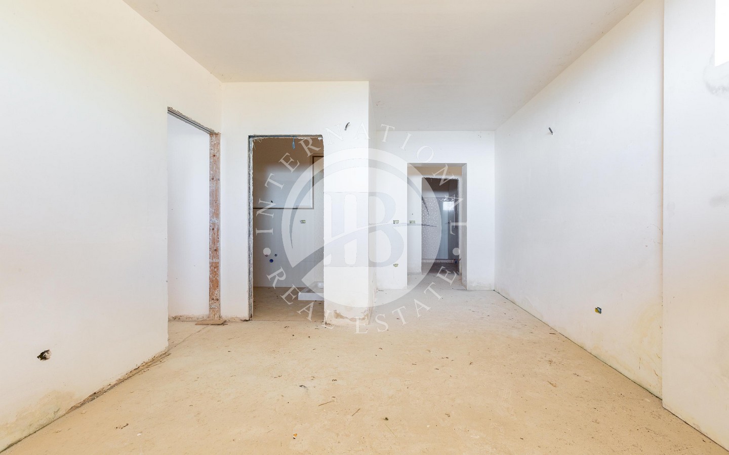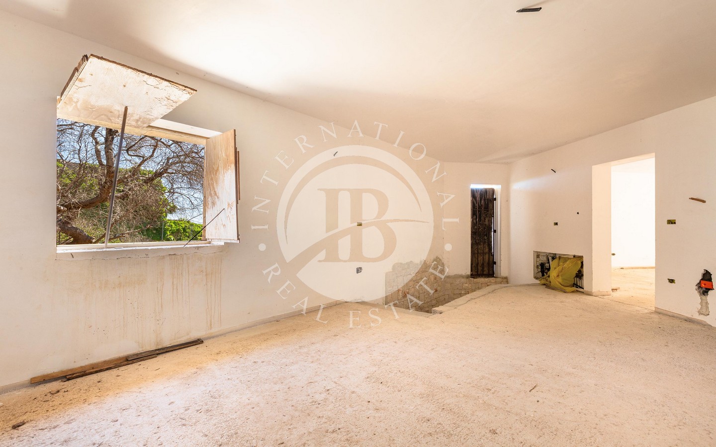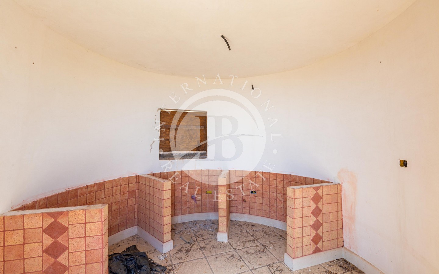 minoso soggiorno, un bagno di servizio, un angolo cucina e uno spazioso living. Le scale interne conducono al piano inferiore, dove si trova la zona notte con una master bedroom dotata di cabina armadio e bagno en suite, una camera doppia, un bagno completo e un'area relax trasformabile in una terza camera da letto. Gli interni, pur essendo in stato rustico avanzato, sono predisposti per un impianto di riscaldamento e raffrescamento a pavimento, garantendo comfort tutto l'anno.