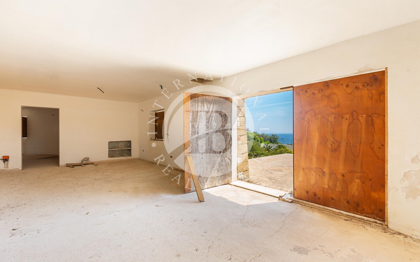 Immersa in un terreno di 1150 mq, la villa è circondata da un giardino mediterraneo con terrazzamenti, muretti in pietra a secco, olivi e piante tipiche. La proprietà include una scala esterna che porta a una terrazza panoramica, ideale per cene all'aperto con vista sul mare. È possibile acquistare ulteriori 1500 mq di terreno antistante, e richiedere autorizzazioni per la costruzione di una piscina. Questo spazio esterno è perfetto per chi cerca un'oasi di tranquillità e relax.