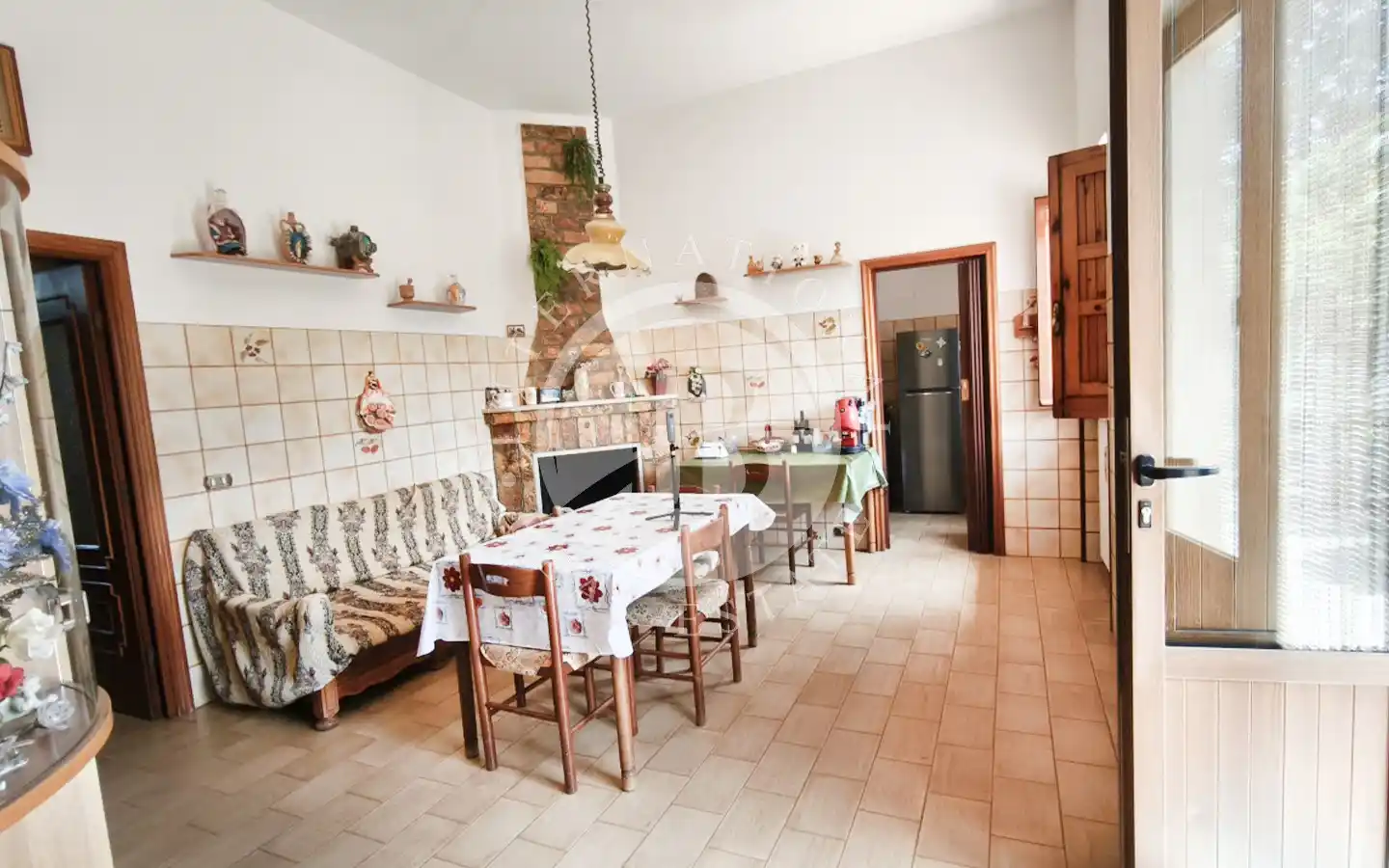 ano terra si apre una spaziosa abitazione composta da una luminosa cucina con caminetto, perfetta per le serate invernali, e da un’ampia sala pensata per momenti conviviali. Completano il livello tre camere da letto e un bagno, oltre a un locale stalle al rustico suddiviso in due ambienti, corredato da ulteriore servizio e corte destinata agli animali.