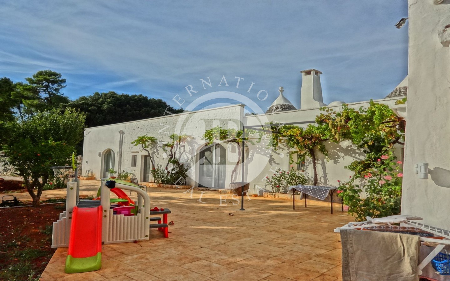 Completa la proprietà un'area stalle da ristrutturare, due trulli da rinnovare e circa 4,5 ettari di terreno con ulivi, bosco e una piscina di circa 40 metri quadrati.
