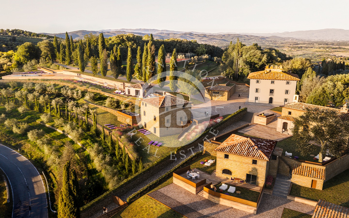 Complesso immobiliare del XIII secolo, trasformato in un'esclusiva residenza di lusso. Situato strategicamente nel cuore della Toscana, offre un connubio perfetto tra storia, natura e modernità, ideale sia come dimora privata che come struttura ricettiva di prestigio. La villa principale, sviluppata su tre livelli e estesa oltre 700mq, incanta con la sua maestosità e l'eleganza dei suoi spazi vasti e luminosi. Completamente ristrutturata secondo i più alti standard, ogni stanza è un capolavoro di design che rispetta l'autenticità stor…