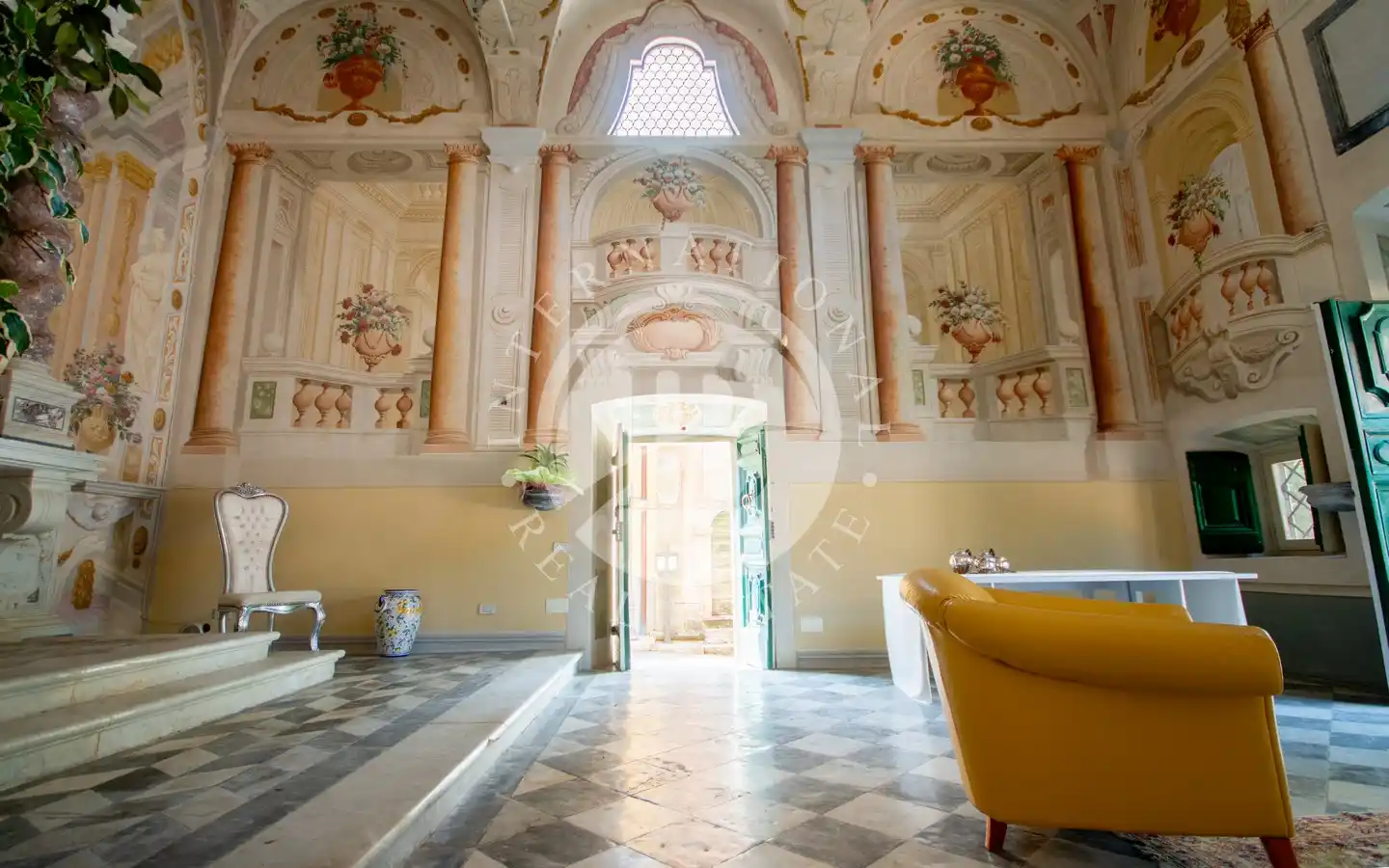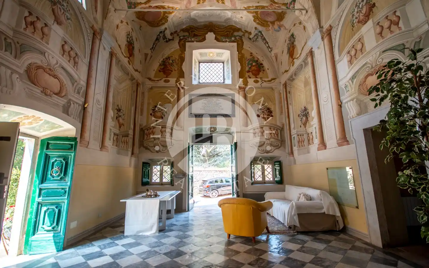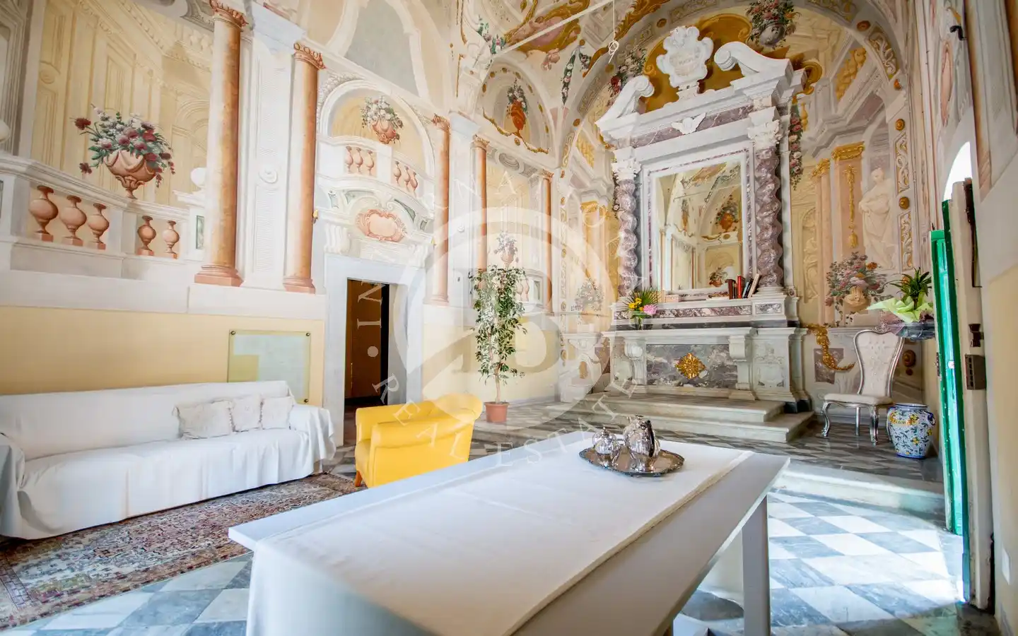 al pittore settecentesco Pietro Paolo Scorsini, autore anche degli affreschi di Palazzo Pfanner a Lucca. A impreziosire ulteriormente l’interno vi è un altare in marmo bianco con intarsi policromi e decorazioni dorate, che rende lo spazio un autentico scrigno d’arte già predisposto per accogliere una cucina.