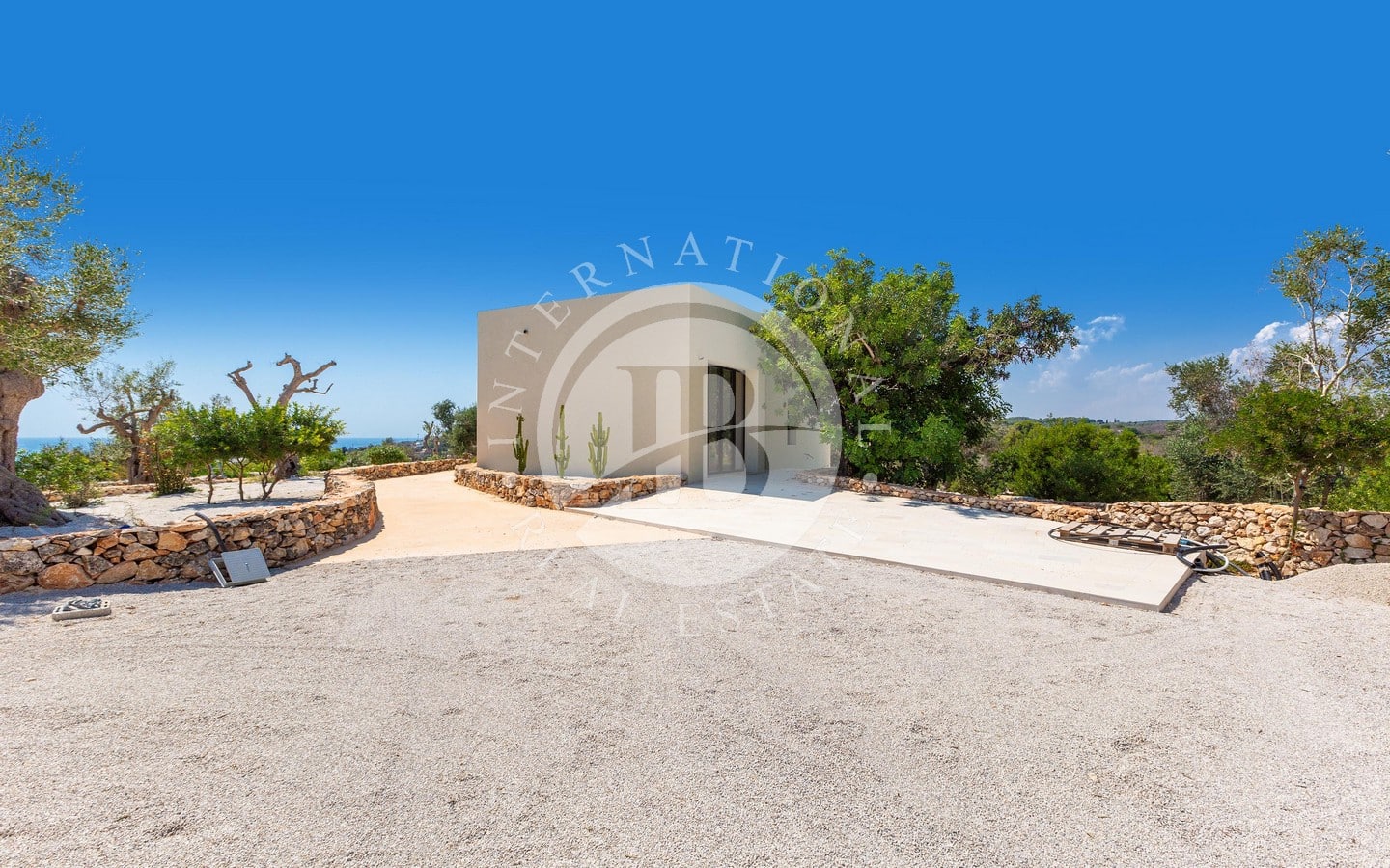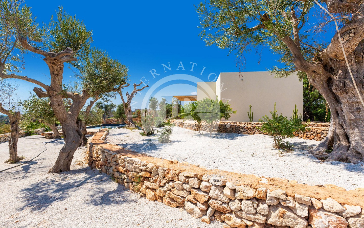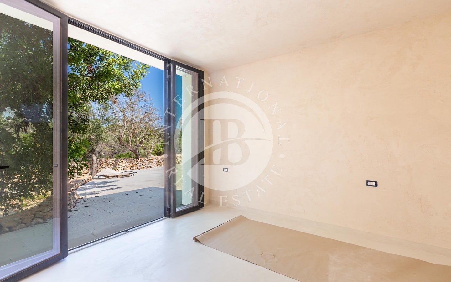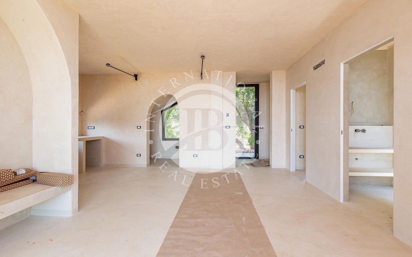 Gli spazi, luminosi e confortevoli, offrono una vista mozzafiato direttamente dal soggiorno su una splendida piscina a sfioro panoramica. Il giardino circostante, tra muretti in pietra e piante tipiche della macchia mediterranea, regala un'esperienza di totale immersione nella natura, con vista mare.