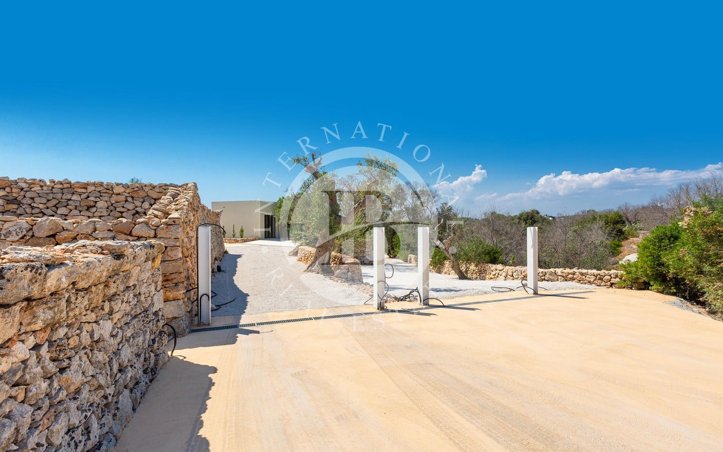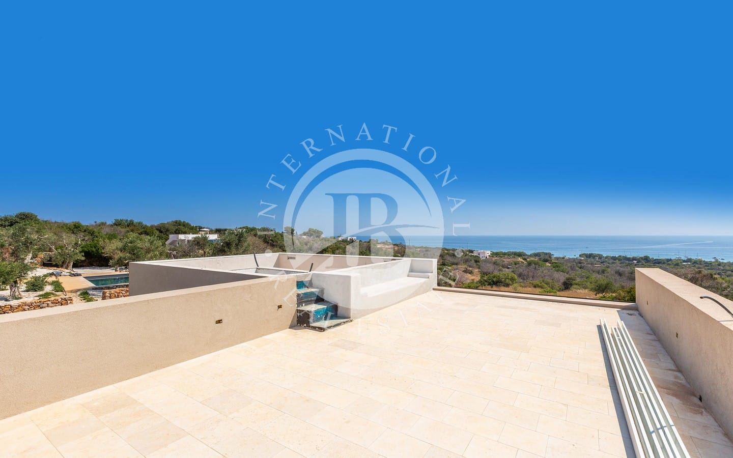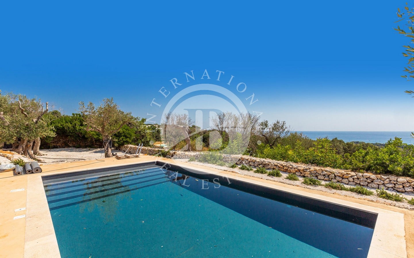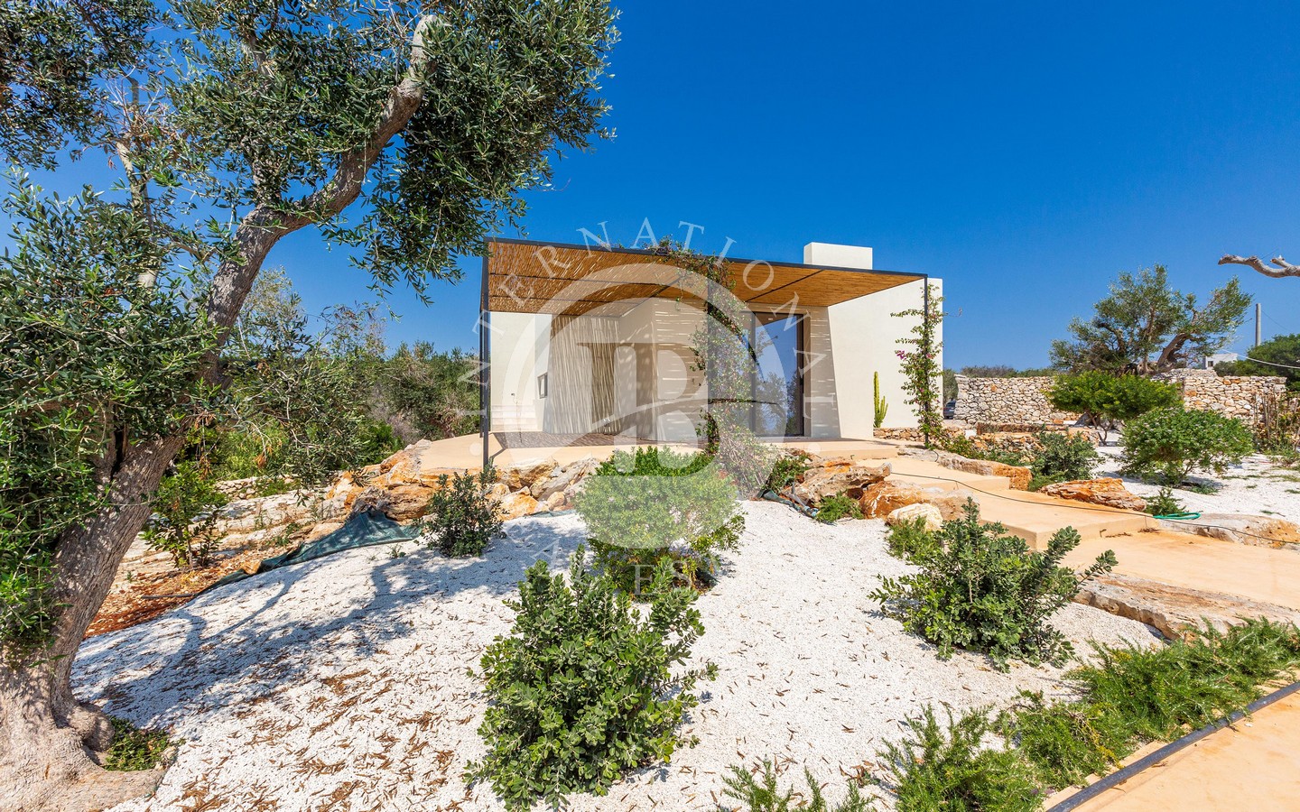 Gli spazi, luminosi e confortevoli, offrono una vista mozzafiato direttamente dal soggiorno su una splendida piscina a sfioro panoramica. Il giardino circostante, tra muretti in pietra e piante tipiche della macchia mediterranea, regala un'esperienza di totale immersione nella natura, con vista mare.