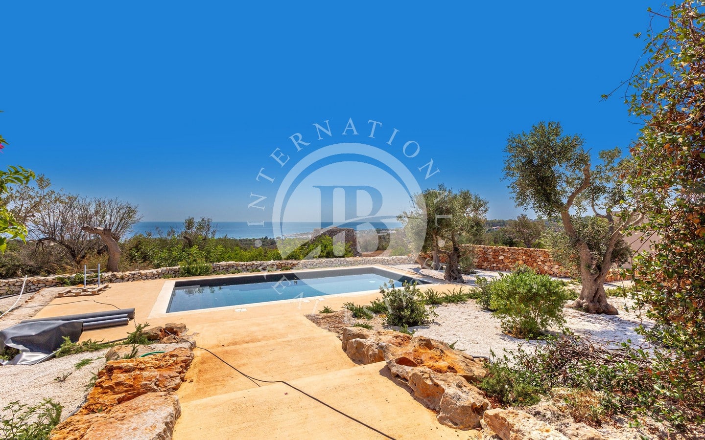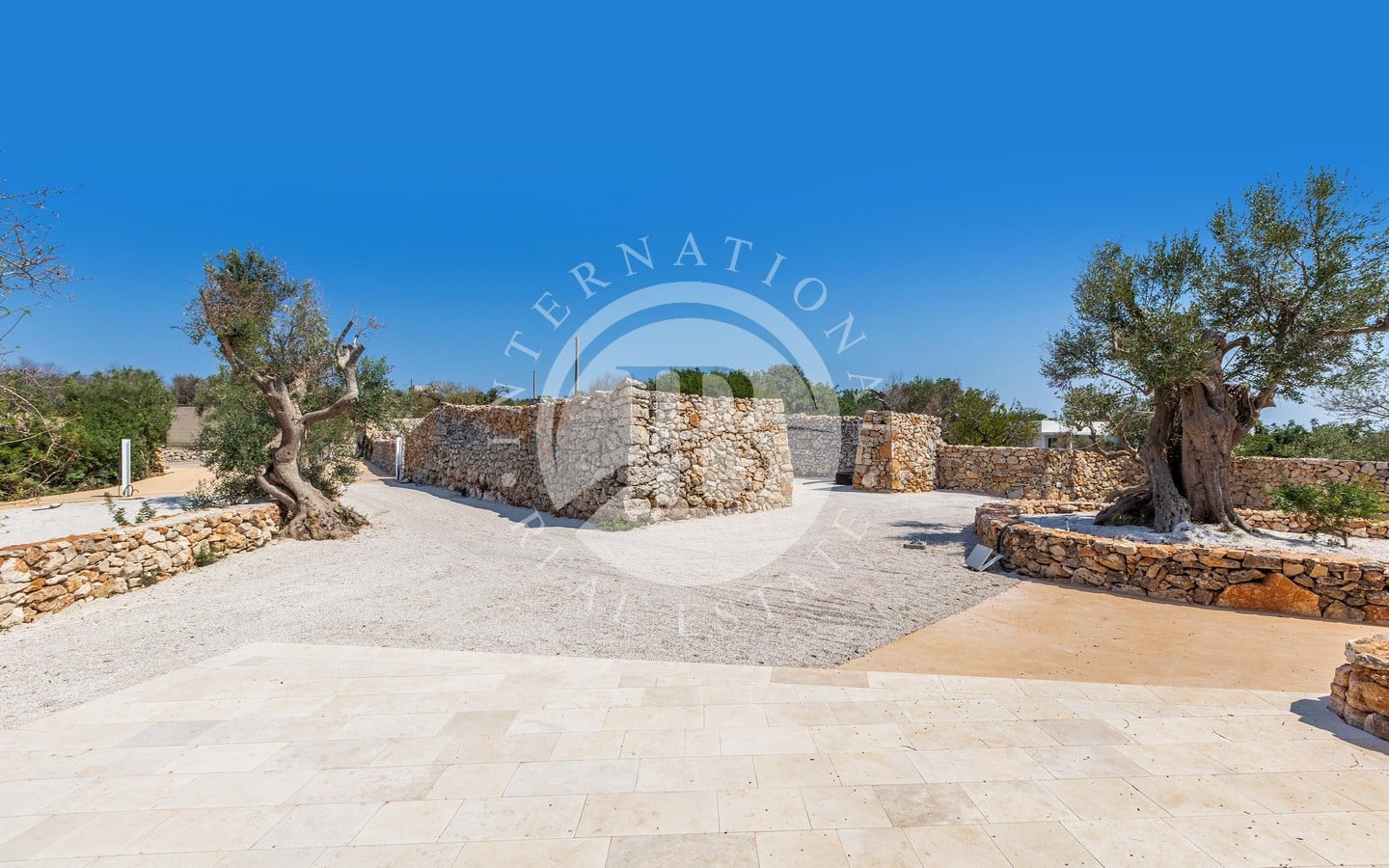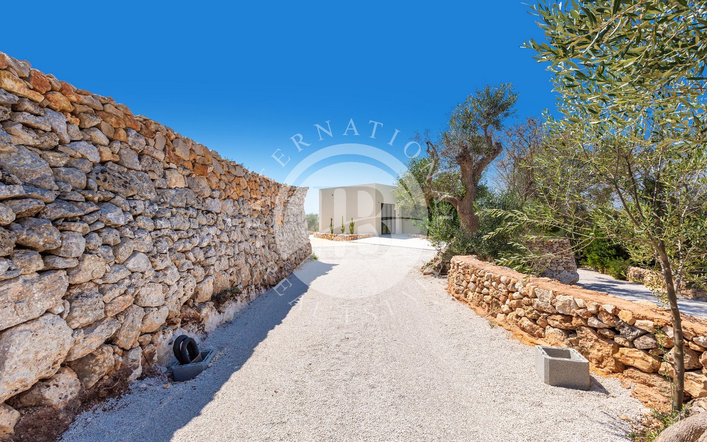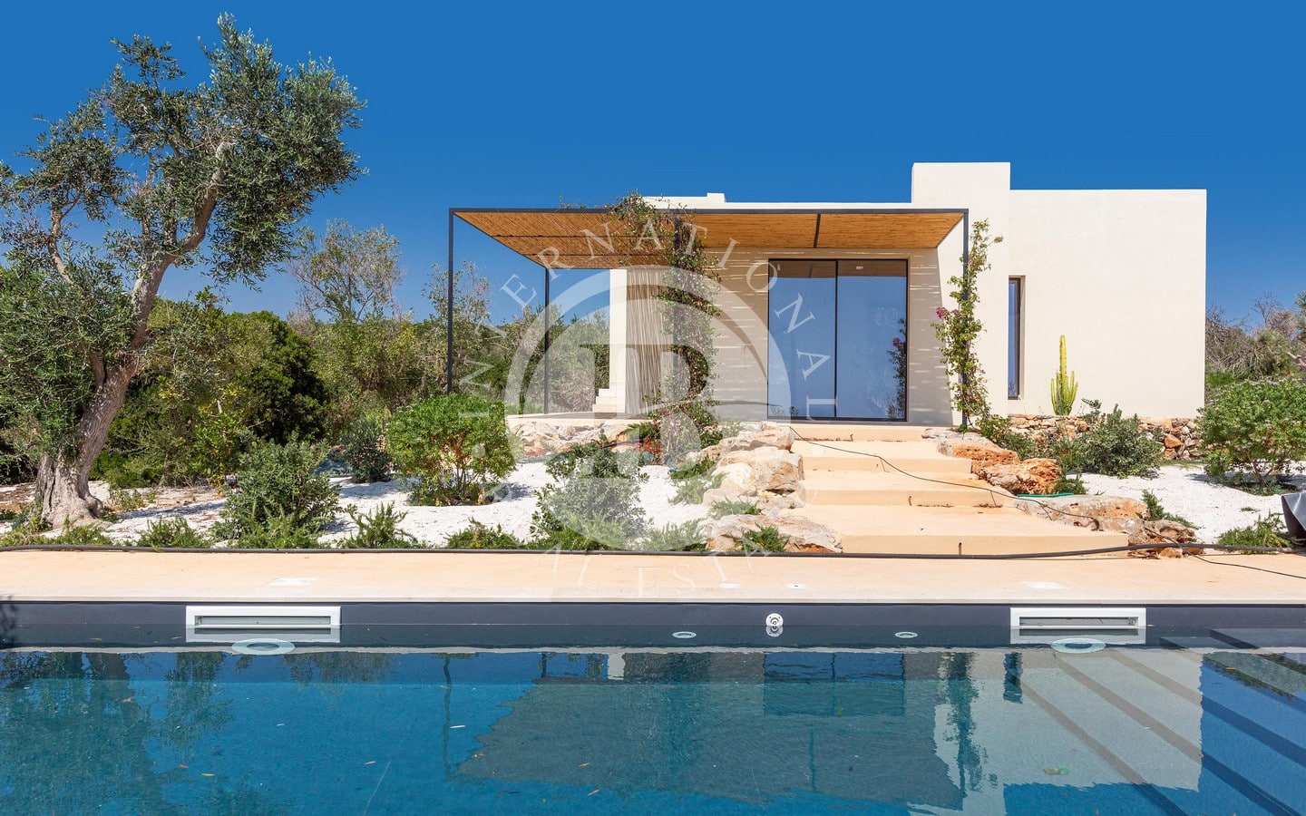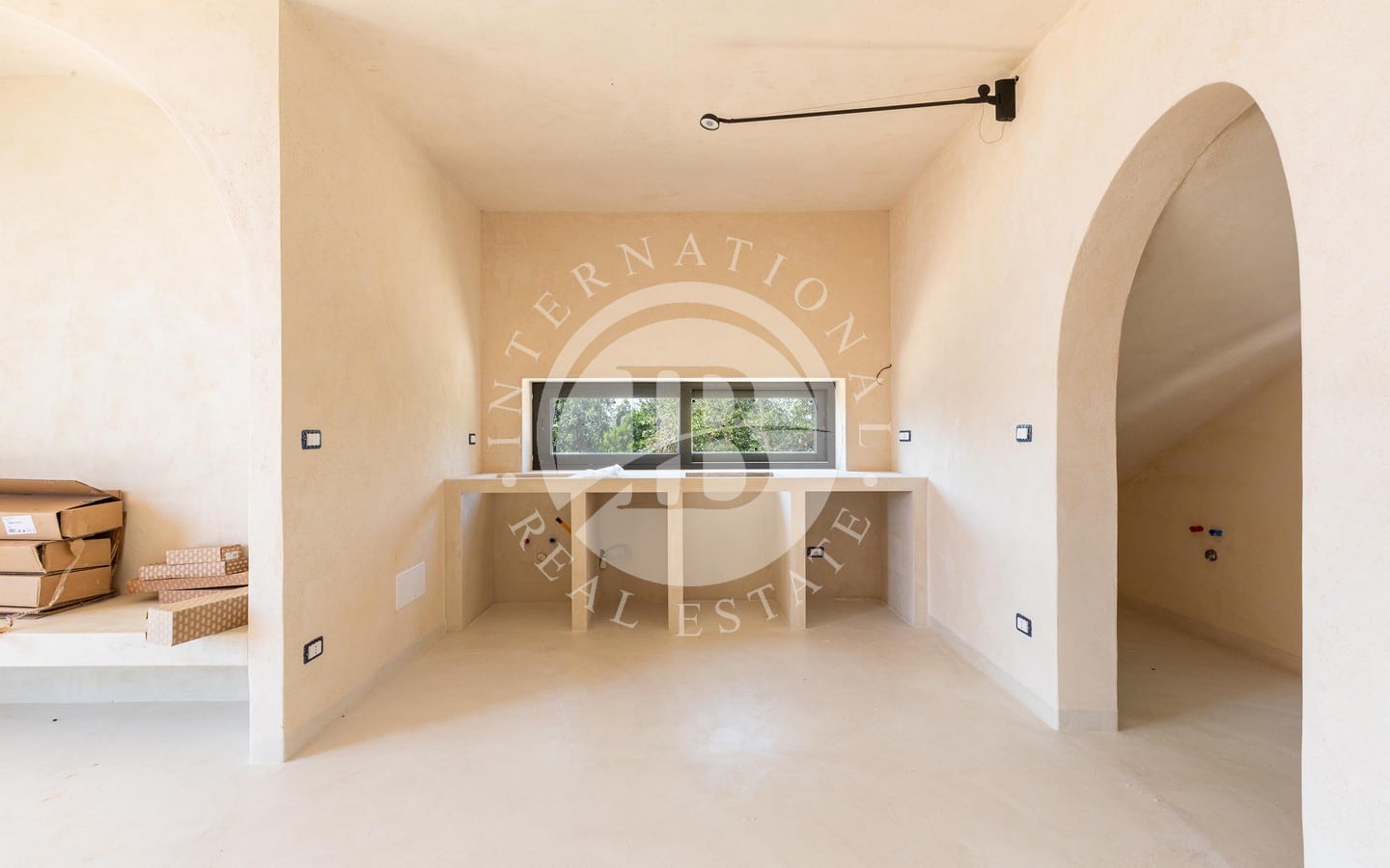 Gli spazi, luminosi e confortevoli, offrono una vista mozzafiato direttamente dal soggiorno su una splendida piscina a sfioro panoramica. Il giardino circostante, tra muretti in pietra e piante tipiche della macchia mediterranea, regala un'esperienza di totale immersione nella natura, con vista mare.