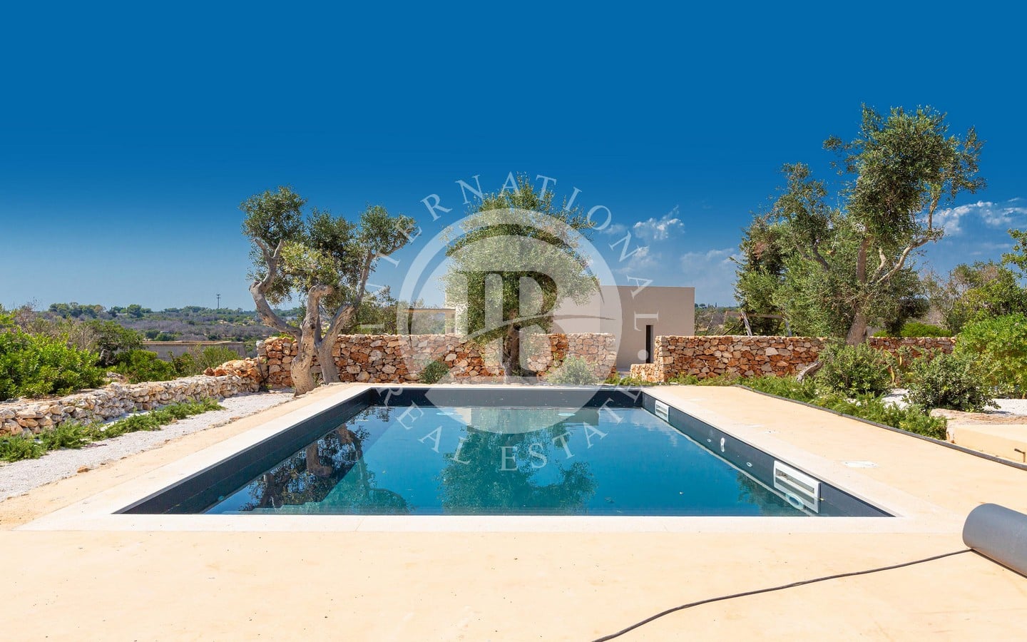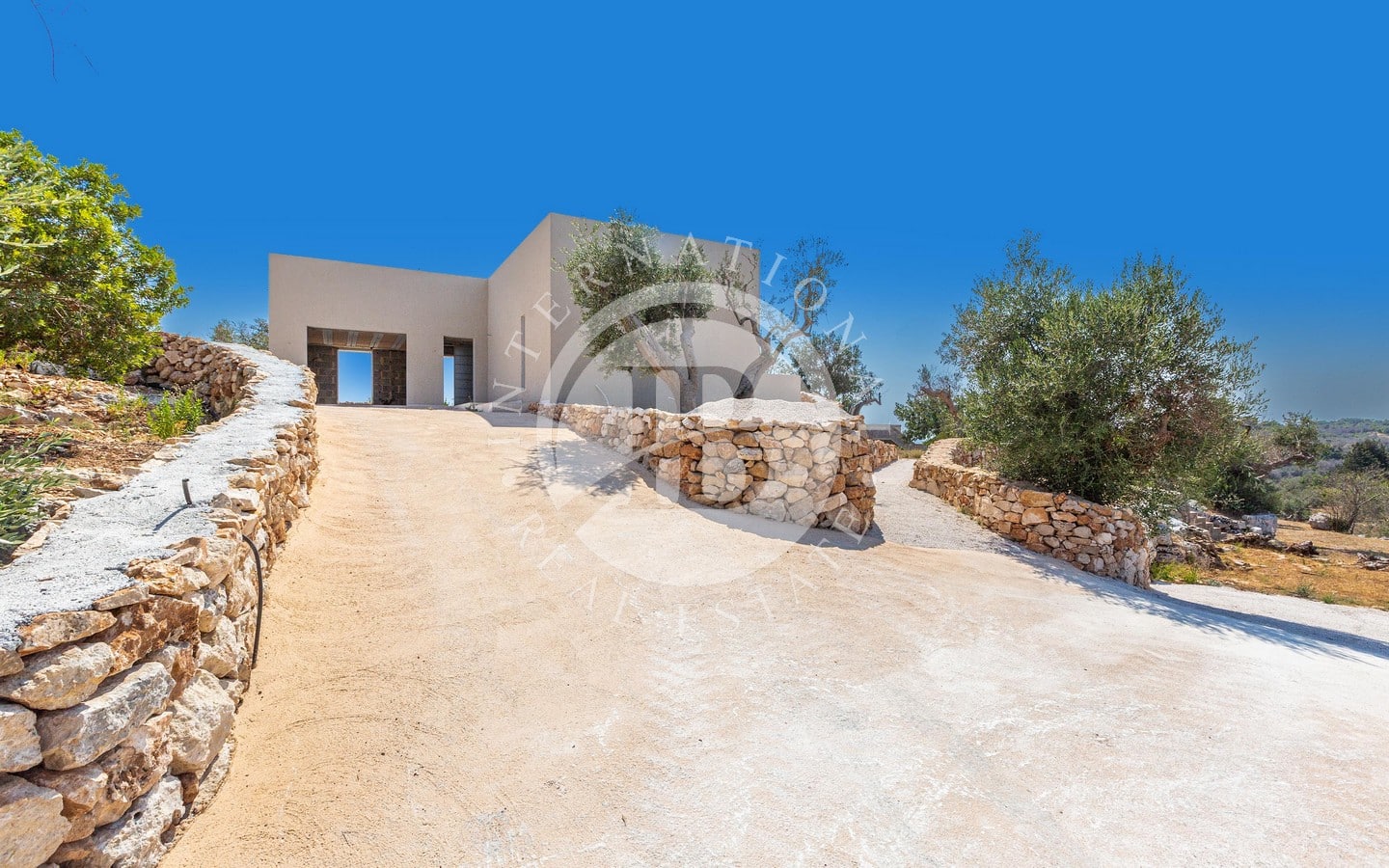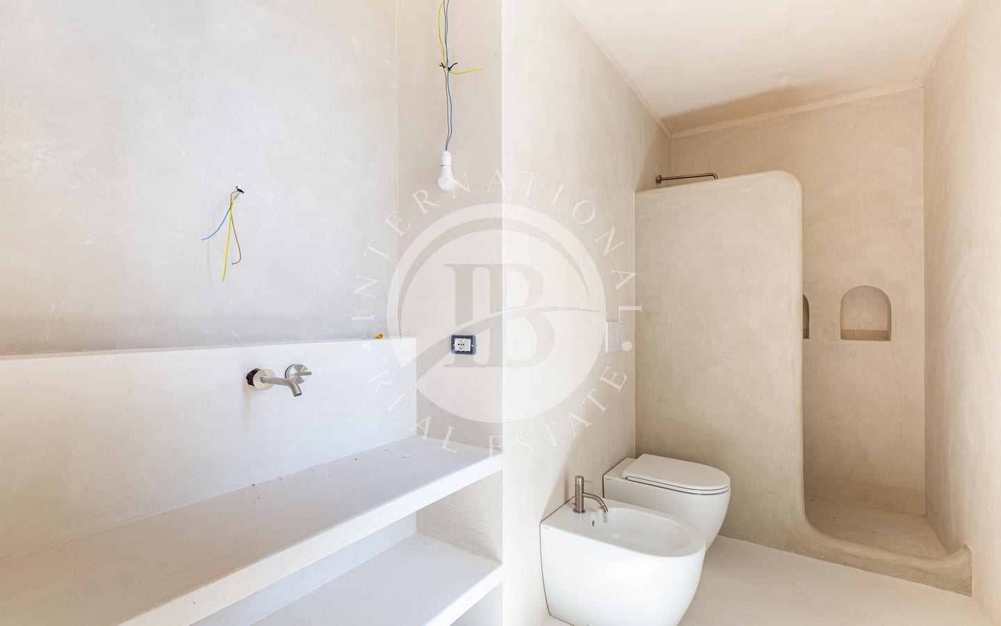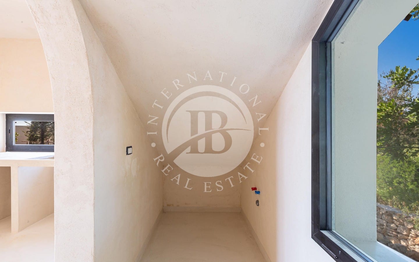 Gli spazi, luminosi e confortevoli, offrono una vista mozzafiato direttamente dal soggiorno su una splendida piscina a sfioro panoramica. Il giardino circostante, tra muretti in pietra e piante tipiche della macchia mediterranea, regala un'esperienza di totale immersione nella natura, con vista mare.