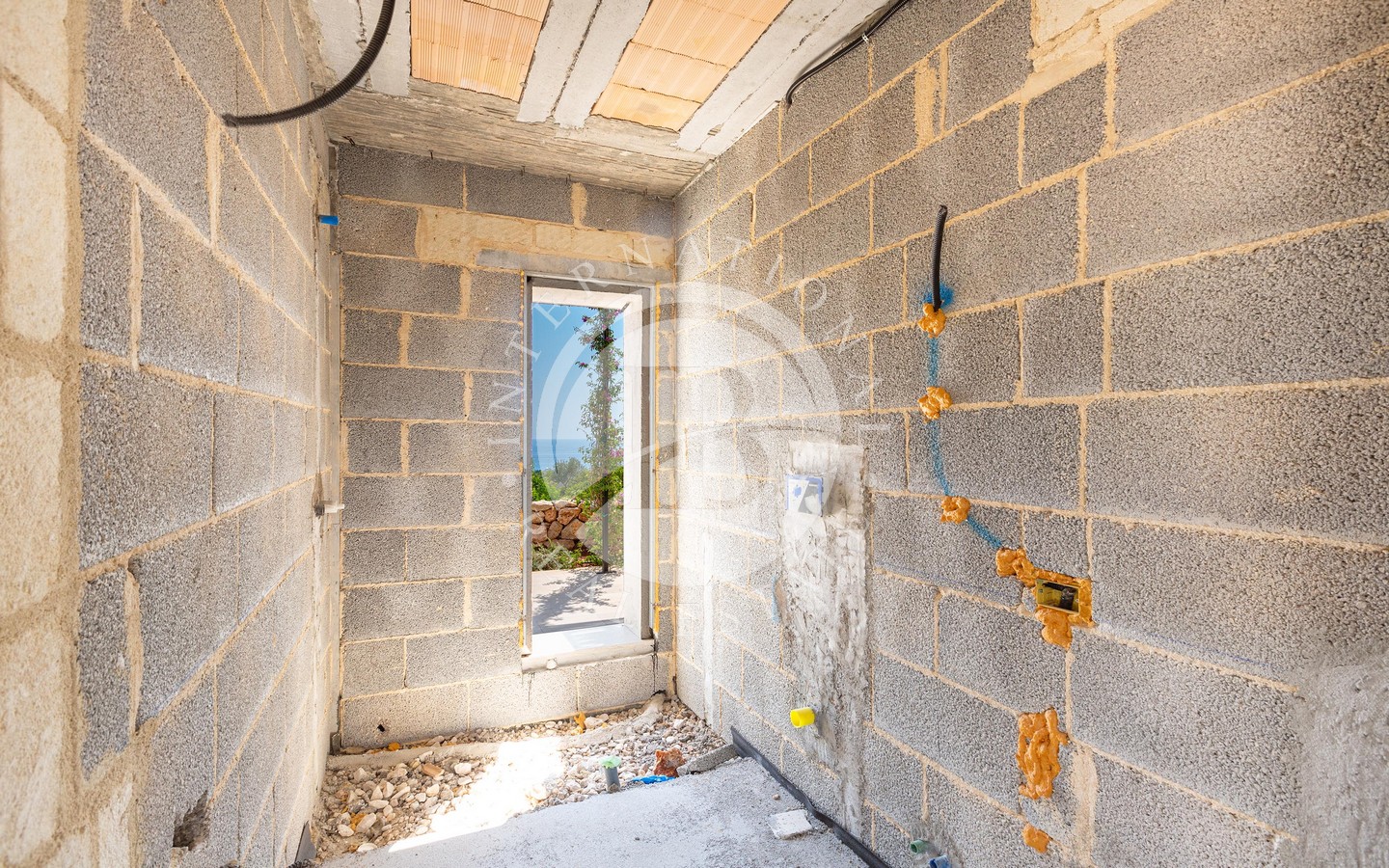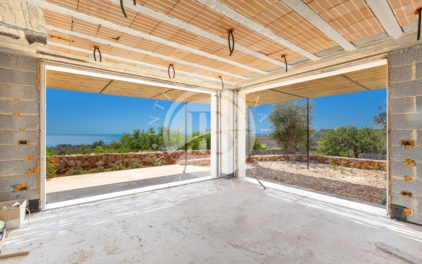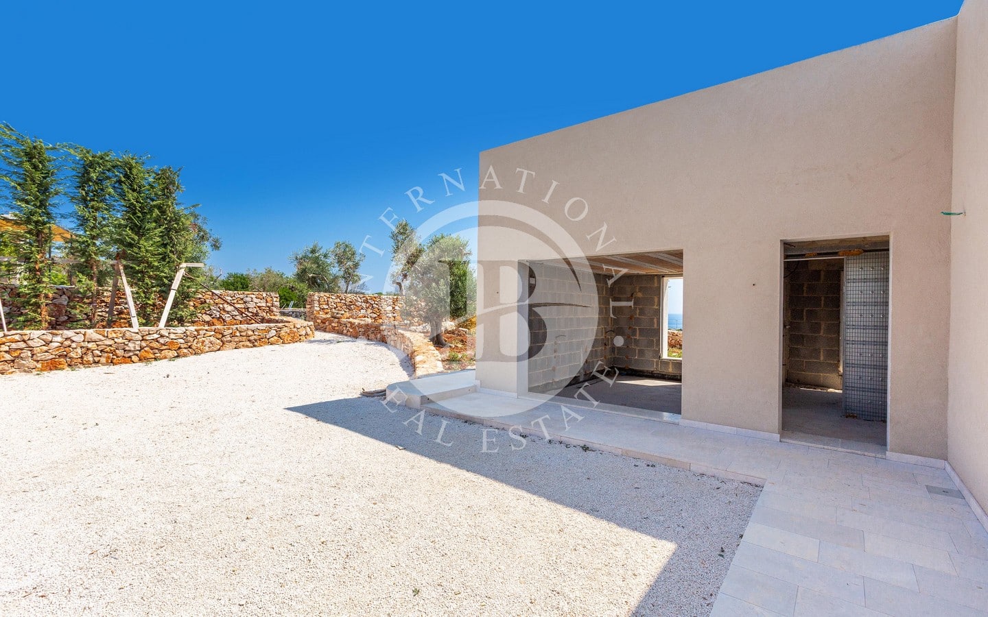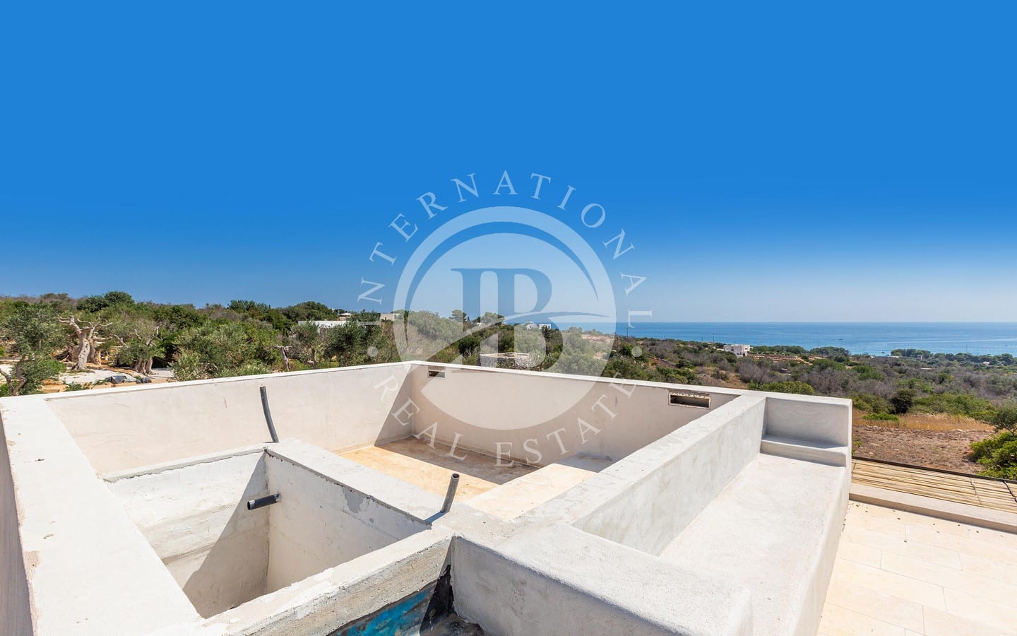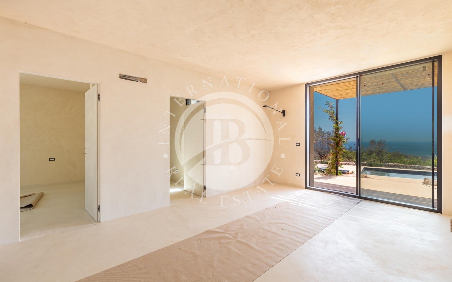 Seconda villa (80 mq): dispone di due ampie camere da letto, due bagni e un moderno living. Le ampie vetrate permettono di godere della vista sul mare, creando ambienti funzionali e ben organizzati. Una scala conduce alla terrazza, dove si trova una piscina di 24 mq con spettacolare vista panoramica.