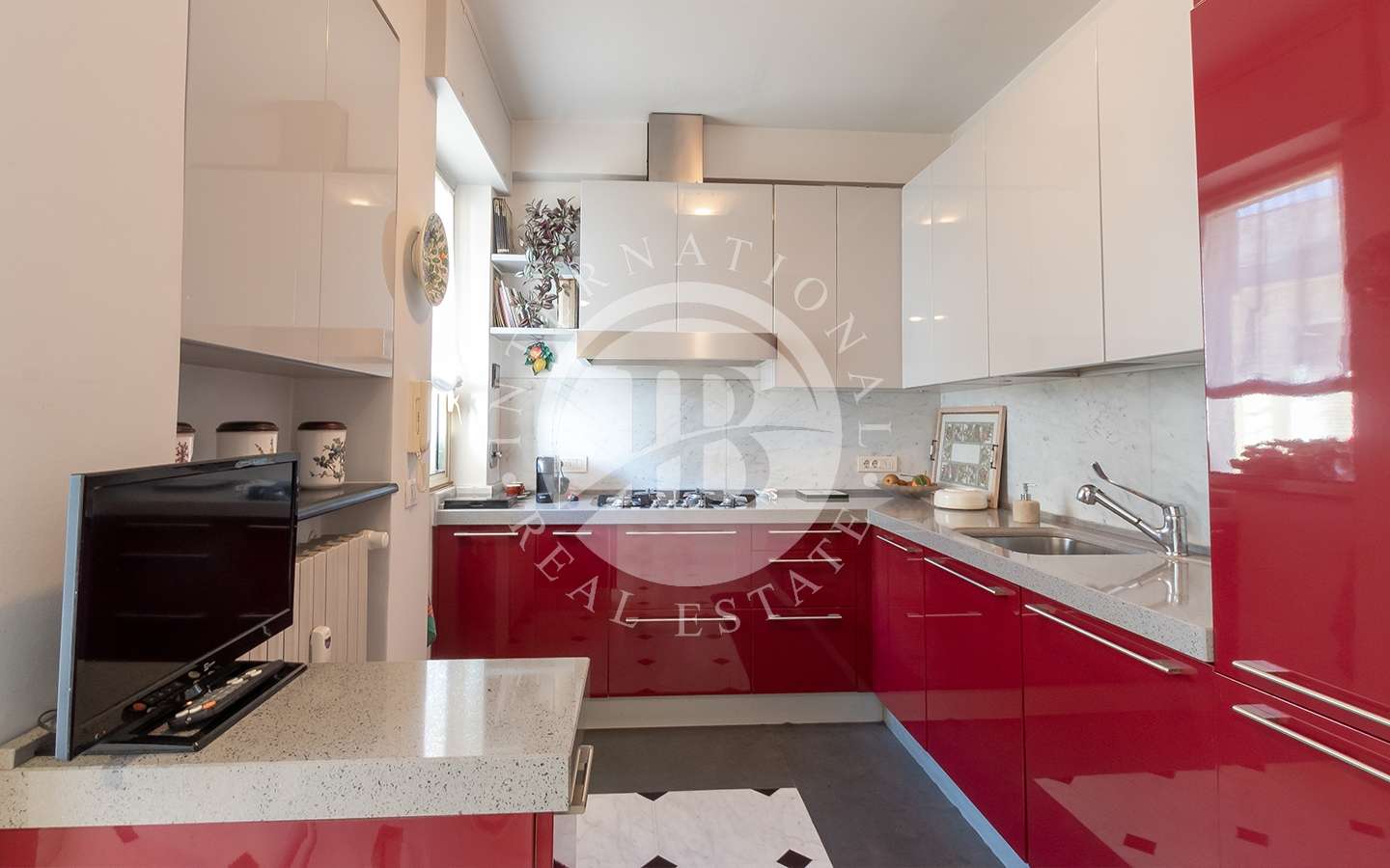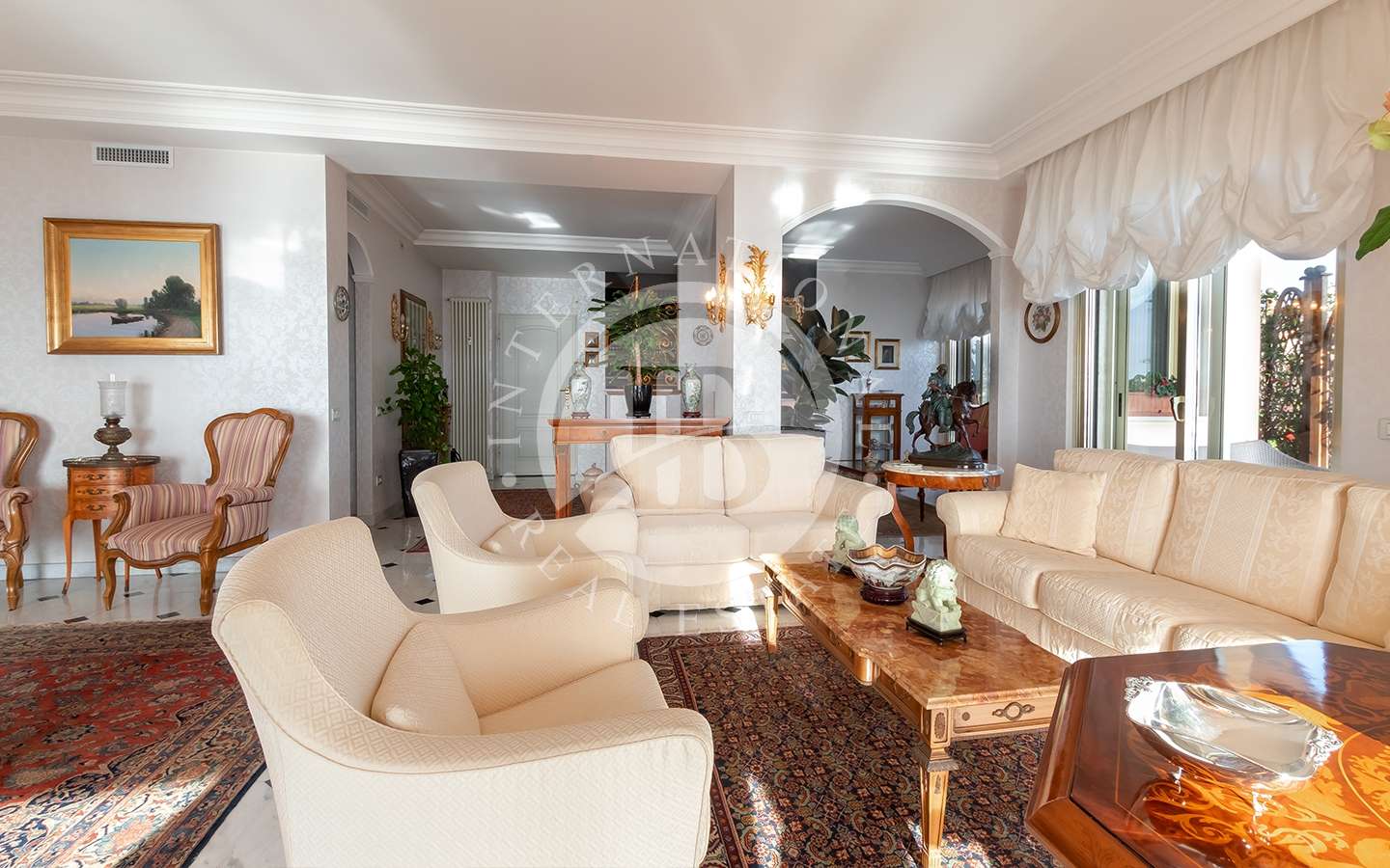 L'attico è stato oggetto di una completa ristrutturazione con materiali di alta qualità. Dispone di impianto di aria condizionata, riscaldamento centralizzato con termostato, pavimenti in marmo e parquet. A completare la proprietà un garage di 22 mq e la doppia cantina. La posizione privilegiata consente di raggiungere il mare in pochi passi.