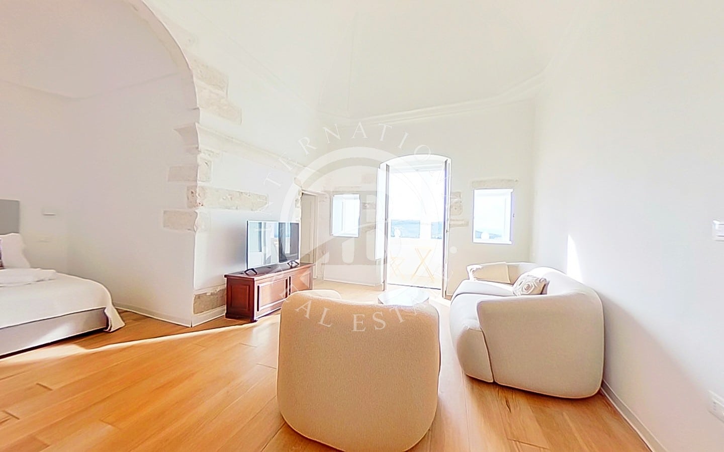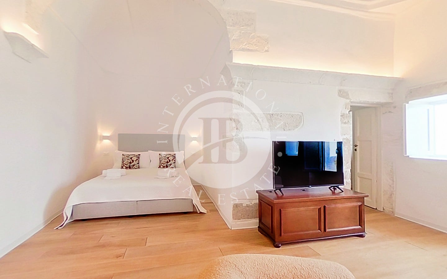 Nel cuore del centro storico di Ostuni, affacciato sulle antiche mura, è in vendita un incantevole palazzotto con vista mare. Al primo piano, l’immobile accoglie con un elegante ingresso che conduce alla zona living con cucina a vista, due camere da letto, entrambe servite da bagno, di cui una con balcone panoramico. Al piano terra, si trova una terza camera da letto, anch'essa con vista panoramica, un disimpegno e un secondo bagno. La proprietà è completata da un ampio terrazzo attrezzato, da cui si può godere di una splendida vista…