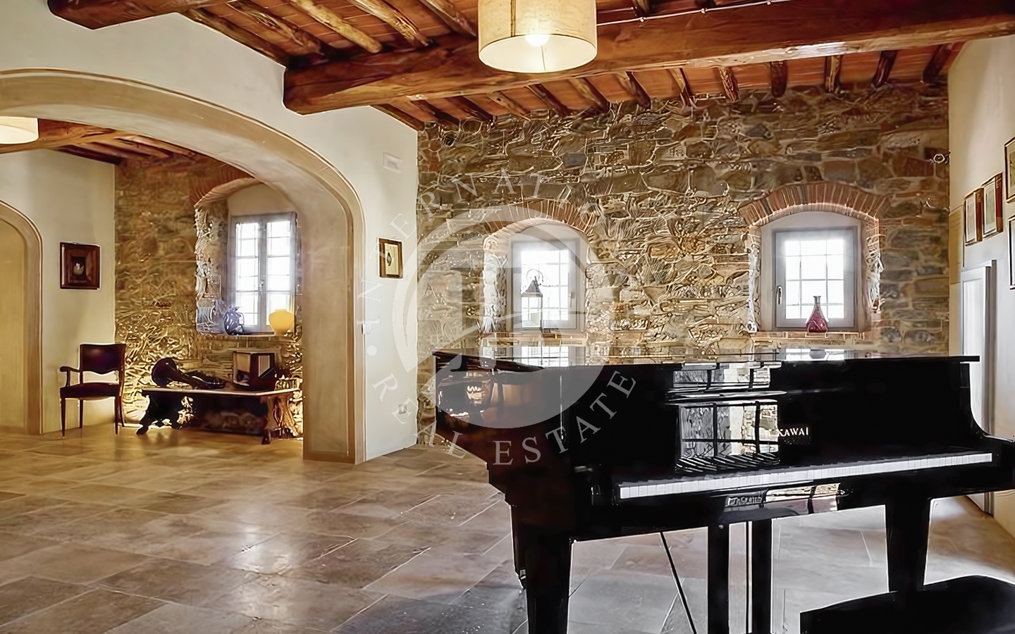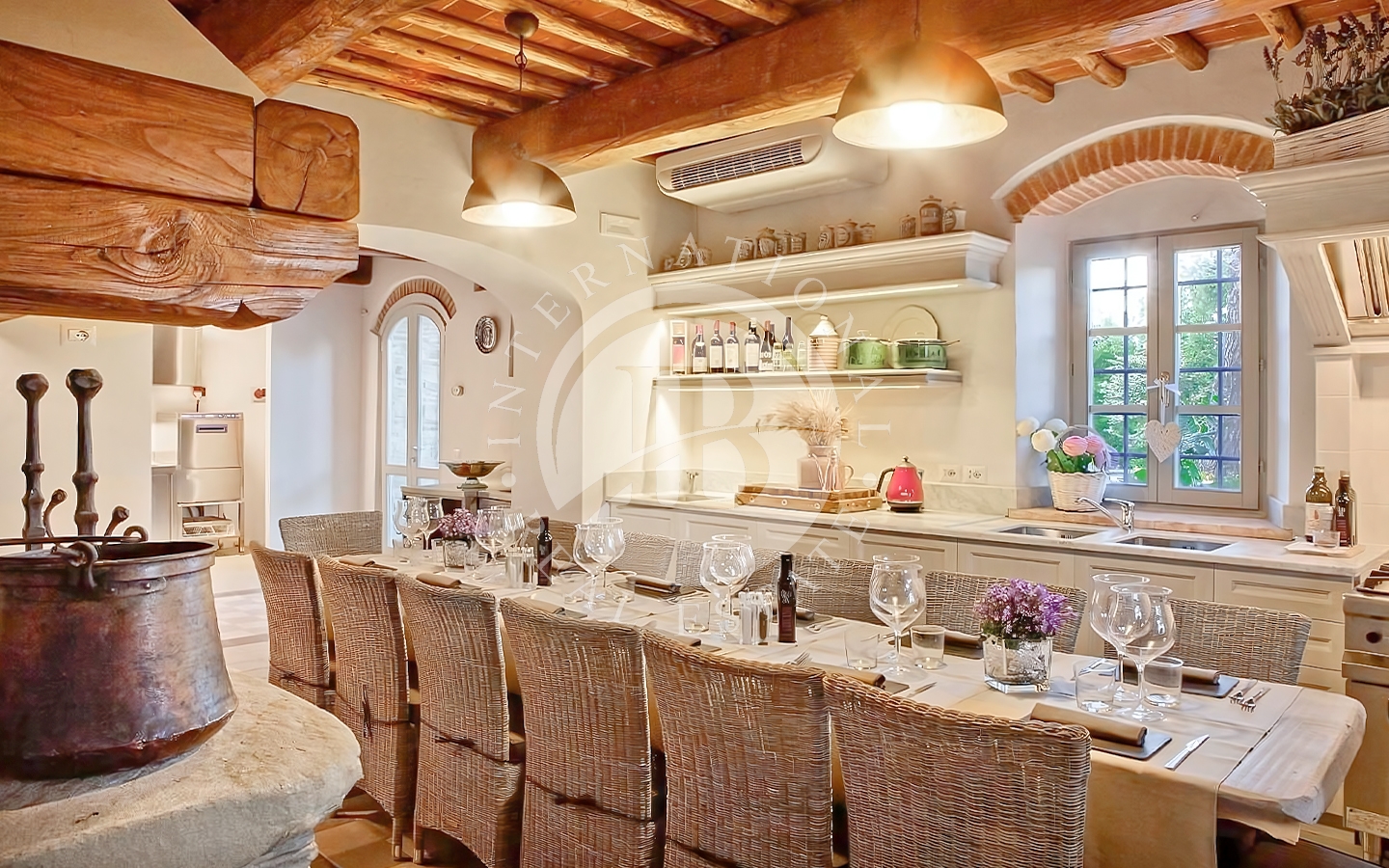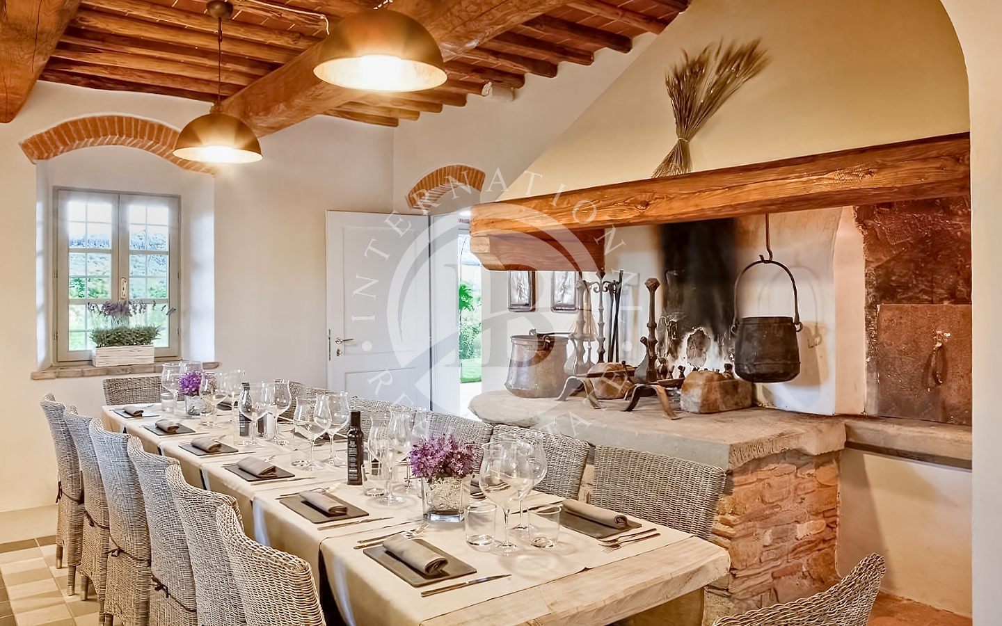o della tradizione toscana incontra il comfort moderno. Il piano terra ospita due spaziosi soggiorni con zona bar, una cucina attrezzata con grande camino, un ripostiglio e due bagni di servizio, uno per disabili. Al primo piano si trovano sei camere da letto climatizzate e sei bagni, oltre a una seconda cucina. Il secondo piano ha accesso indipendente quindi è possibile una suddivisione in due unità distinte ed autonome. Vi è la possibilità di ricavare una settima camera al piano terra. La dependance, ideale per ospiti o personale di servizio, comprende due camere da letto, un bagno e una cucina.