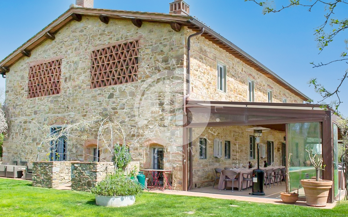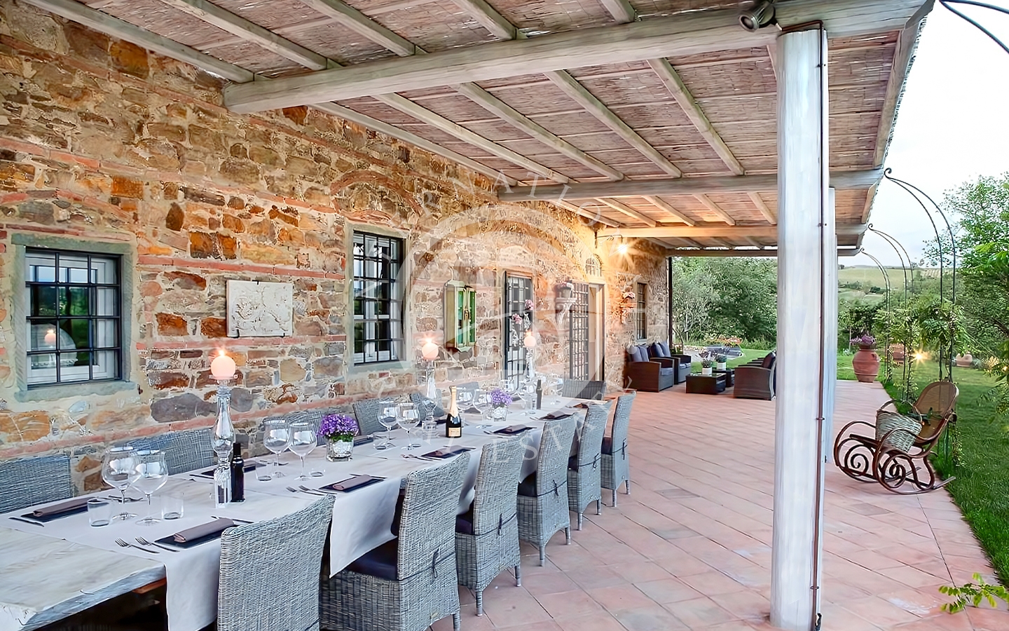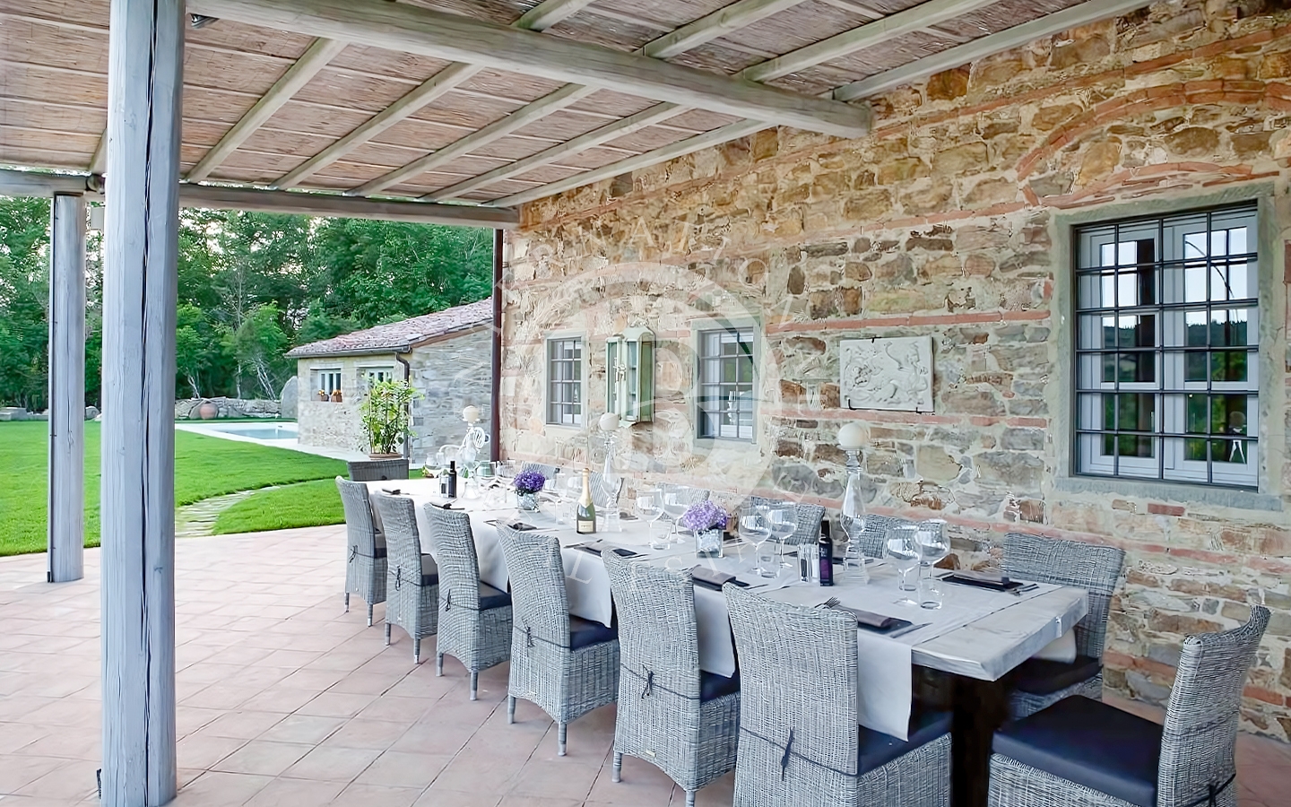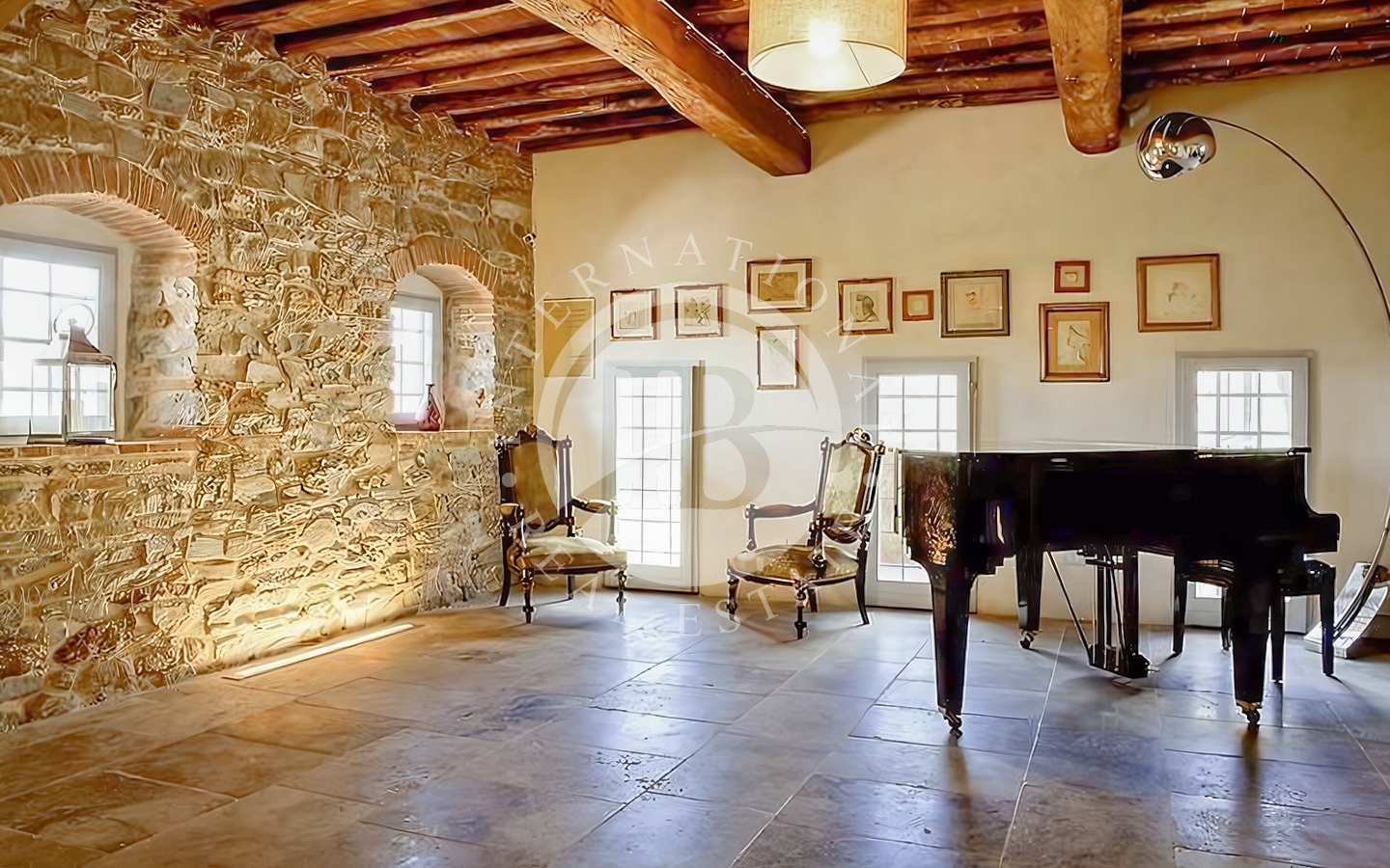 o della tradizione toscana incontra il comfort moderno. Il piano terra ospita due spaziosi soggiorni con zona bar, una cucina attrezzata con grande camino, un ripostiglio e due bagni di servizio, uno per disabili. Al primo piano si trovano sei camere da letto climatizzate e sei bagni, oltre a una seconda cucina. Il secondo piano ha accesso indipendente quindi è possibile una suddivisione in due unità distinte ed autonome. Vi è la possibilità di ricavare una settima camera al piano terra. La dependance, ideale per ospiti o personale di servizio, comprende due camere da letto, un bagno e una cucina.