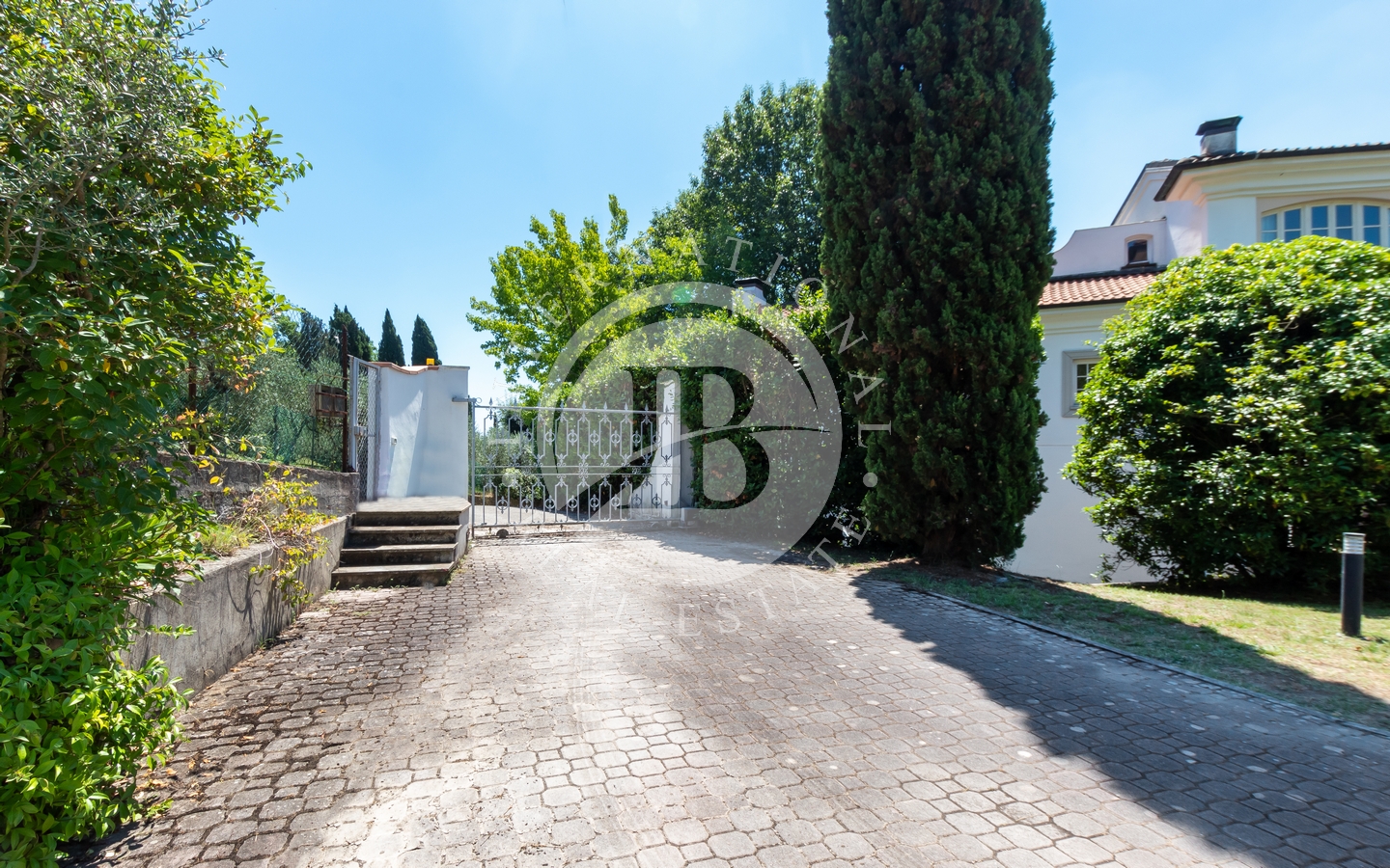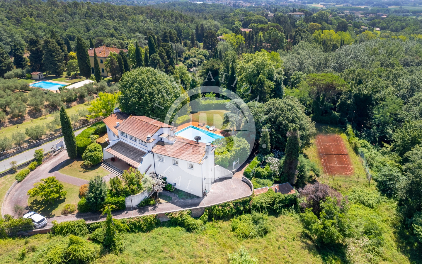 ntegra armoniosamente in un giardino privato di circa 6.000 m², impreziosito da una splendida piscina e da un'area relax immersa nella rigogliosa vegetazione. Inoltre, è presente un campo da tennis, attualmente in fase di ristrutturazione.