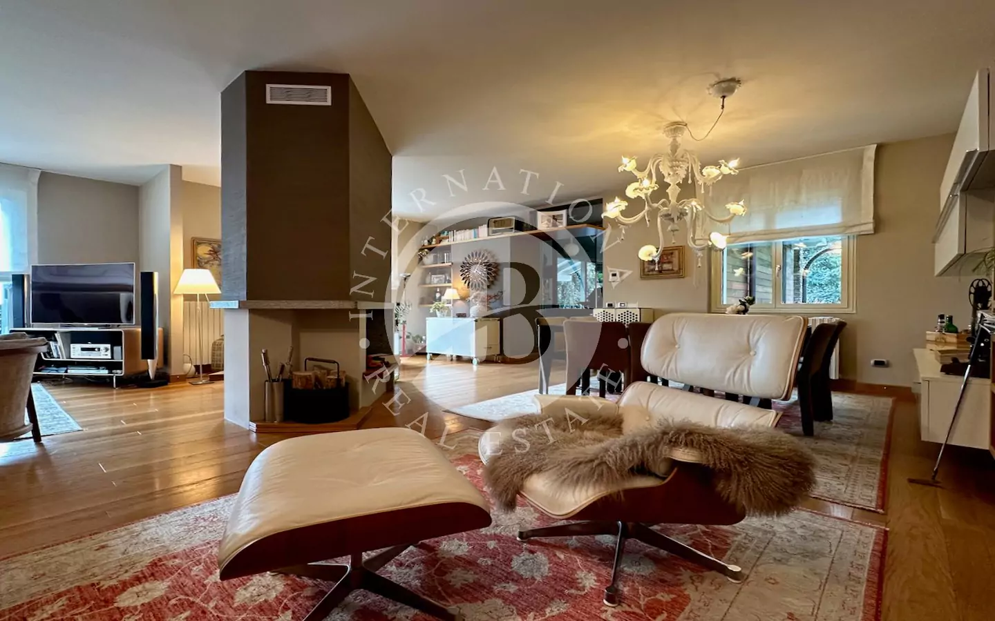 A pochi passi, la piscina invita a momenti di relax e benessere. Il soggiorno, spazioso e accogliente, è impreziosito da un camino centrale. Completano il piano due camere matrimoniali e due eleganti bagni.