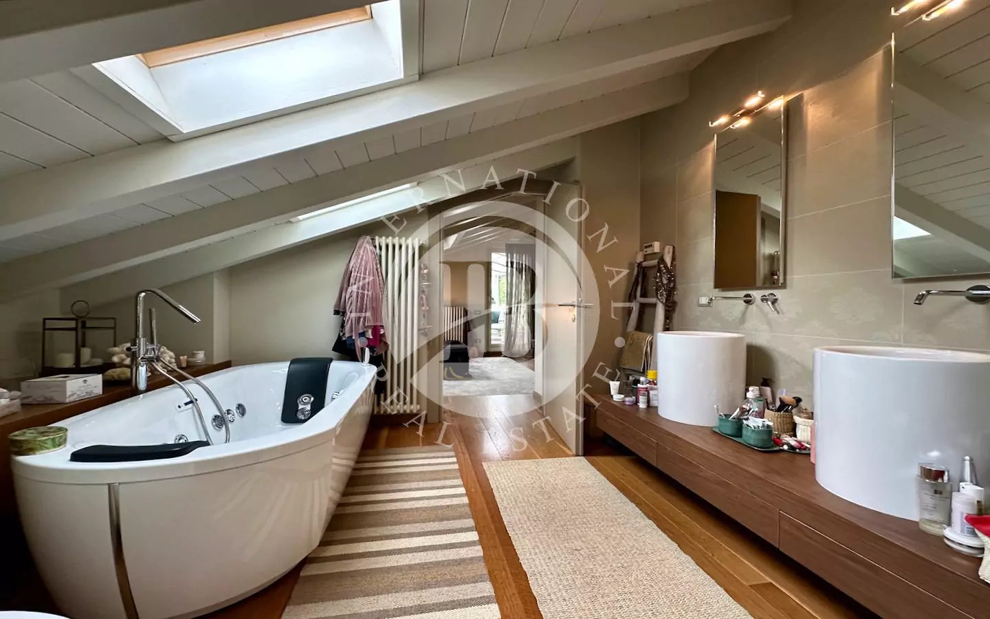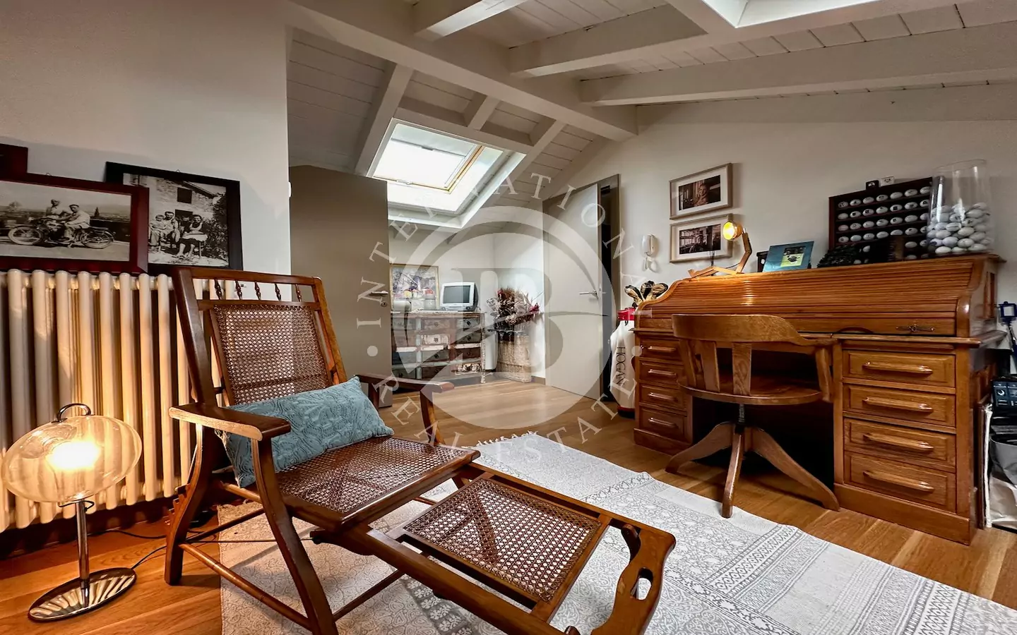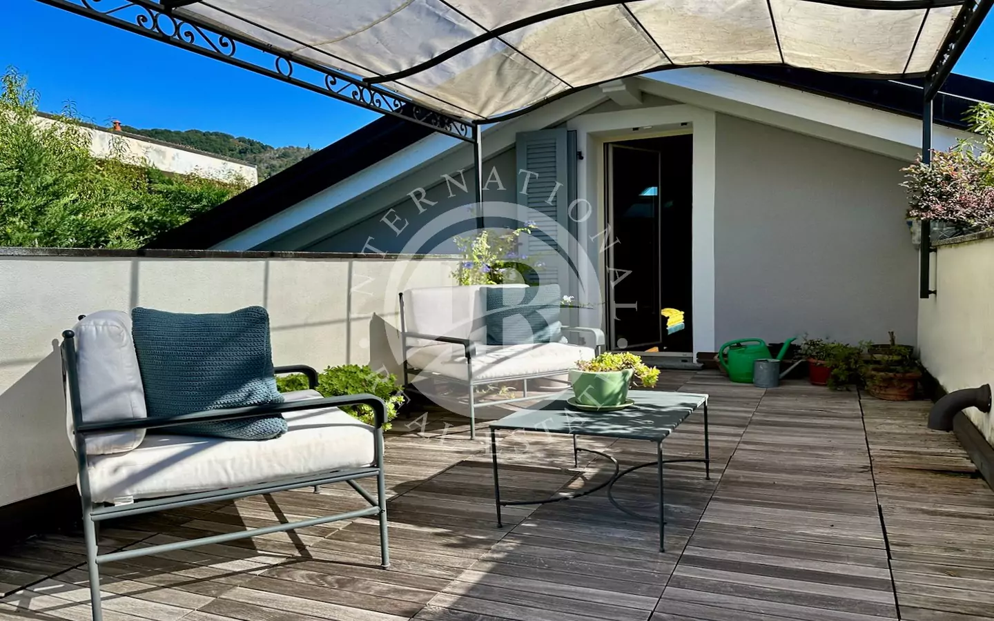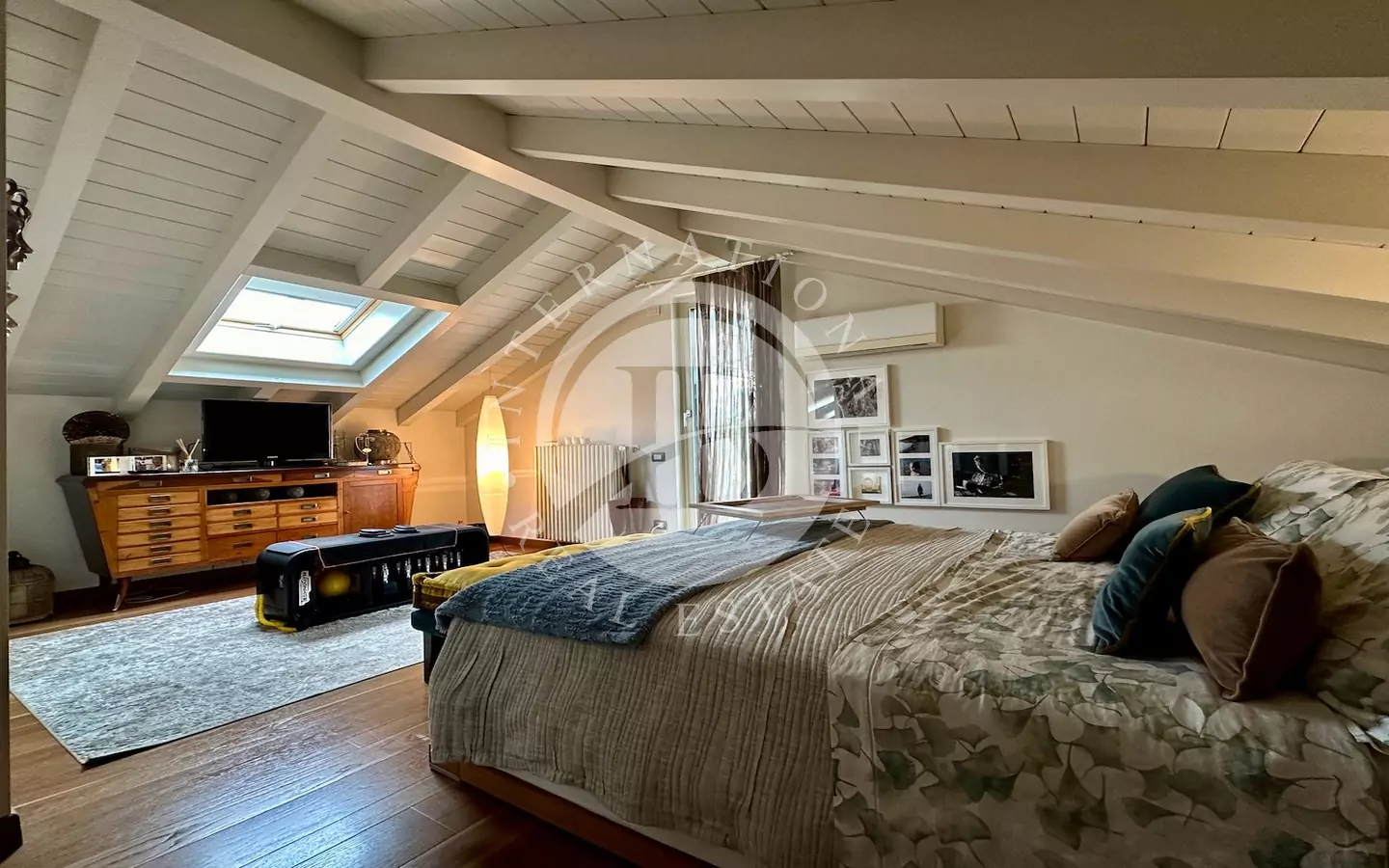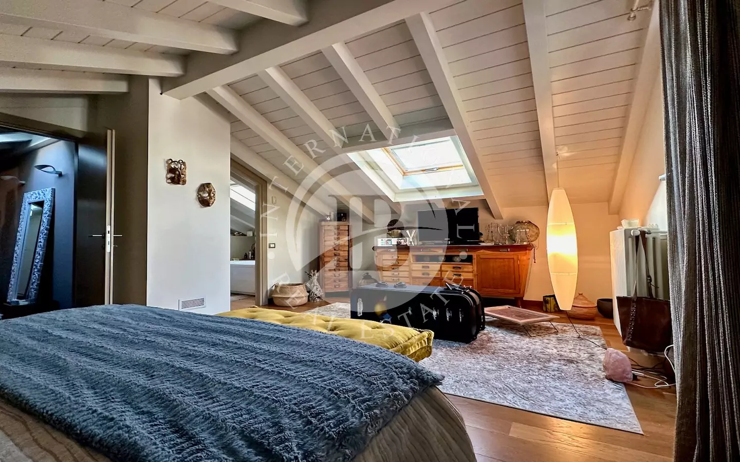 Piano mansardato: suite padronale con bagno privato dotato di doccia e vasca idromassaggio Teuco, e accesso a una terrazza panoramica con pergolato in ferro battuto. Sullo stesso livello si trovano una grande cabina armadio, uno studio luminoso e una camera aggiuntiva.