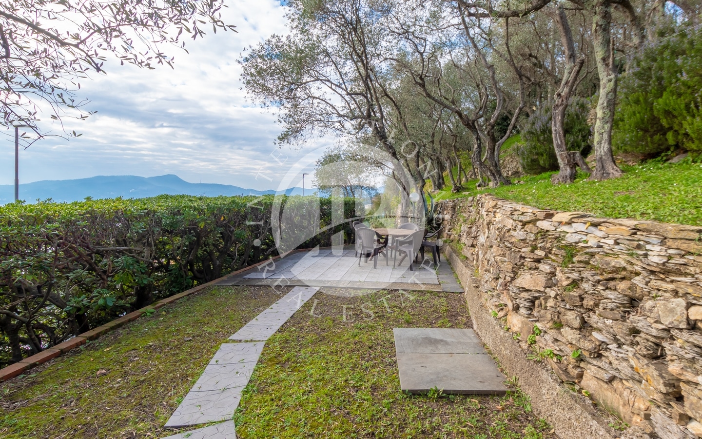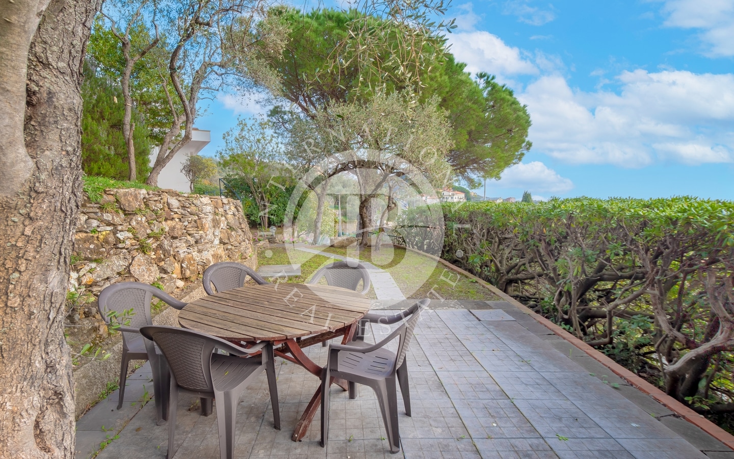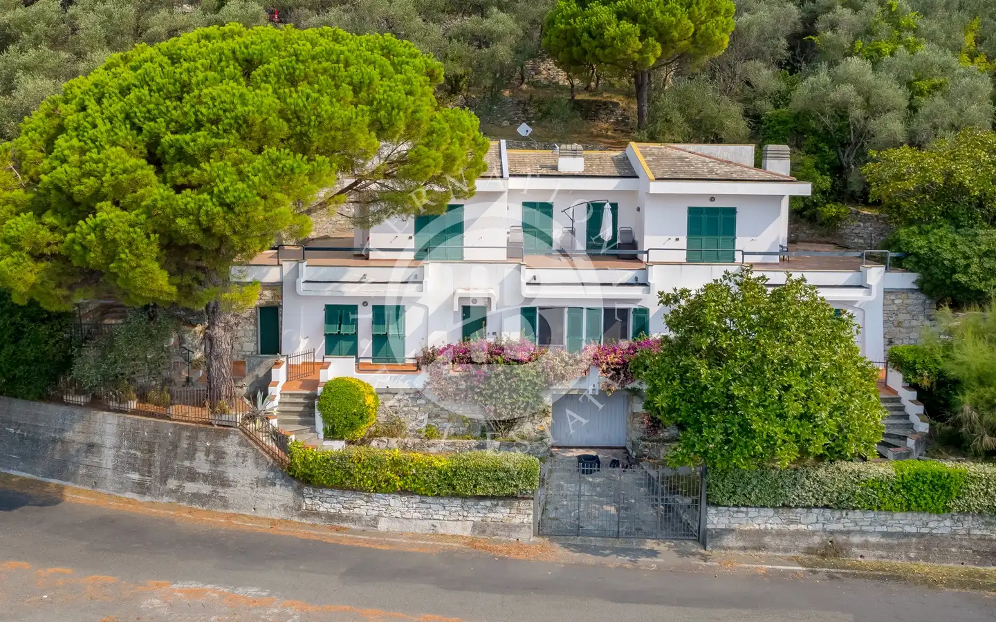 La proprietà è incorniciata da terrazze soleggiate e le tipiche fasce liguri, ideali per godersi la vista sul mare e momenti di relax. Il giardino, ricco di ulivi e vegetazione mediterranea, crea un’atmosfera unica, perfetta per cene all’aperto o eventi esclusivi. La posizione garantisce accessi comodi sia per i pedoni sia per i veicoli, grazie anche alla presenza di un doppio garage e ampi spazi di ricovero.
