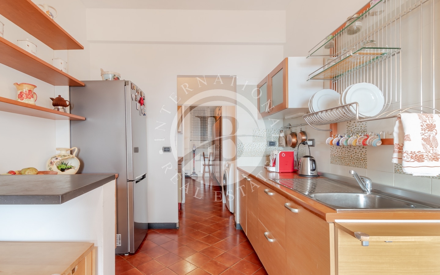 ternamente è presente al piano d'ingresso un doppio soggiorno con ampie vetrate regala una spettacolare vista sul mare e sull'elegante terrazza perimetrale. La cucina, moderna e completamente attrezzata, è dotata di un grande tavolo per momenti conviviali. Lo stesso livello ospita anche due locali di servizio/lavanderia e due bagni.